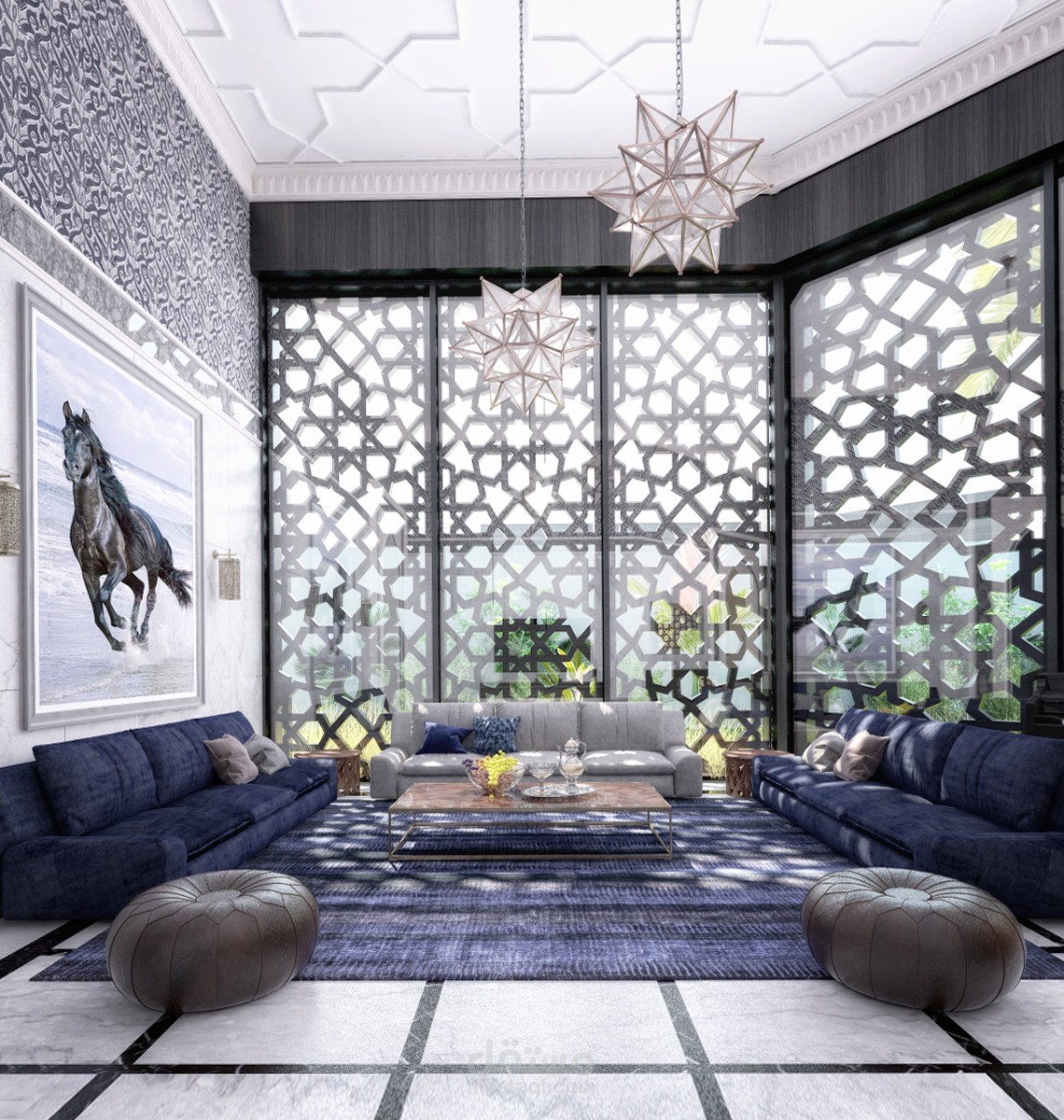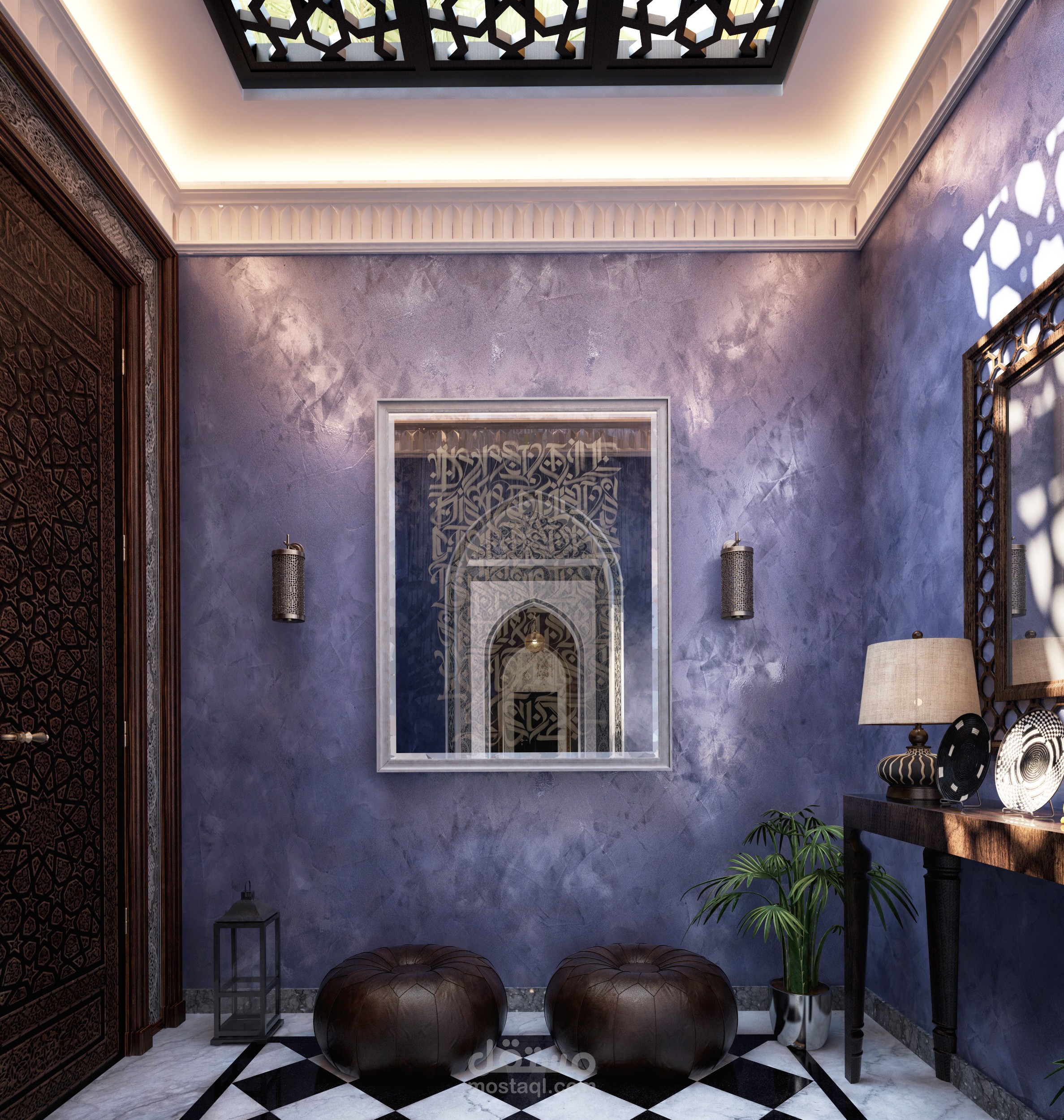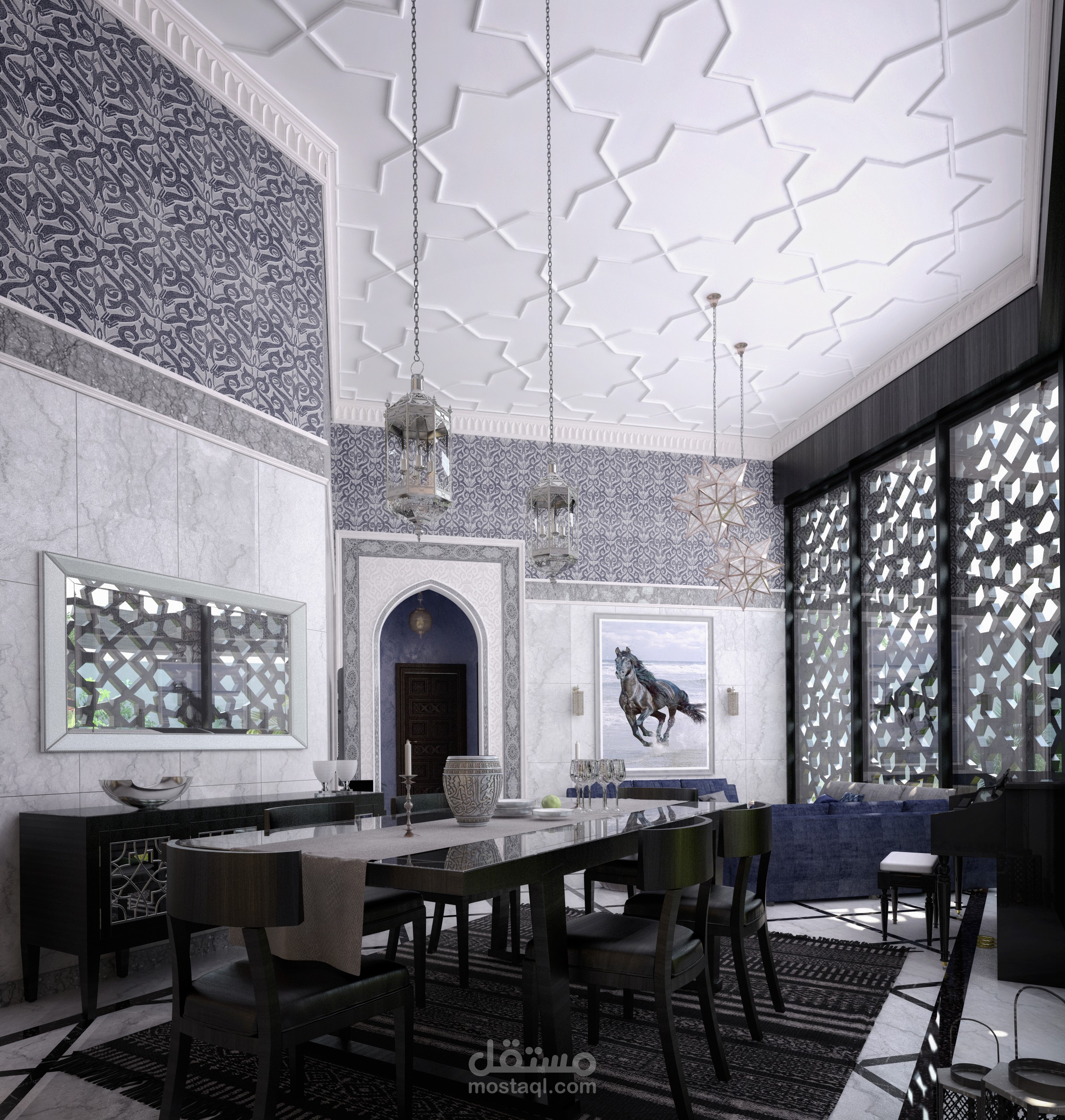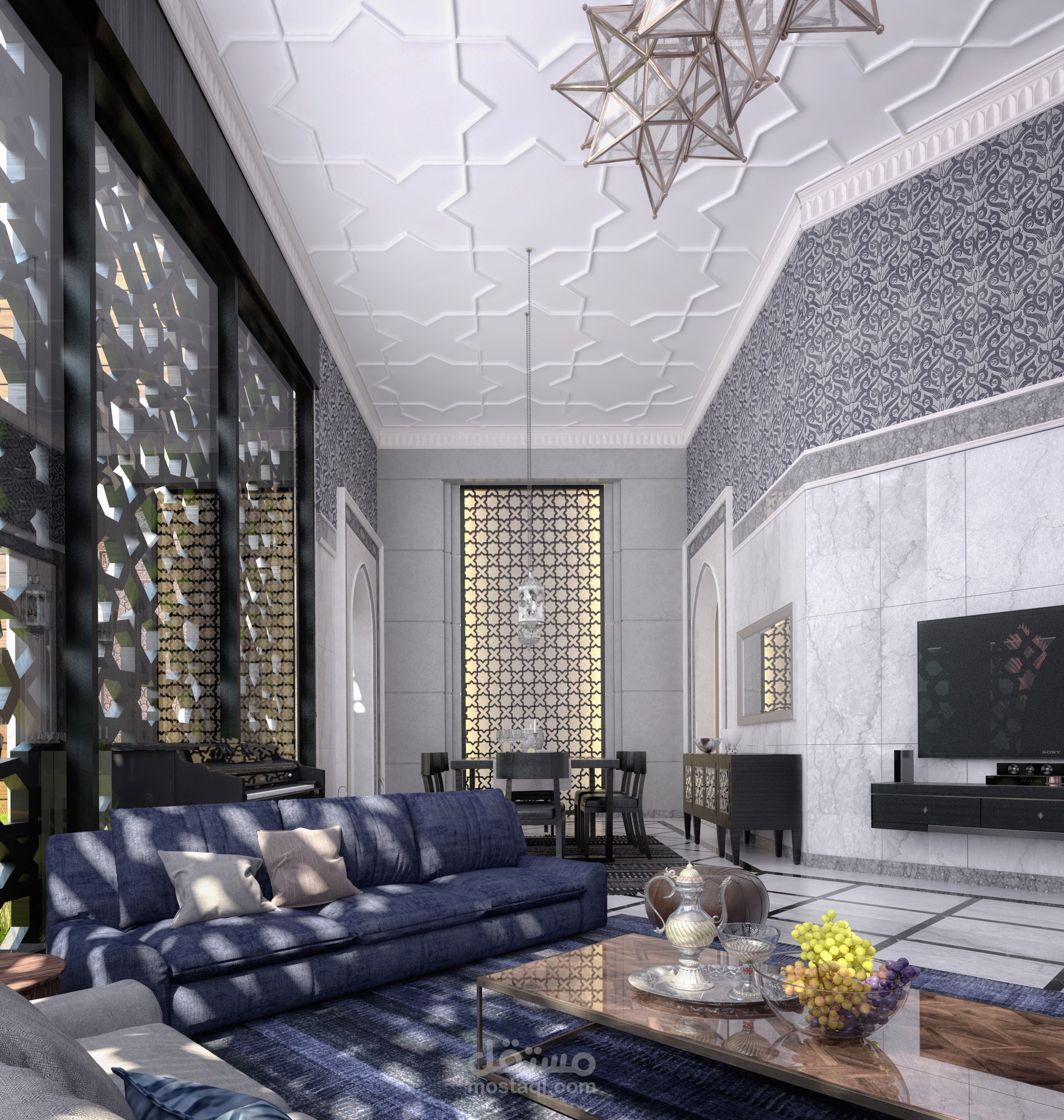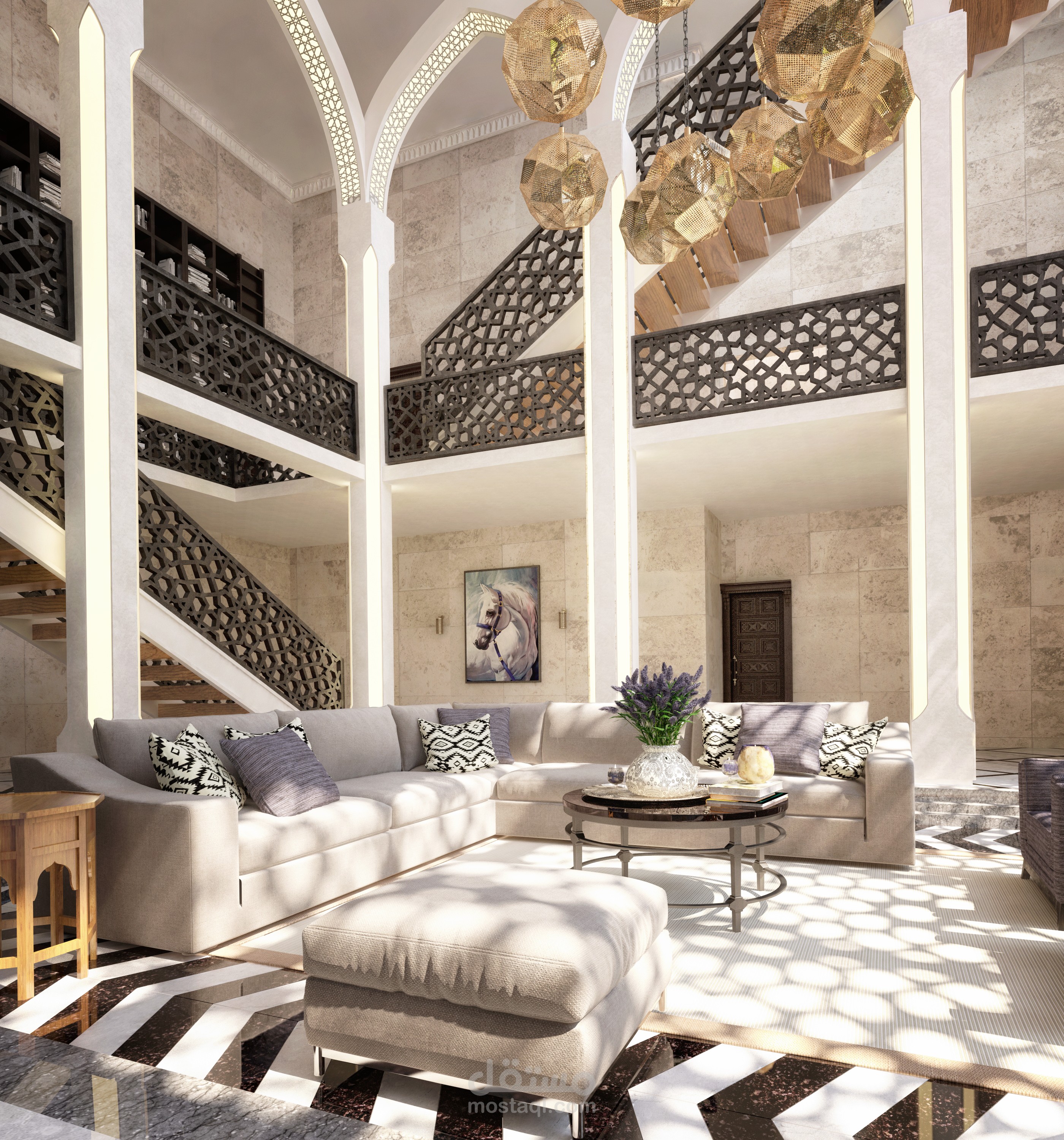 تصميم لفيلا على الطراز الاسلامى الحديث مع المحافظه على النقوش الإسلامية القديمه بدمج الحديث مع القديم بطريقة احترافيه