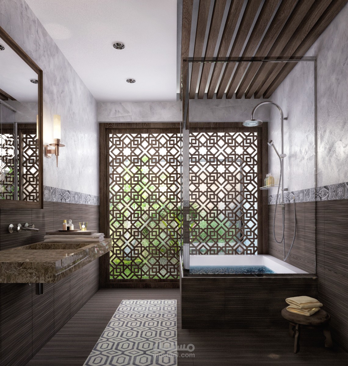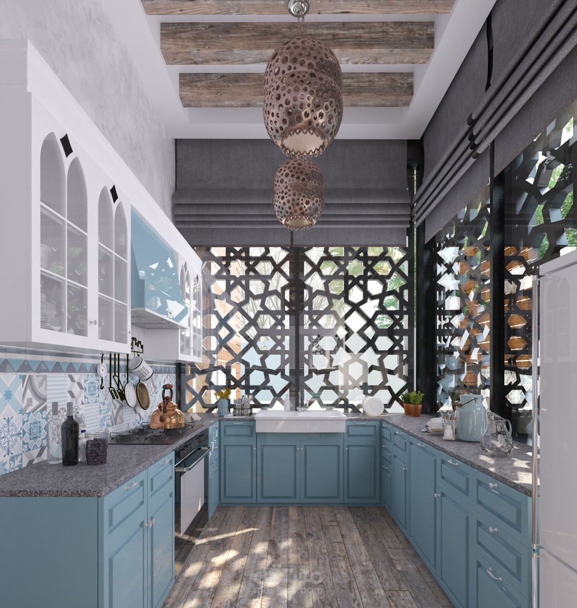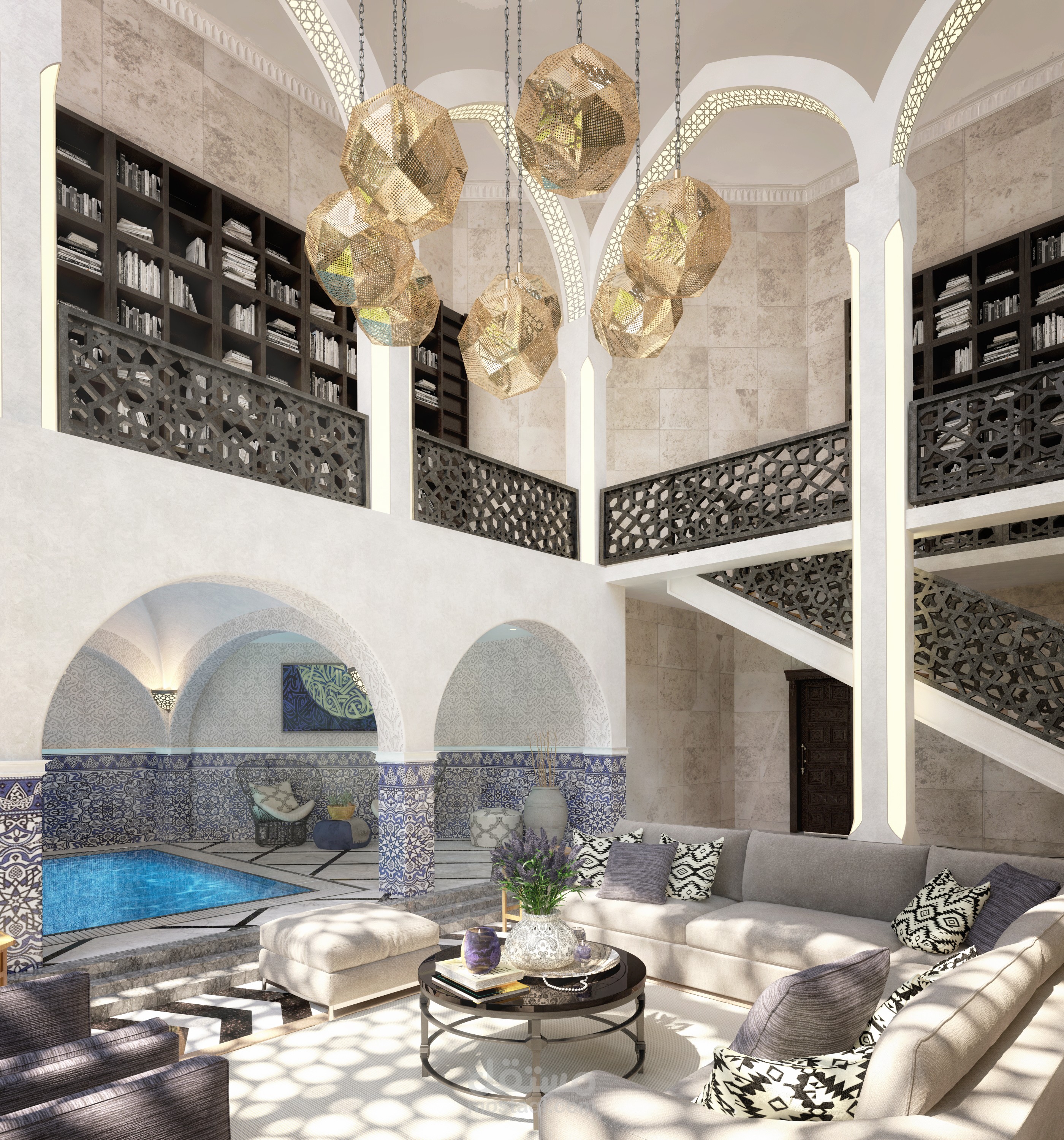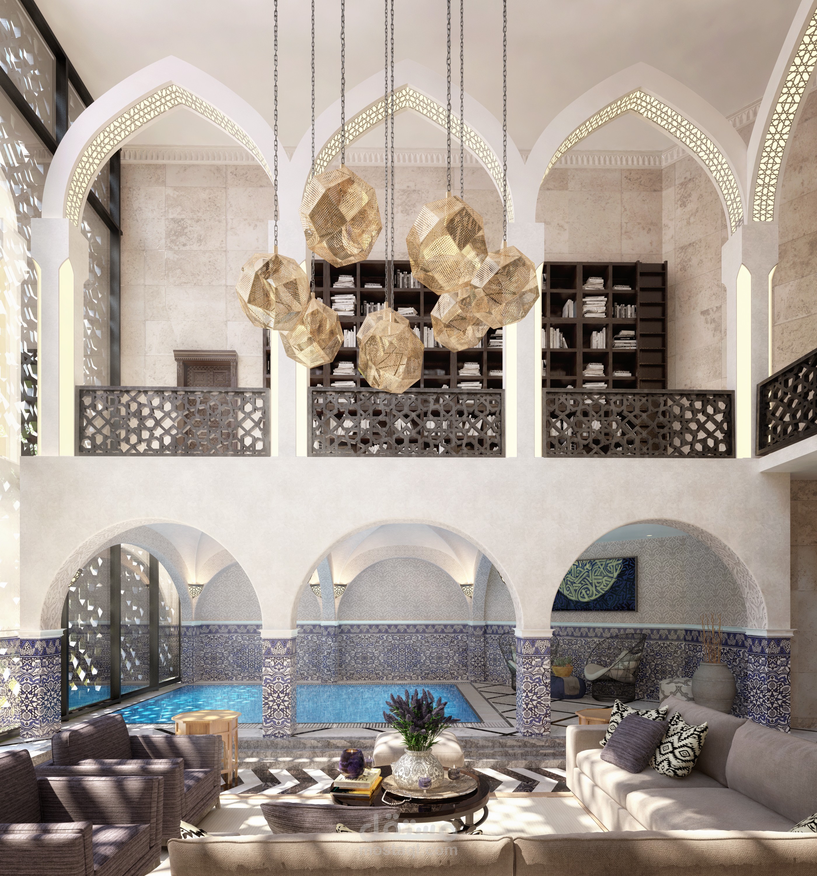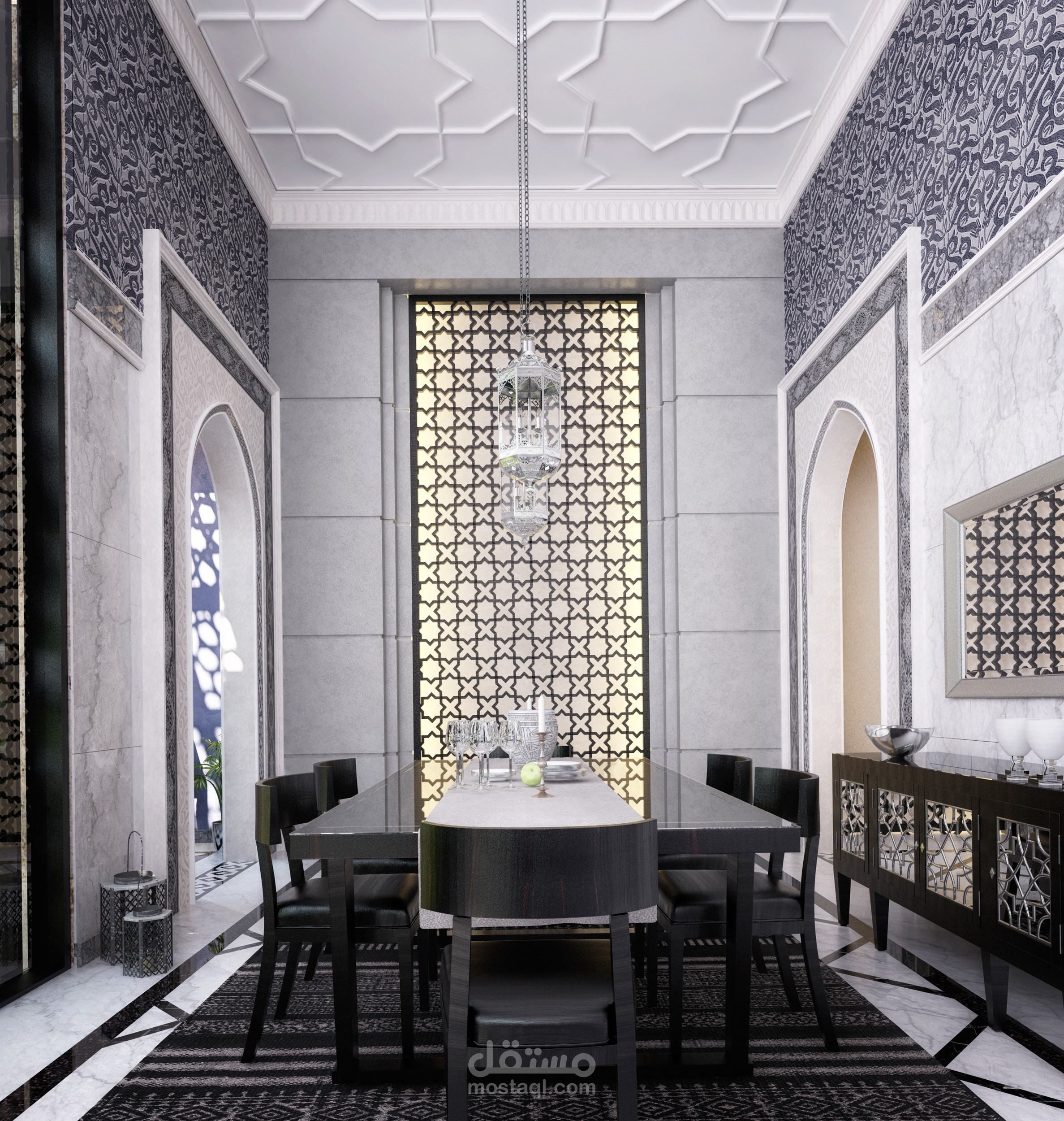 تصميم لفيلا على الطراز الاسلامى الحديث مع المحافظه على النقوش الإسلامية القديمه بدمج الحديث مع القديم بطريقة احترافيه