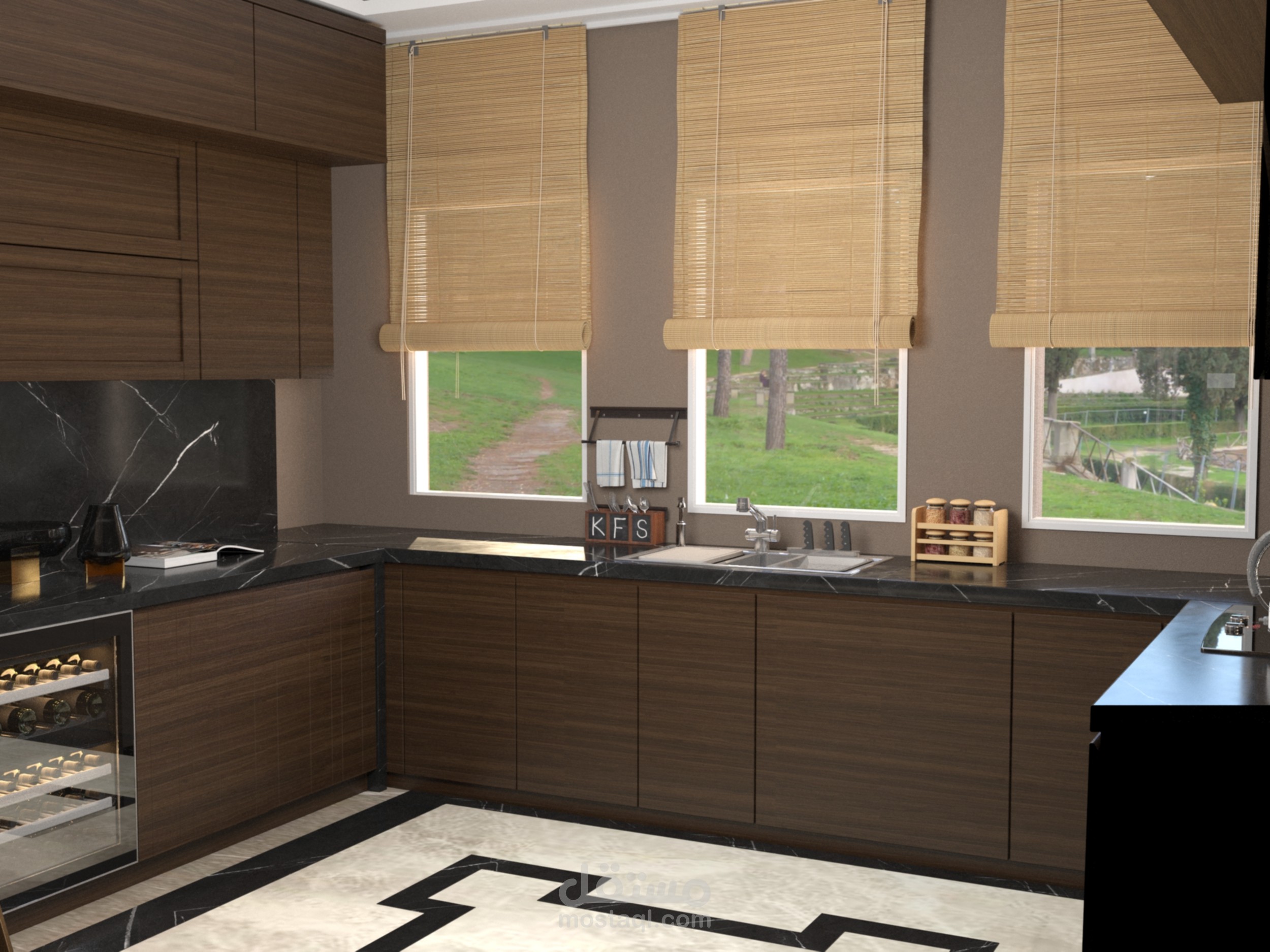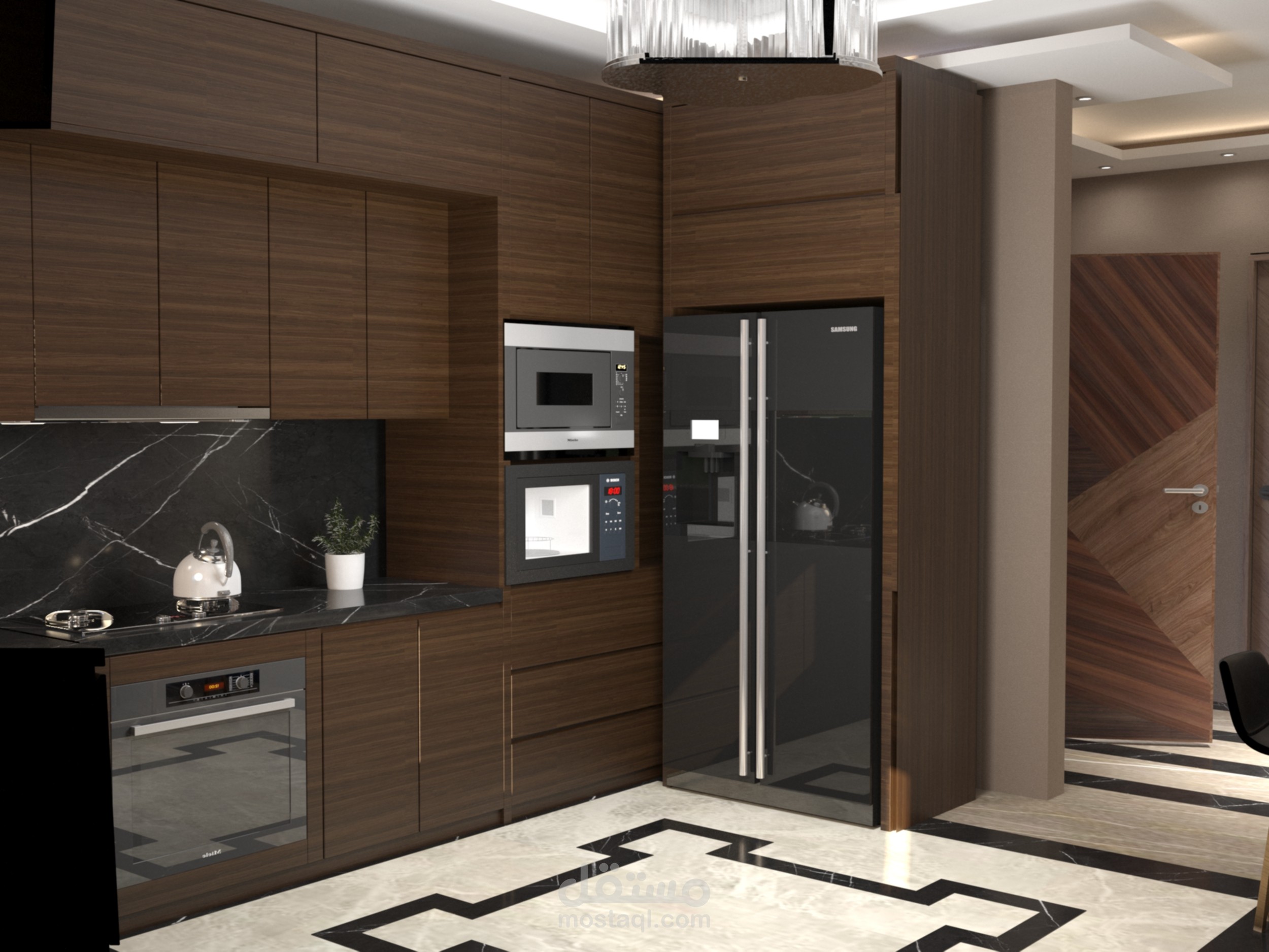تصميم ثلاثي الابعاد لمطبخ بفيلا باكتوبر