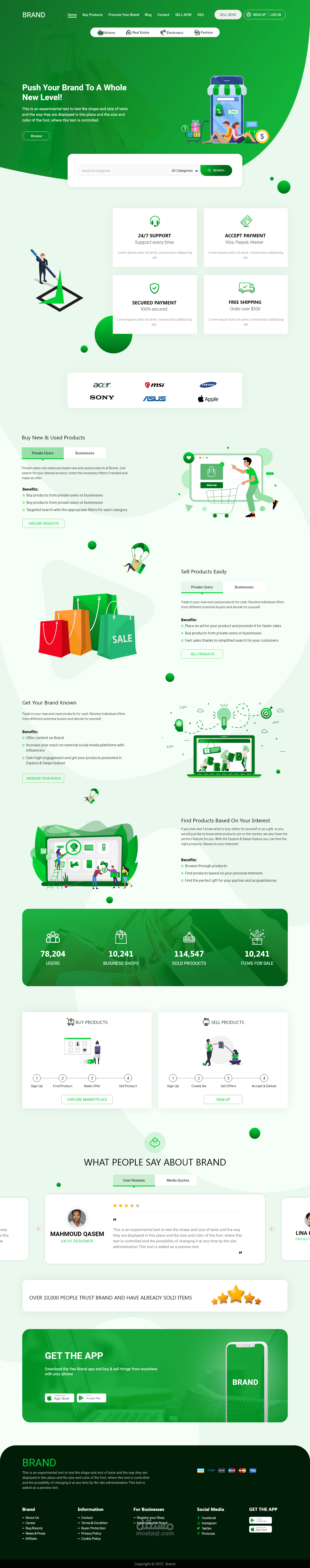 تصميم ابداعي وبسيط وجميل لصفحة ويب لموقع تجارة الكترونية