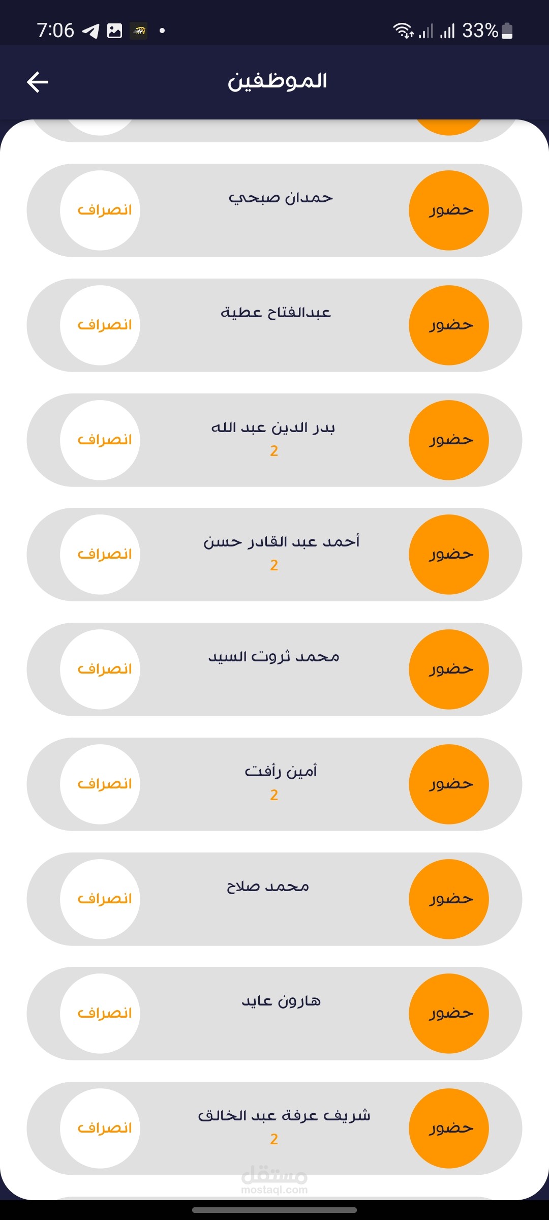 أو امكانية تسجيل الحضور و الانصراف من قائمة الموظفين