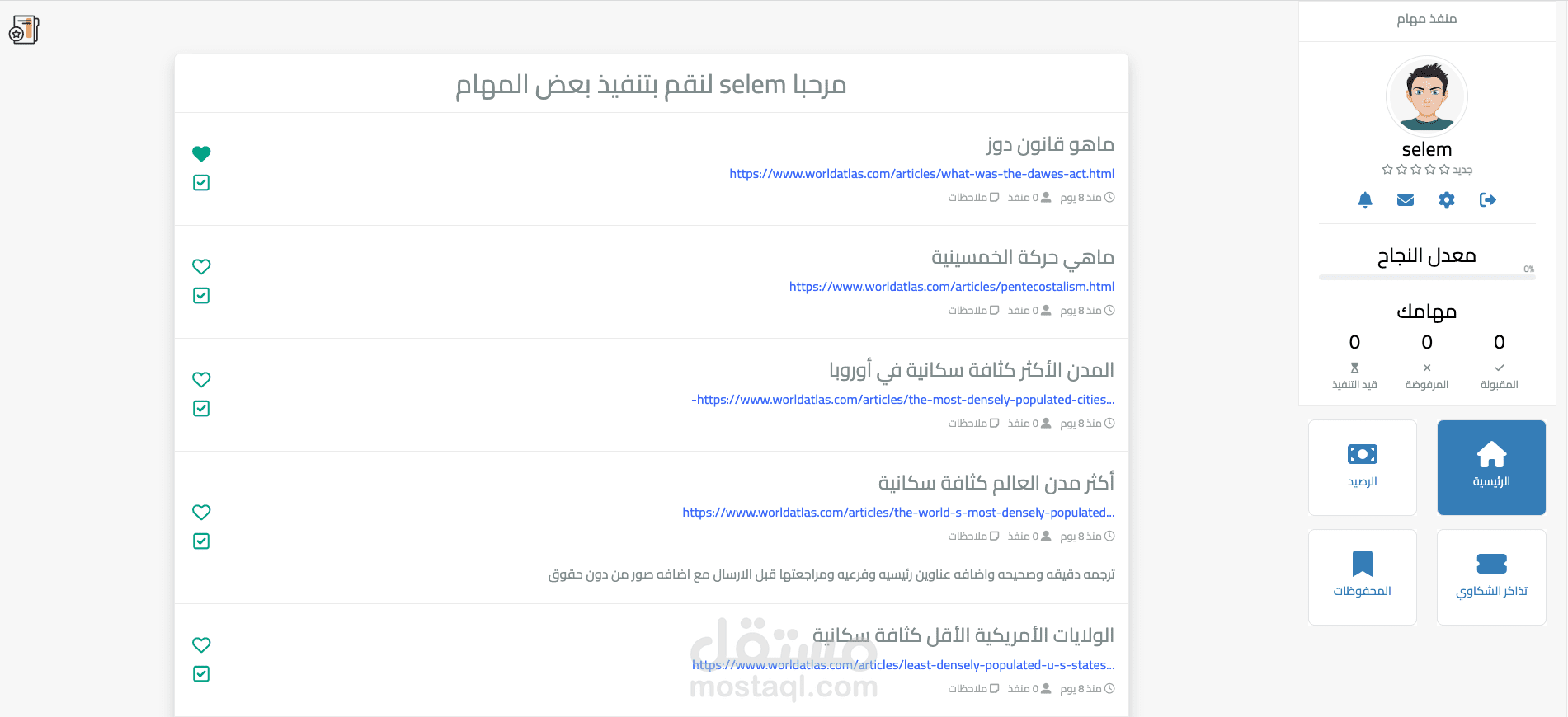 موقع عمل حر يختص بترجمة المقالات يربط بين المستخدمين او المستقلين ( كما في مستقل ) ومسؤلين النظام ( مدير النظام - مدير موارد بشرية - مدير مالية - مدير عمليات - مدخل بيانات )