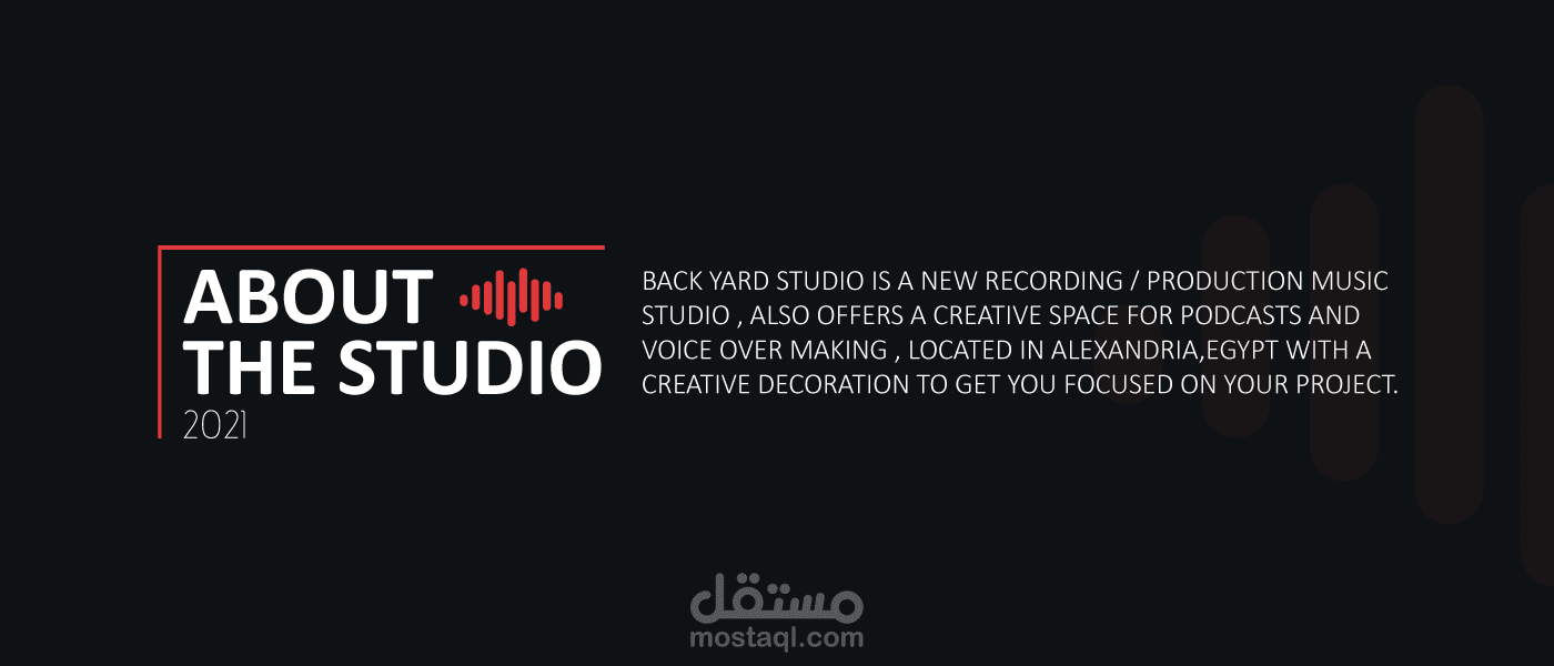 استديو باك يارد مخصص لتسجيل الصوتيات و صناعة الموسيقى تأسس في الاسكنرية عام 2020 و تم ترشيحي للقيام بانشاء الهوية البصرية الخاصة بهم و تم بحمد الله الموافقة على التصميم