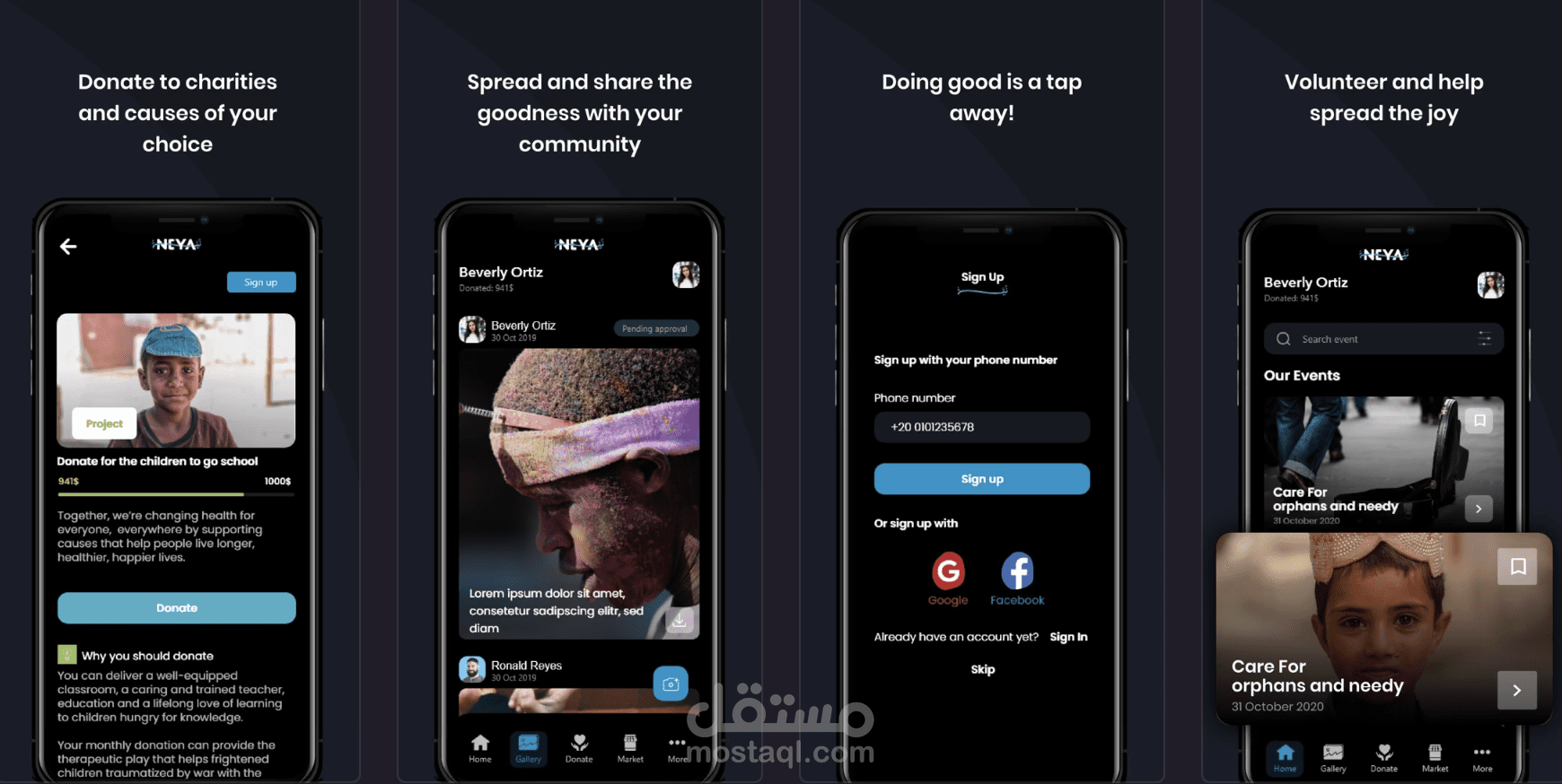 ShareYourNeya with the Neya community and post pictures of all your charitable activities to help motivate people to do good.