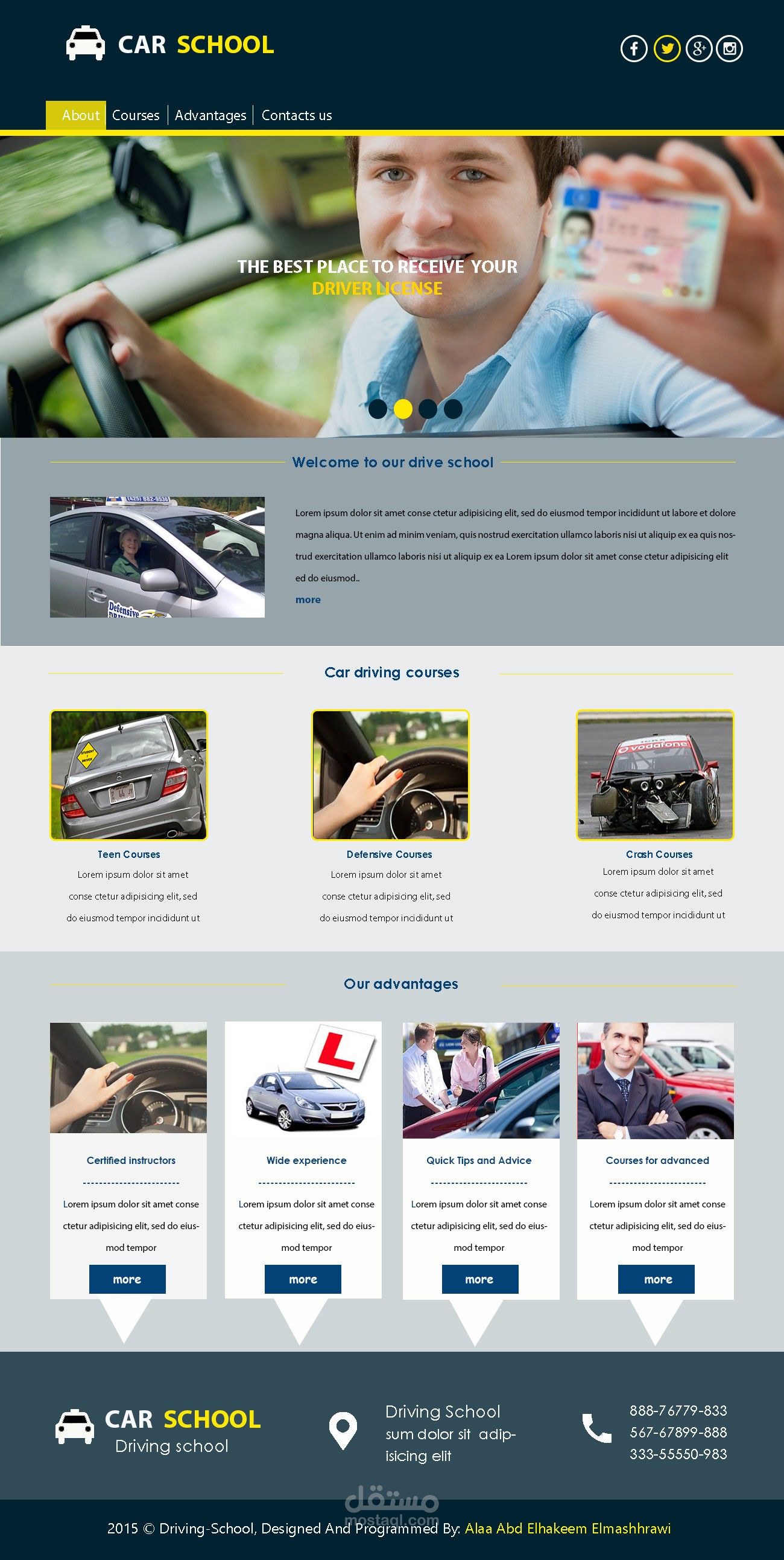 Responsive car driving school , design by Photoshop ,and developed by bootstrap , css3 ,j query