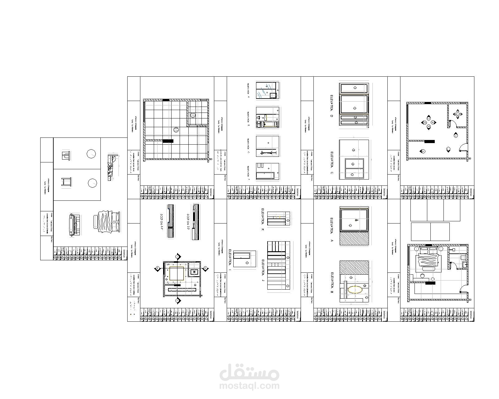 تصميم غرفة نوم رئيسية مع ملابس و حمام مع المخططات التنفيذية
