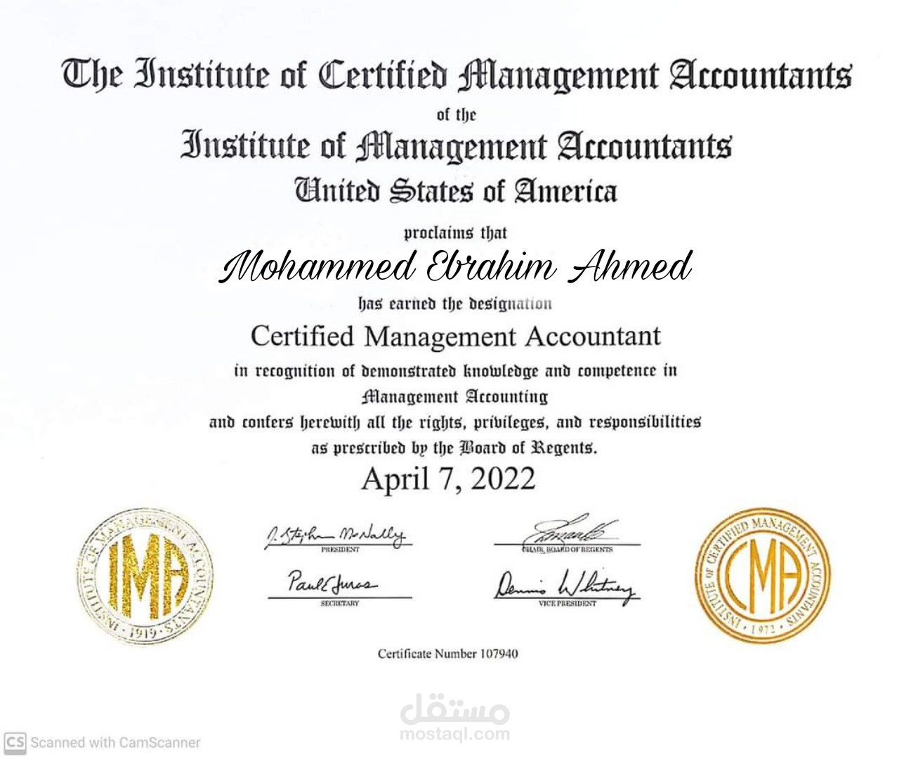 Cma cretifcate