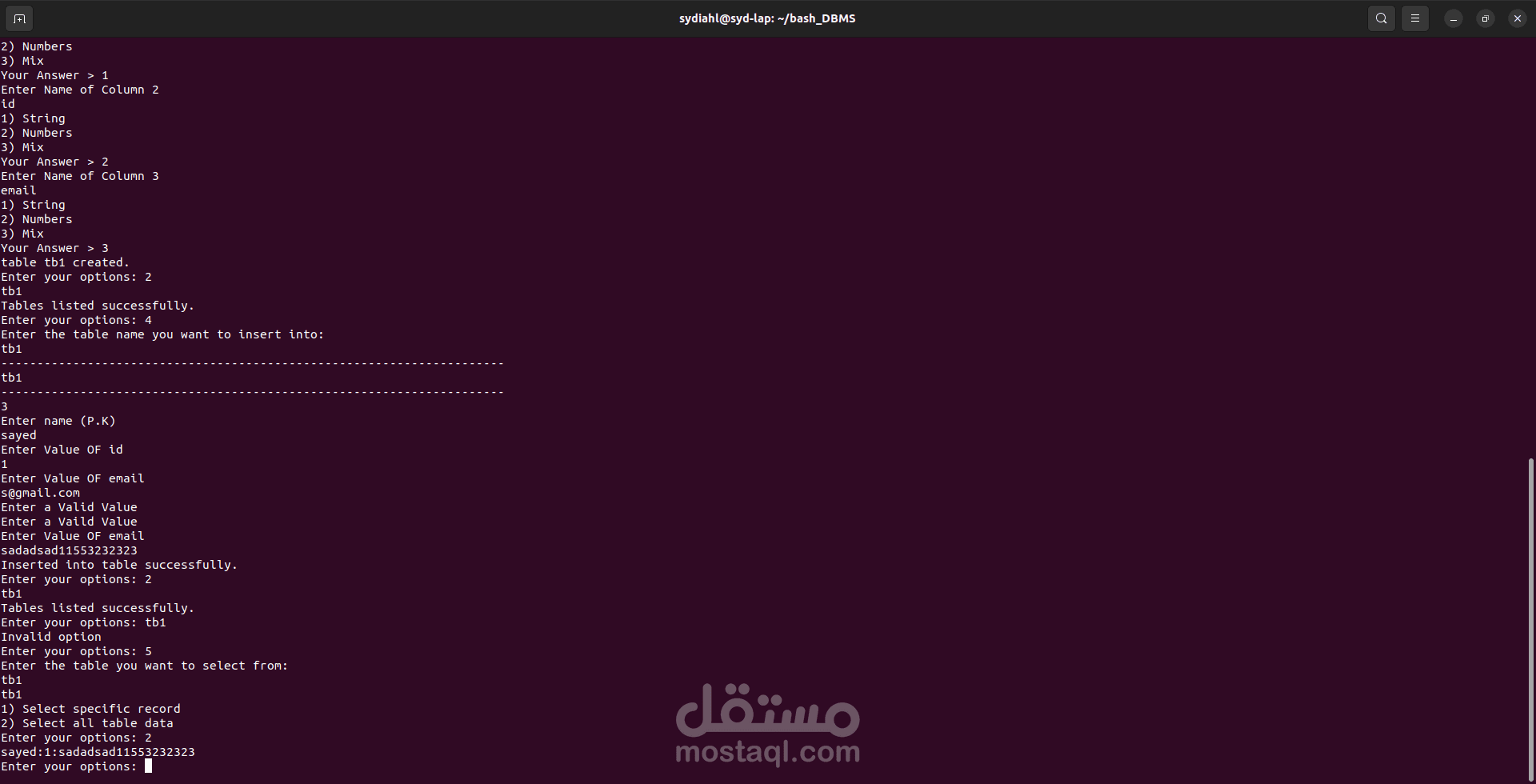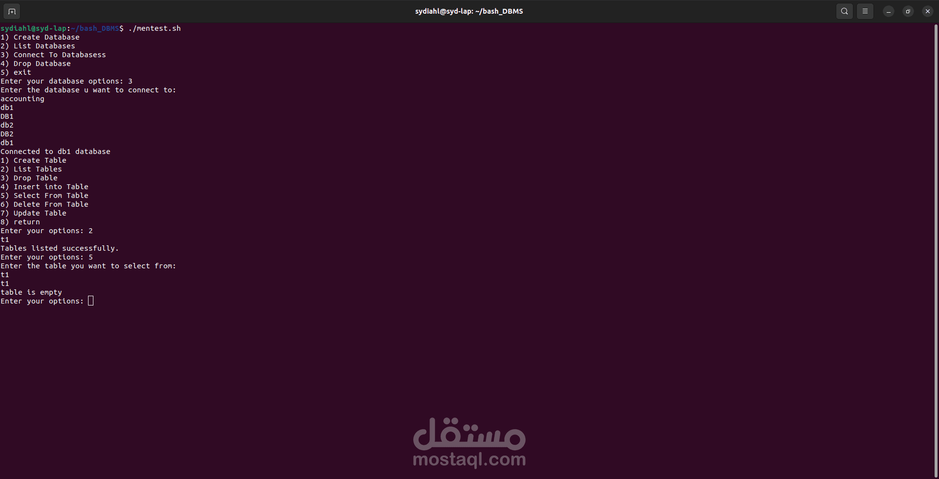 نظام ترتيب قواعد بيانات بسيطة باستخدام bash script يمكنه تخزين مجموعة من البيانات
