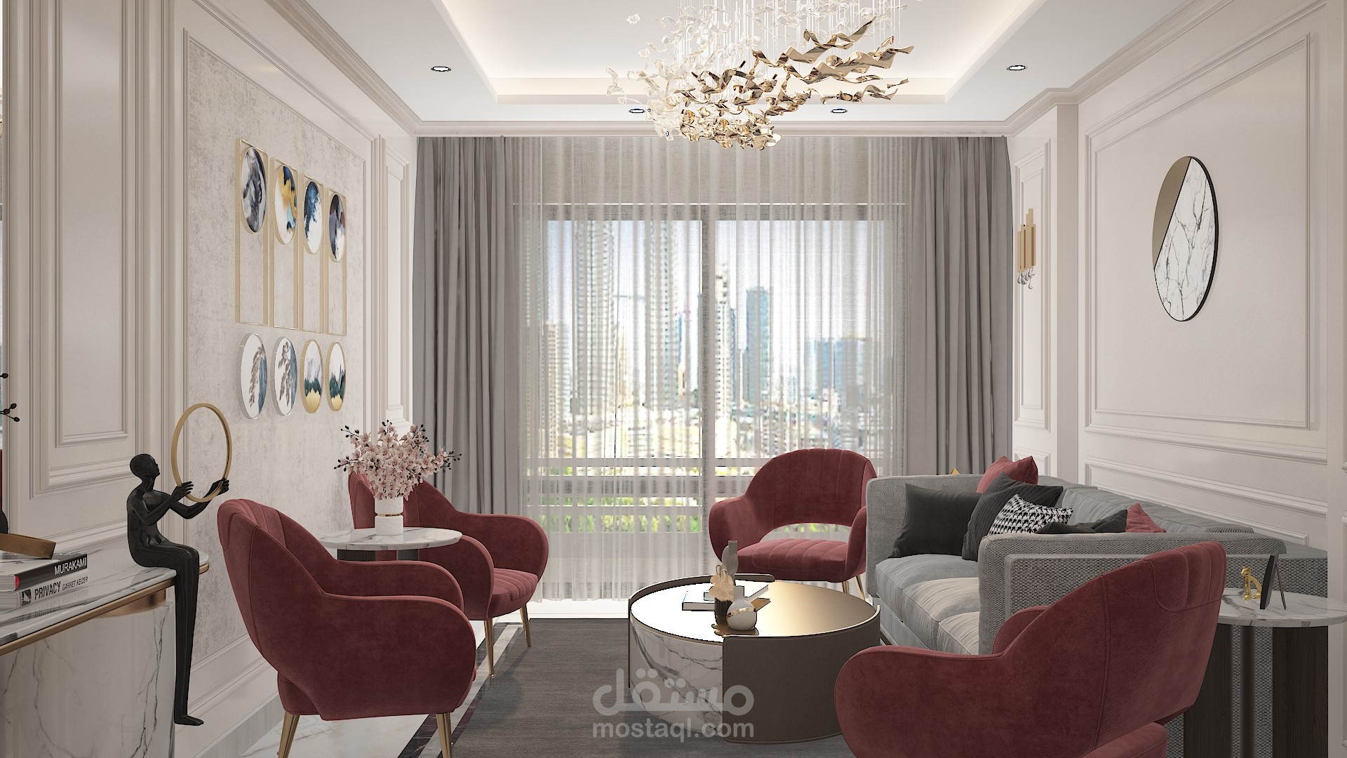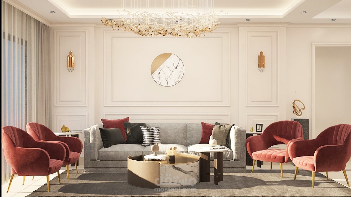 تصميم ريسبشن بتصميم راقى وعصرى مع اساخدام خامات بسيطه وفير وكلفه بناء على طلب العميل