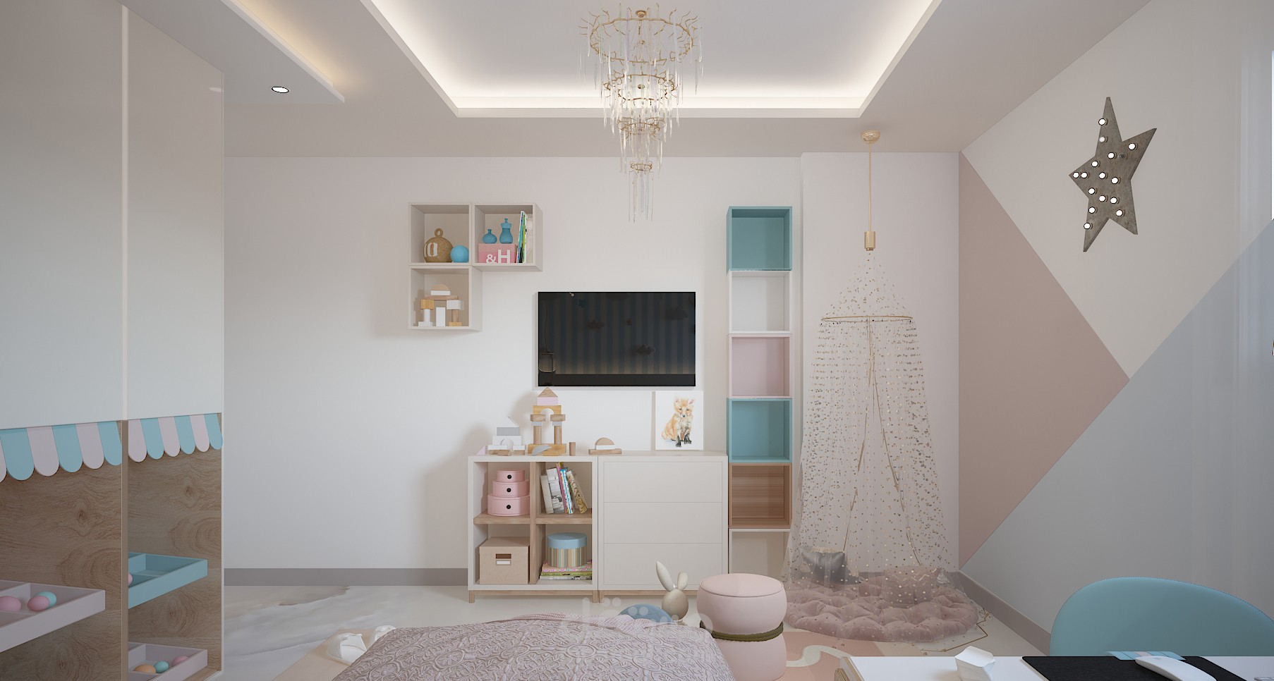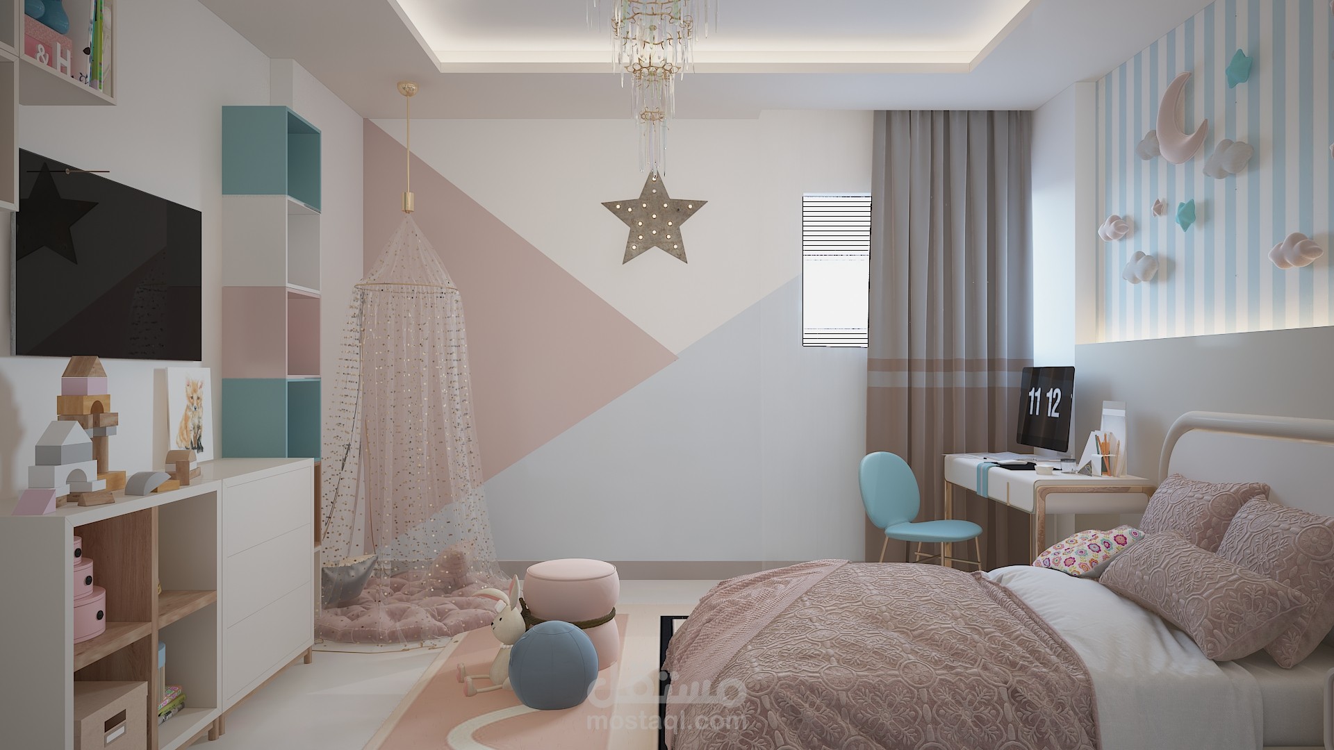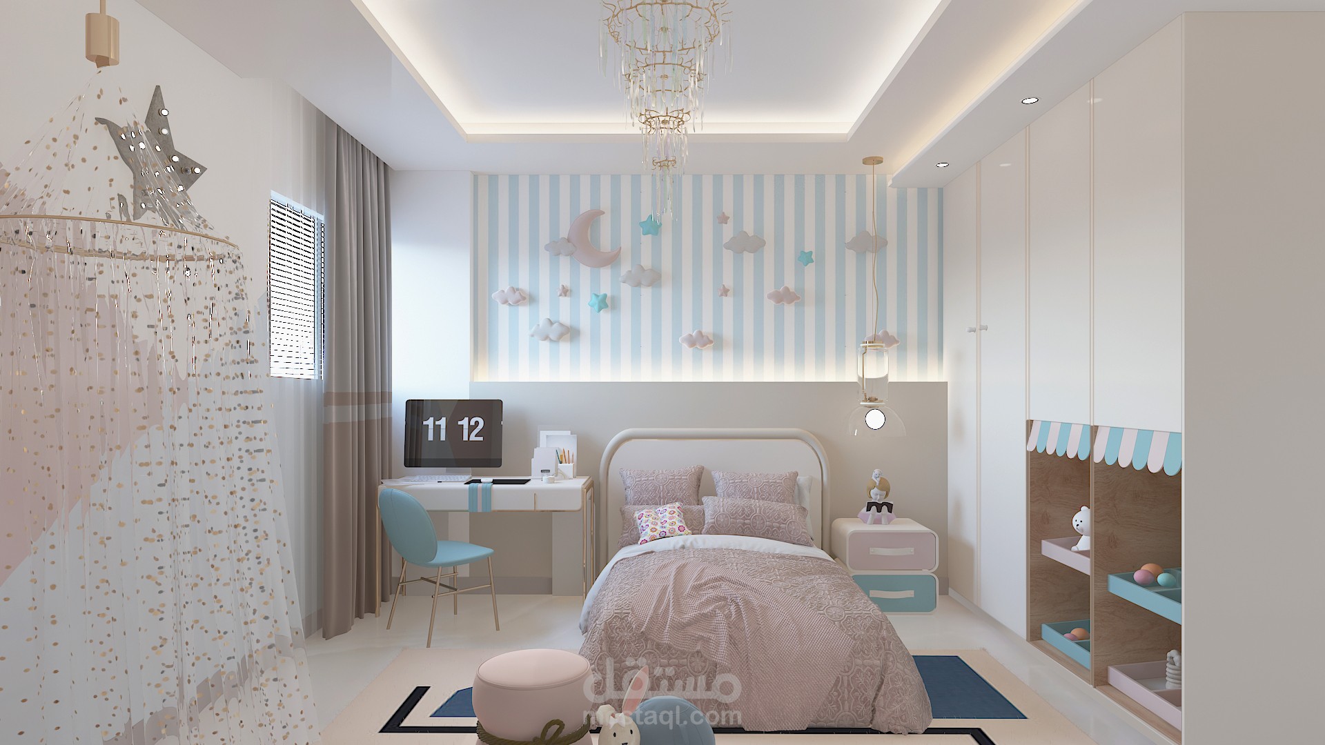 تصميم داخلى لفرفه اطفال مع مراعاه الالوان المريحه والاضاءه الكافيه