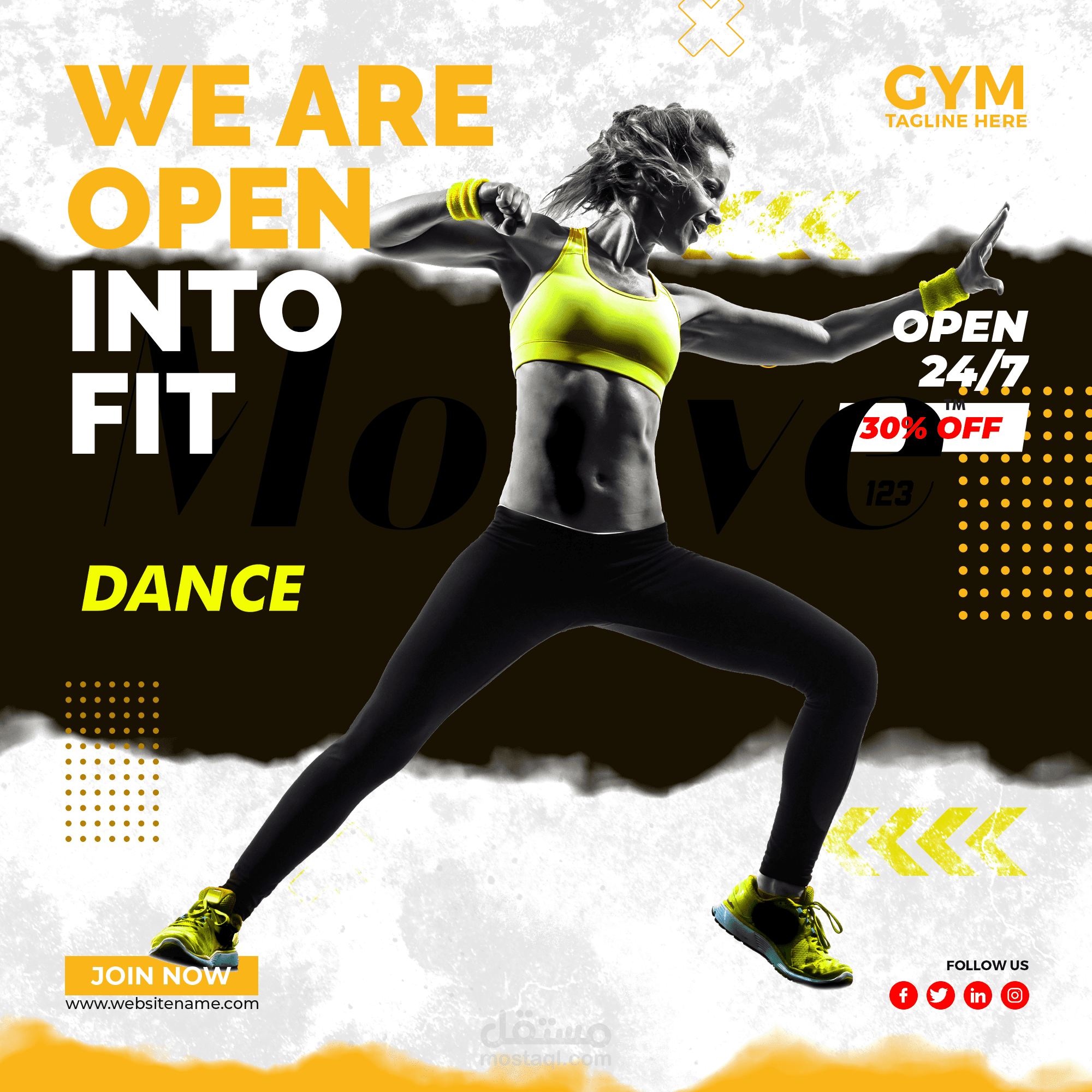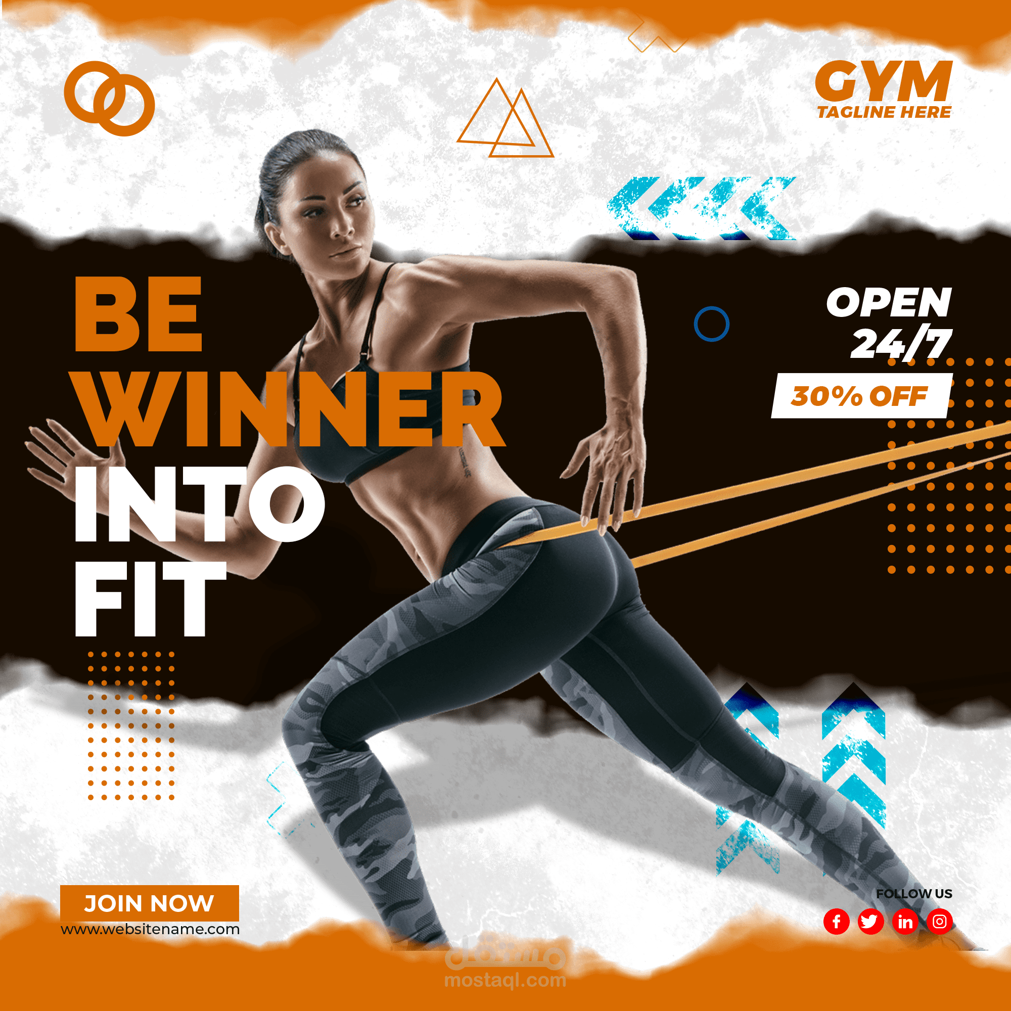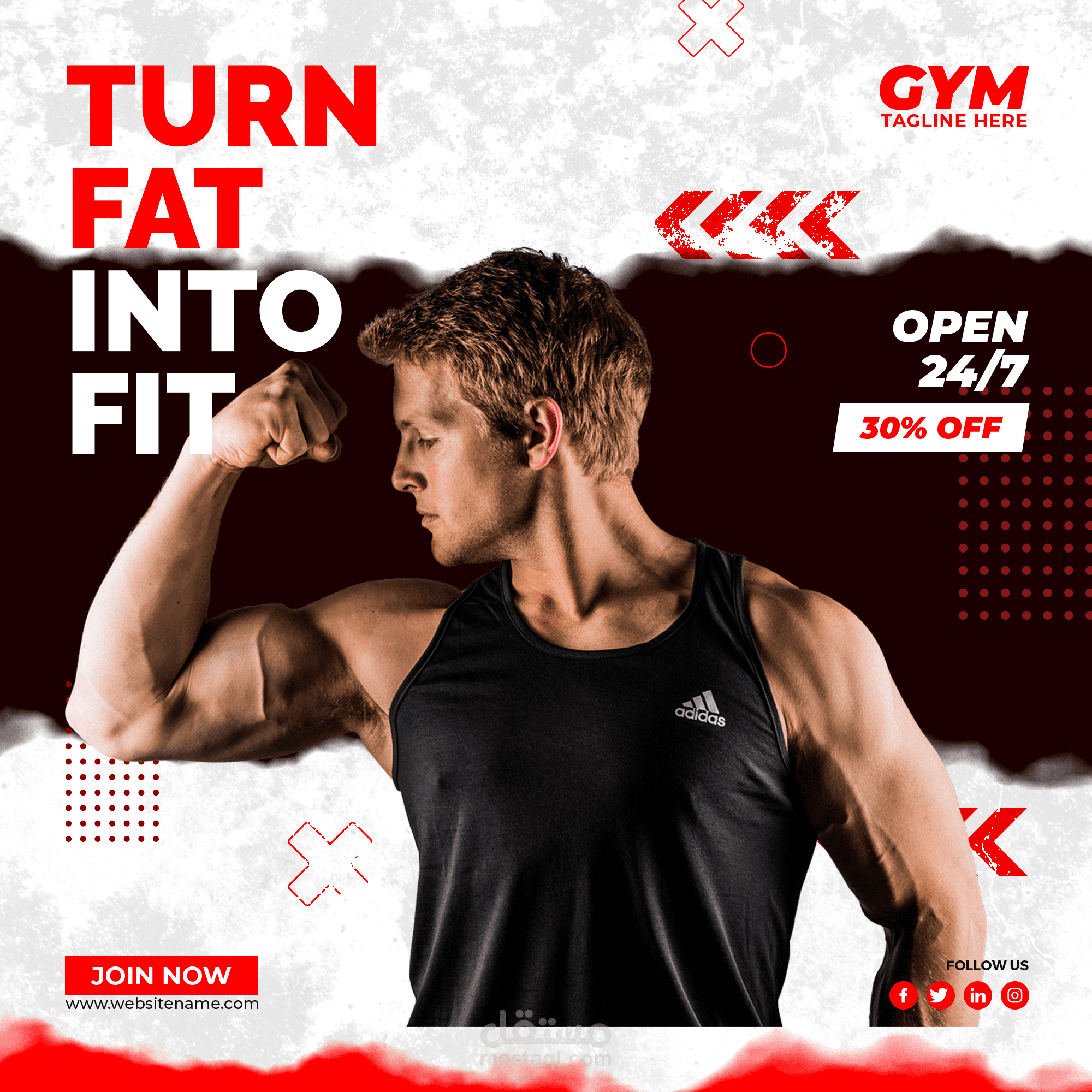 بنرات احترافية فريدة من نوعها مع بوستات اعلامية لسوشل ميديا (انستاغرام ، فيسبوك ..) لصالة رياضية خاصة تبين البراند و تشجع على الإنخراط