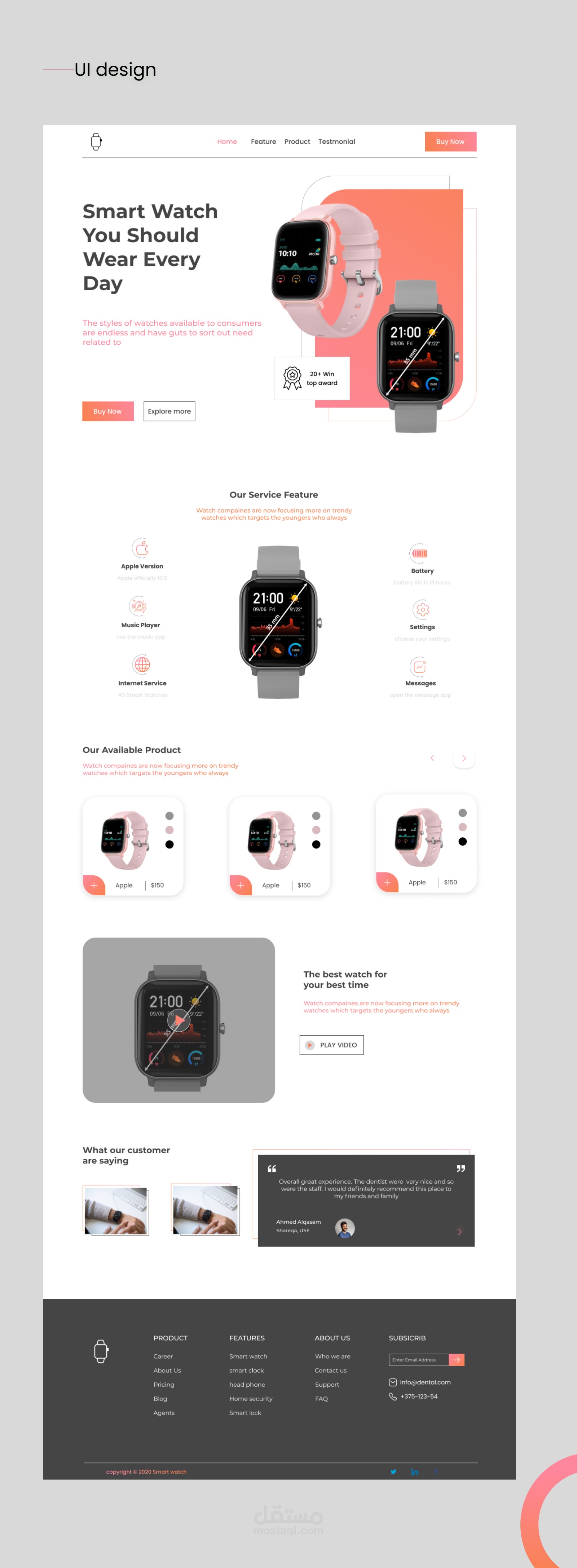تصميم صفحة هبوط لساعات ذكية( smart watches)