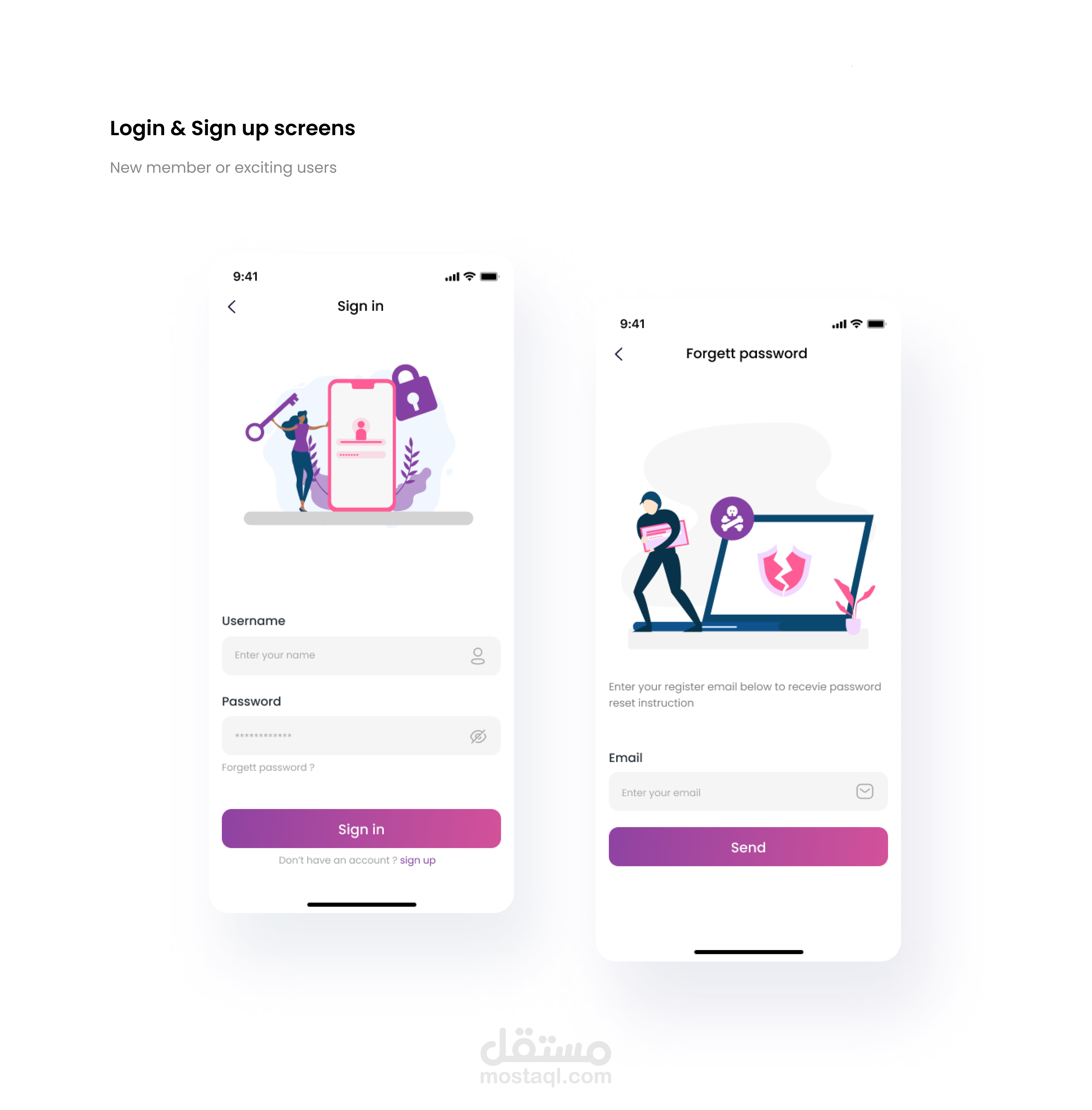 Login & Sign up screens