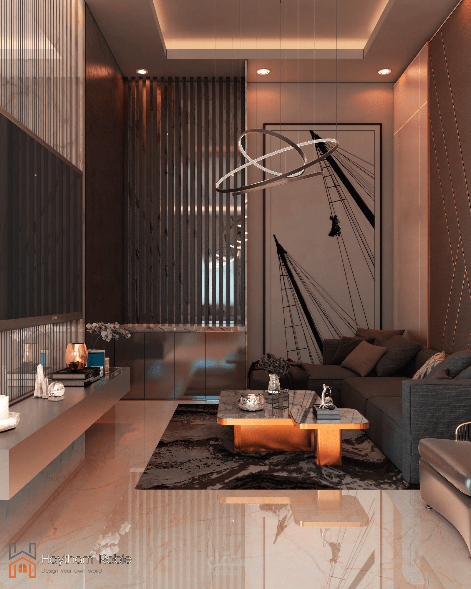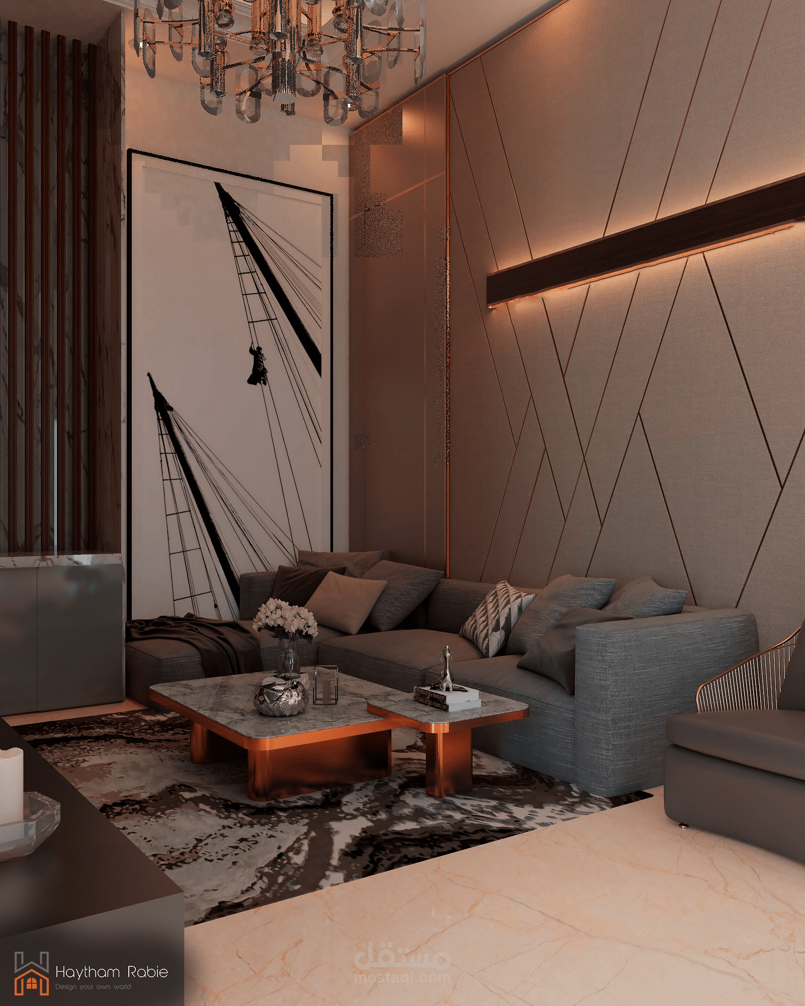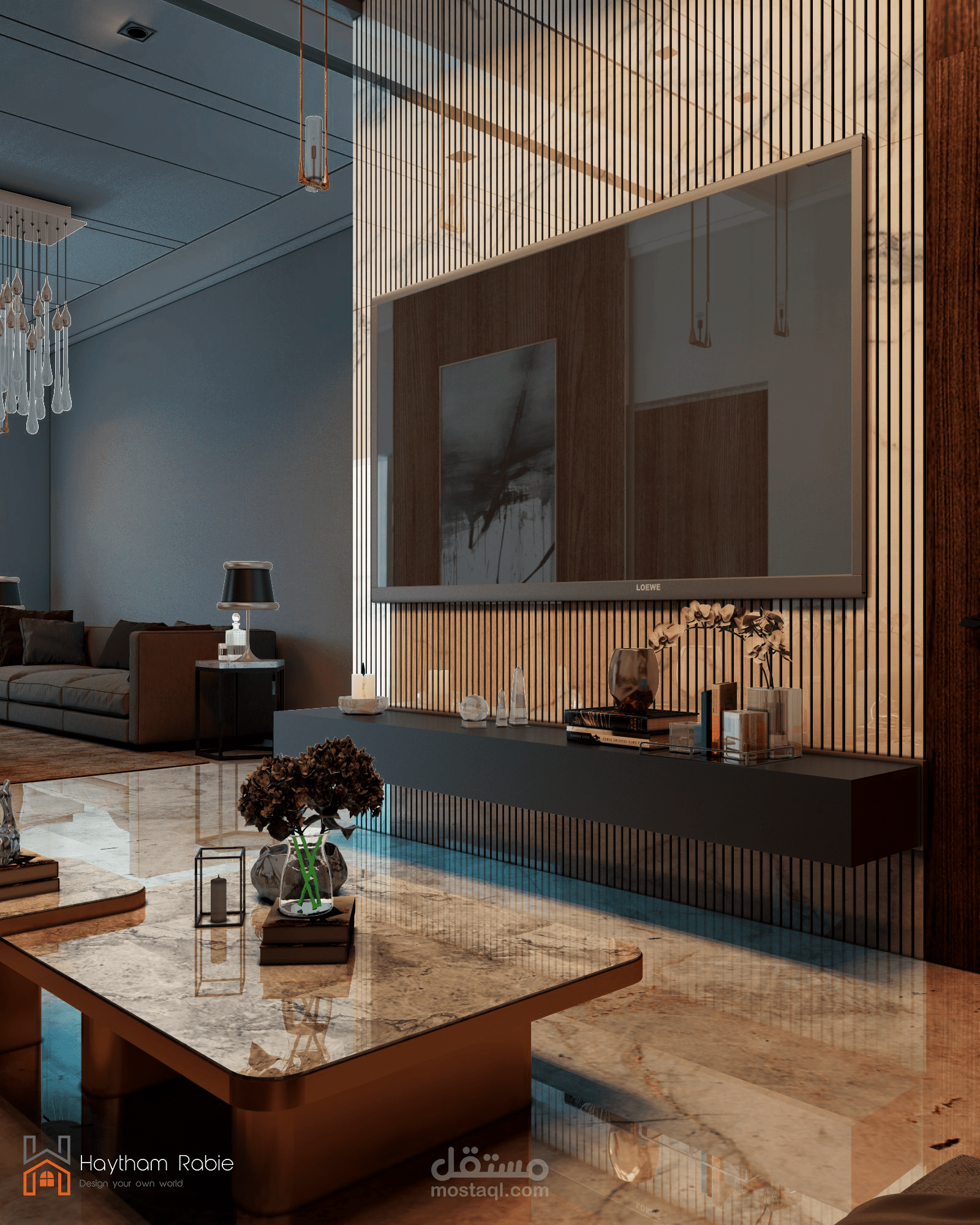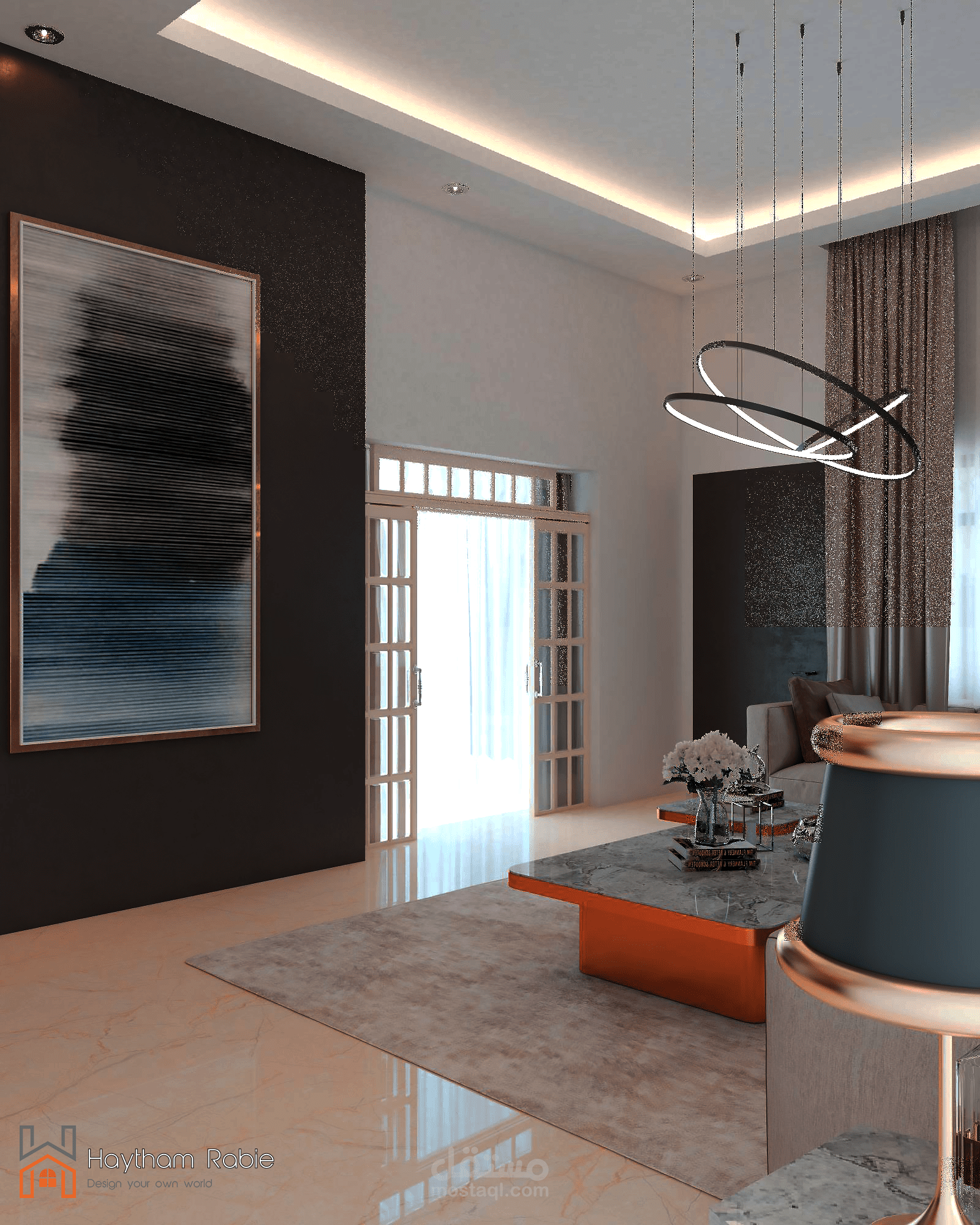 تصميم غرفة معيشة وريسبشن في المملكة العربية السعودية