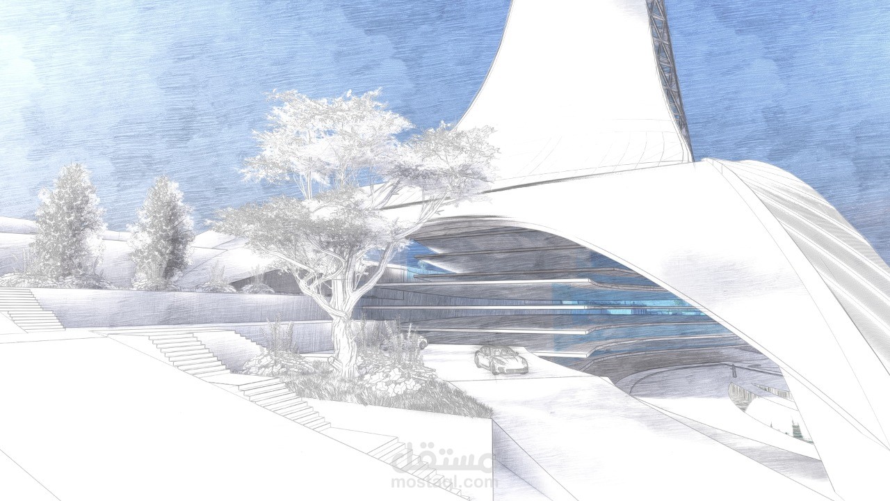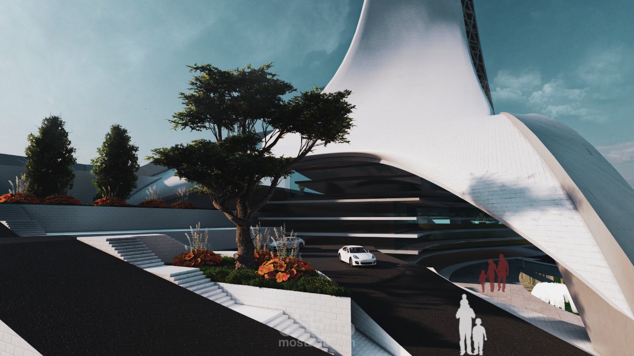 يمثل مفهوم التصميم اتصال البرج بالمنصة والبرج، بحيث يبدا البناء من مستوى الارض بحيث يقوم الشلتر بالربط بين البوديوم والبرج مما عزز ارتباطهما بالأرض وقربهما من الناس