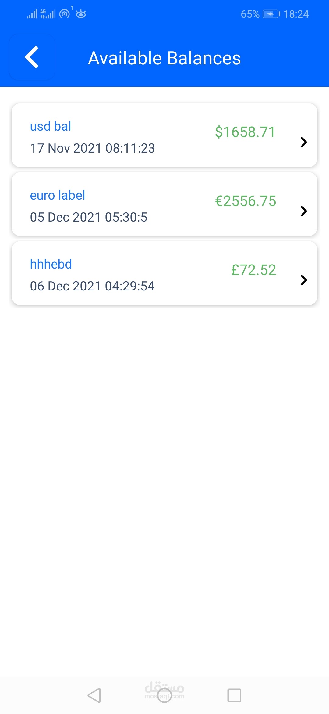 - إنشاء وحذف وتحديث أرصدة متعددة (رصيد لكل عملة متاحة)