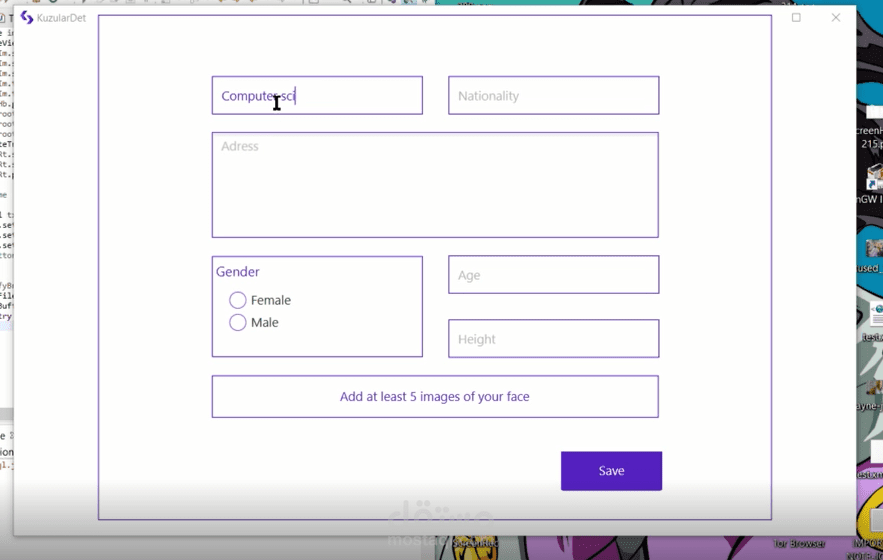 تطبيق سطح المكتب للتعرف على الوجوه مرتبط بقاعدة البيانات واكتشاف الوجه للعمر والجنس.