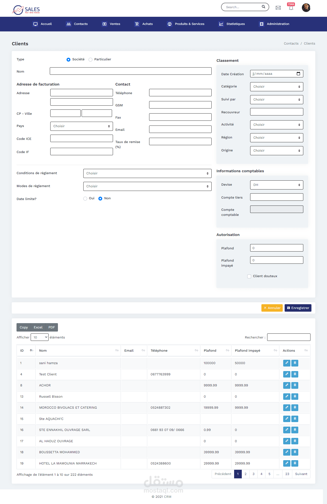 بناء تطبيق ويب ، وإدارة جميع المهام التي تحتاجها الشركة (تقدير الأسعار ، الطلبات ، الشحن ، الفواتير ، الإرجاع ، كشف الحساب ، الخصومات للعملاء [الحد الأقصى للخصم للشركة] ، جهات الاتصال ، الدفع ، القائمة السوداء) للعملاء والموردين. أيضا أن تفعل قائمة ، وإدارة
