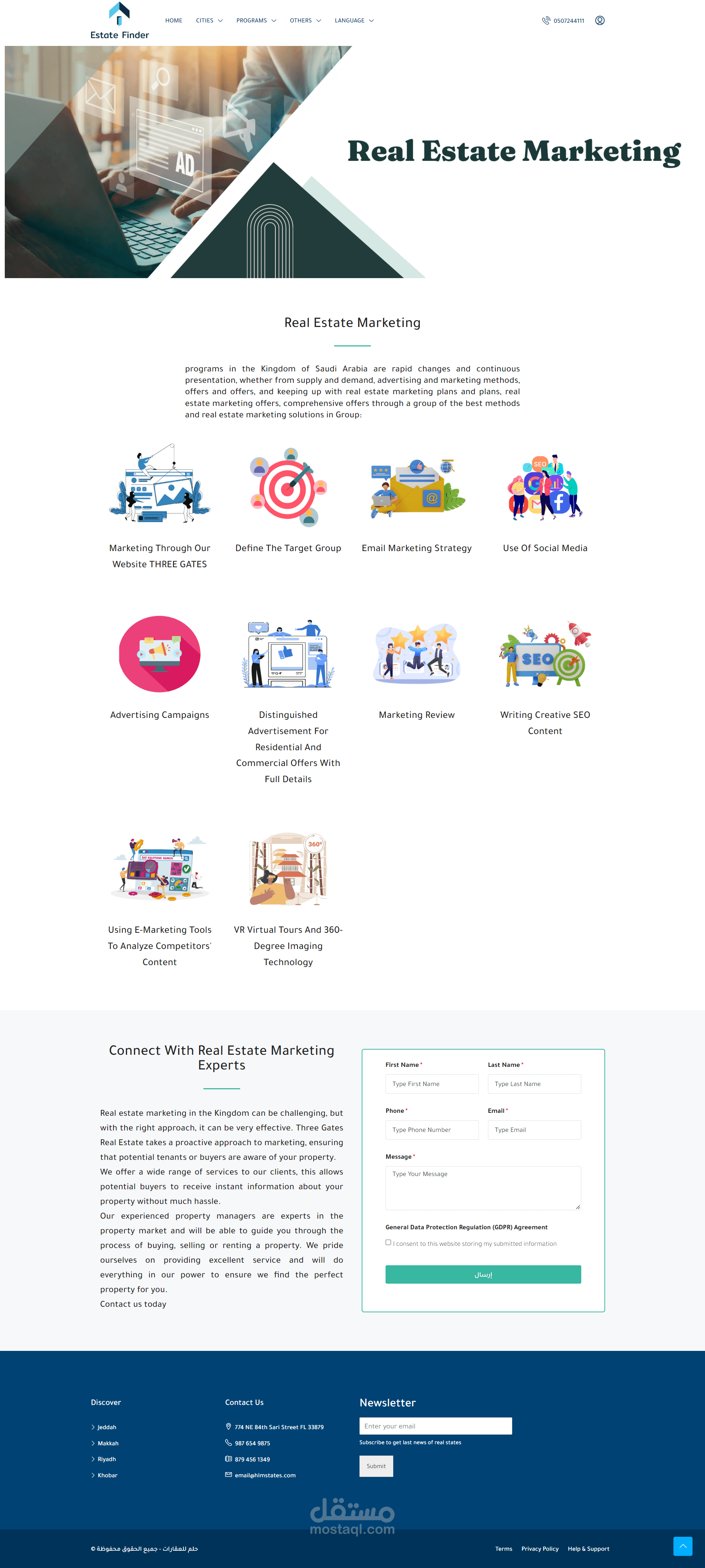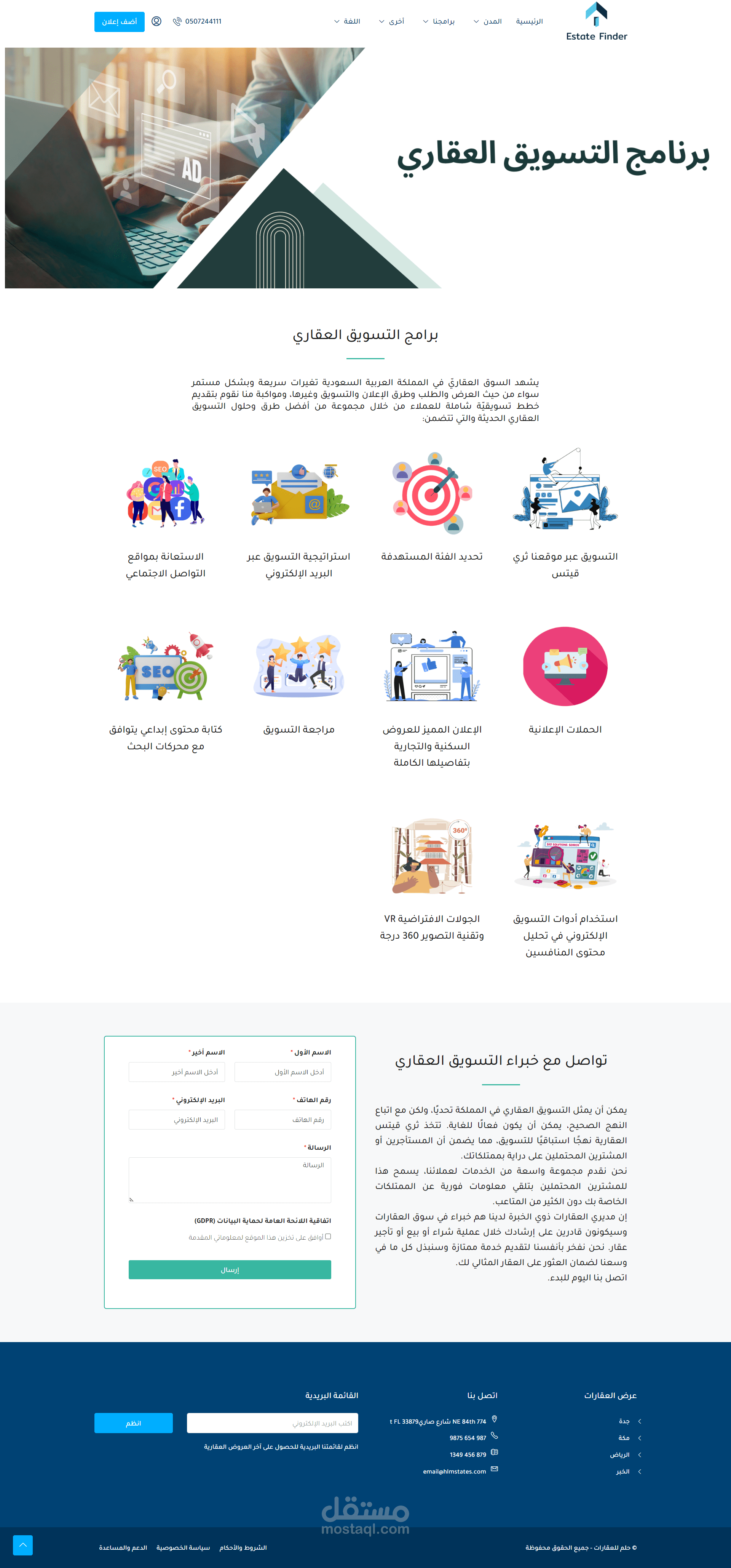 تصميم وبرمجة صفحات هبوط تسويقية لبرامج وخدمات عقارية في المملكة العربية السعودية