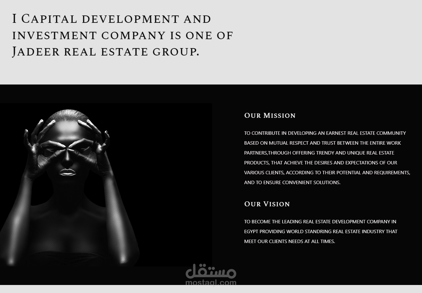 اي كابيتال ديفيولوب مينت شركة عقارات في القاهرة تم تصميم الموقع بناءاً علي فكرة البساطة والفخامة لعكس رؤية الشركة .