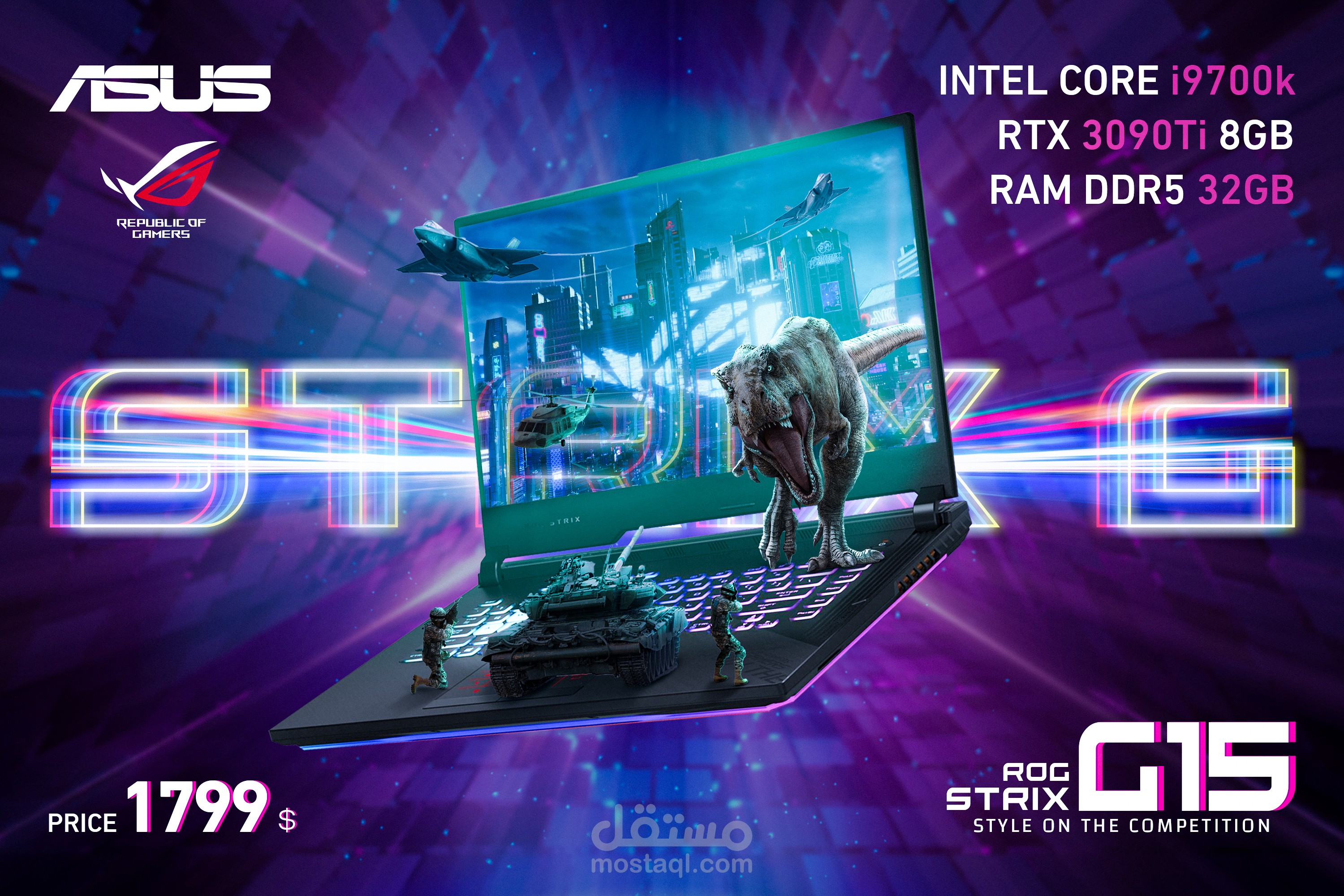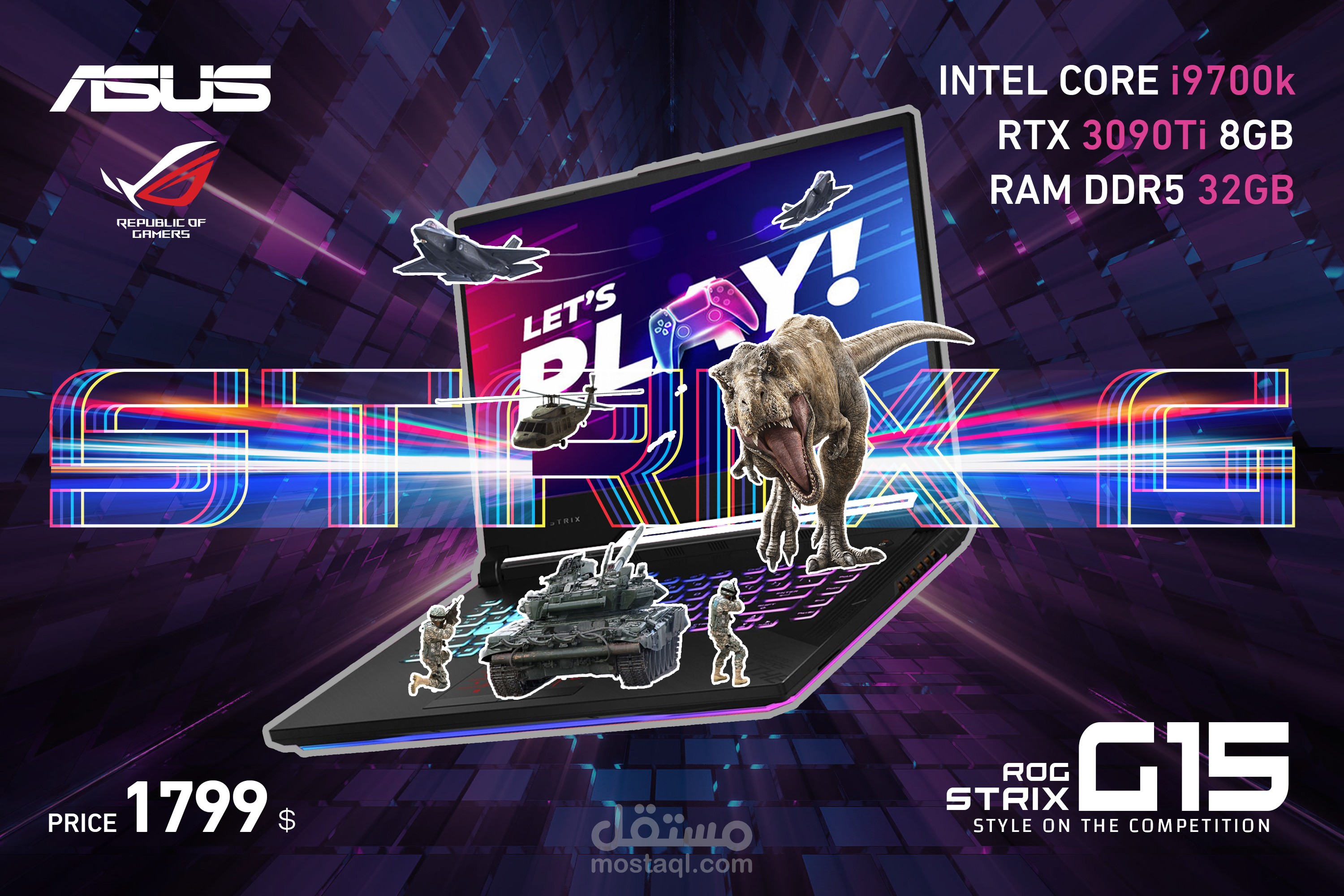 هذا العمل عبارة عن إعلان غير رسمي لشركة ASUS حيث تقدم لابتوب بمواصفات خارقة يسمى (ROG STRIX G 15) وبسعر مناسب جدا وتستهدف في هذه الحملة محترفين ألعاب الفيديو الذين يلعبون ألعاب ثقيلة جدا حيث يقوم هذا اللابتوب الخارق بتشغيل جميع ألعاب الفيديو بأعلى جودة ممكنة ويعطيك أيضا تجربة لعب فريدة من نوعها غير موجودة في أي جهاز آخر .