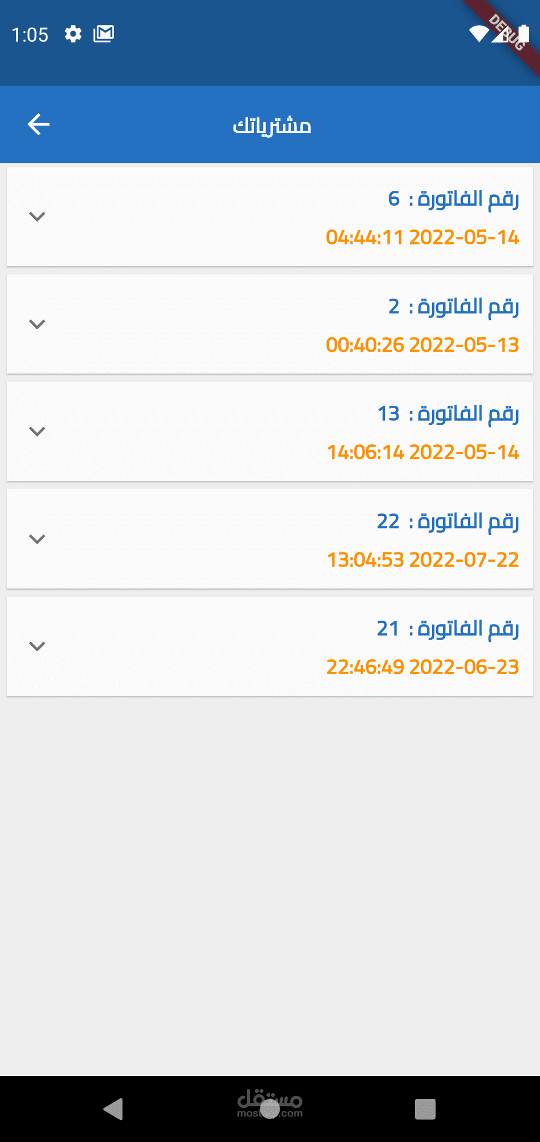صفحة لعرض الفواتير السابقة و المفتوحة و حالة الفاتورة او الطلب.