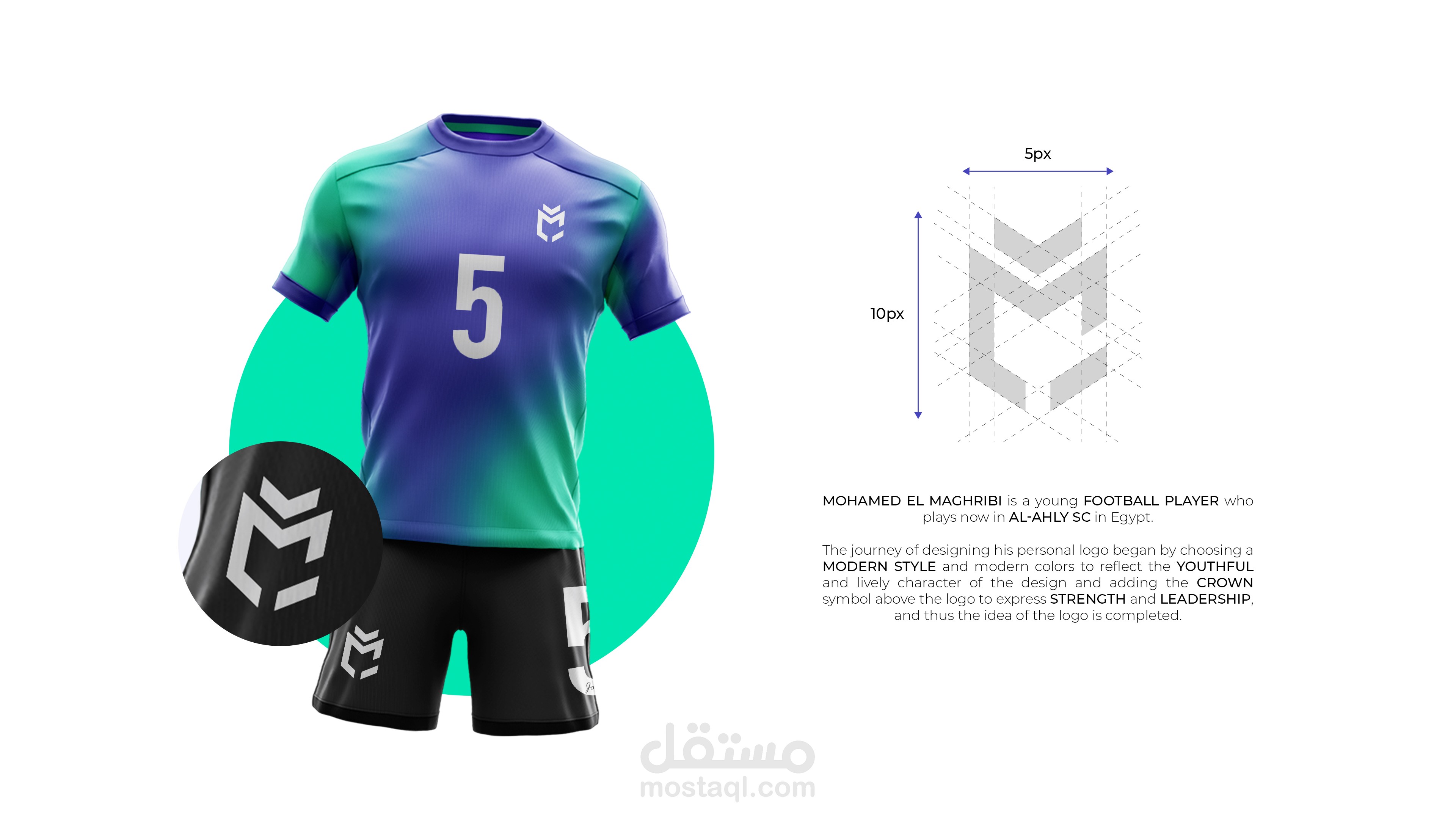 تصميم الشعار والهوية البصرية الخاصة بلاعب كرة القدم بفريق الناشئين بالنادي الاهلي المصري محمد المغربي.
