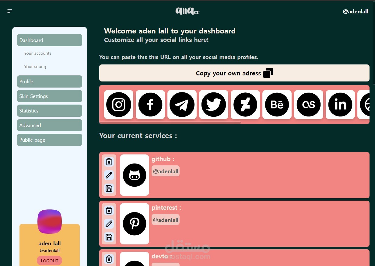 يساعدك الموقع في تنظيم جميع روابط حساباتك في مواقع التواصل الاجتماعي وغيرها من الميزات ( اكتشفها بنفسك ) بشكل مجاني.