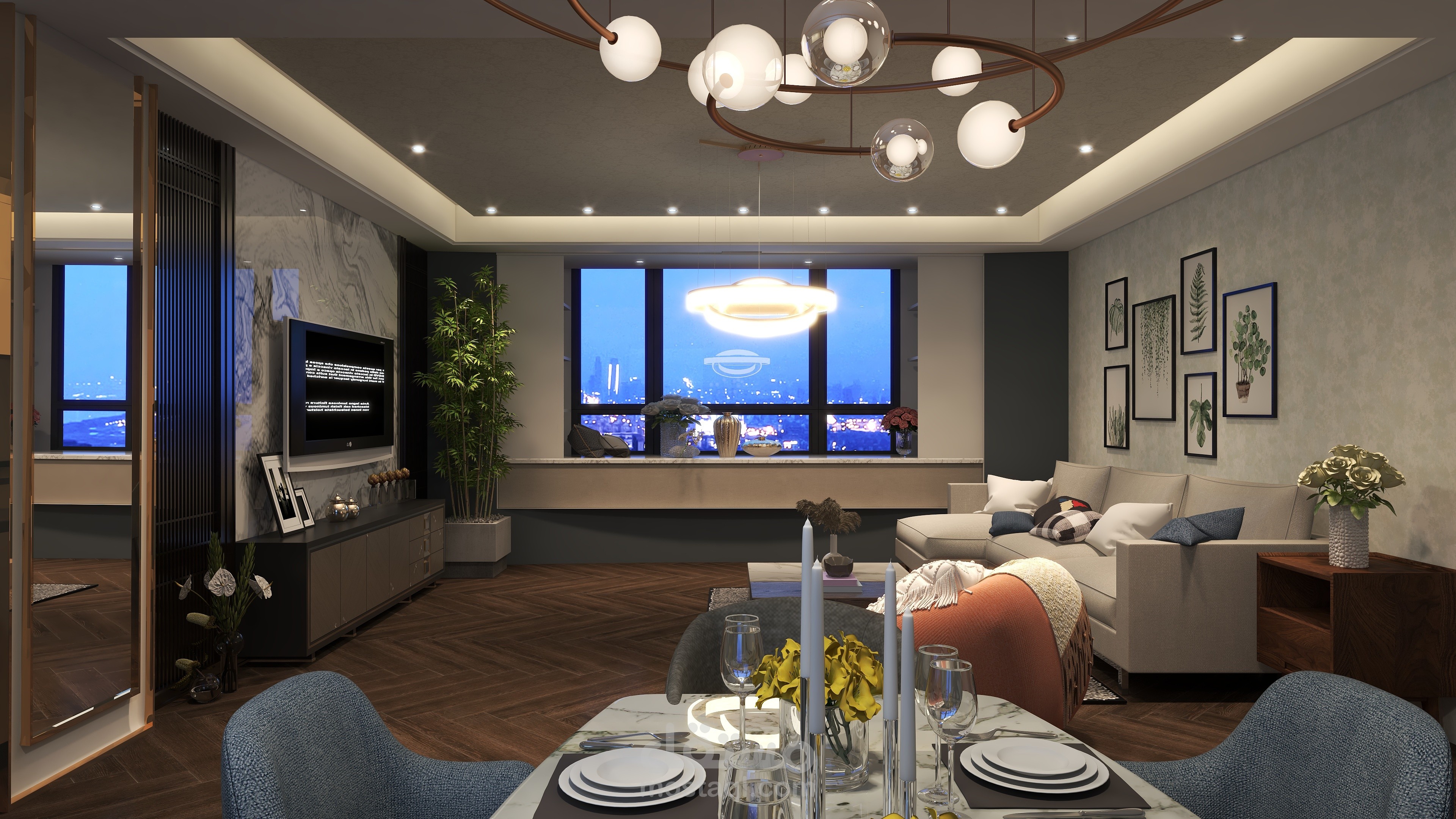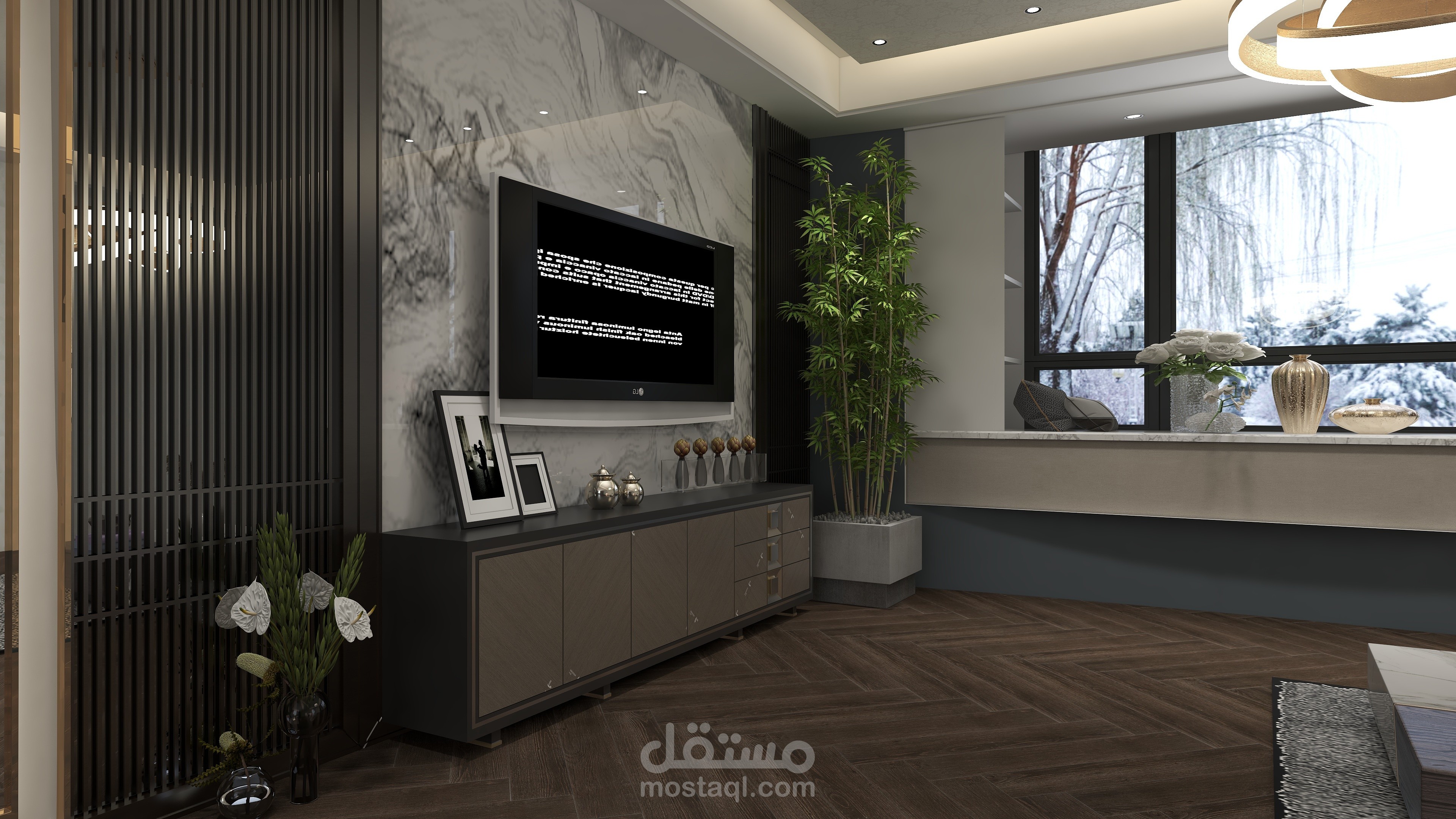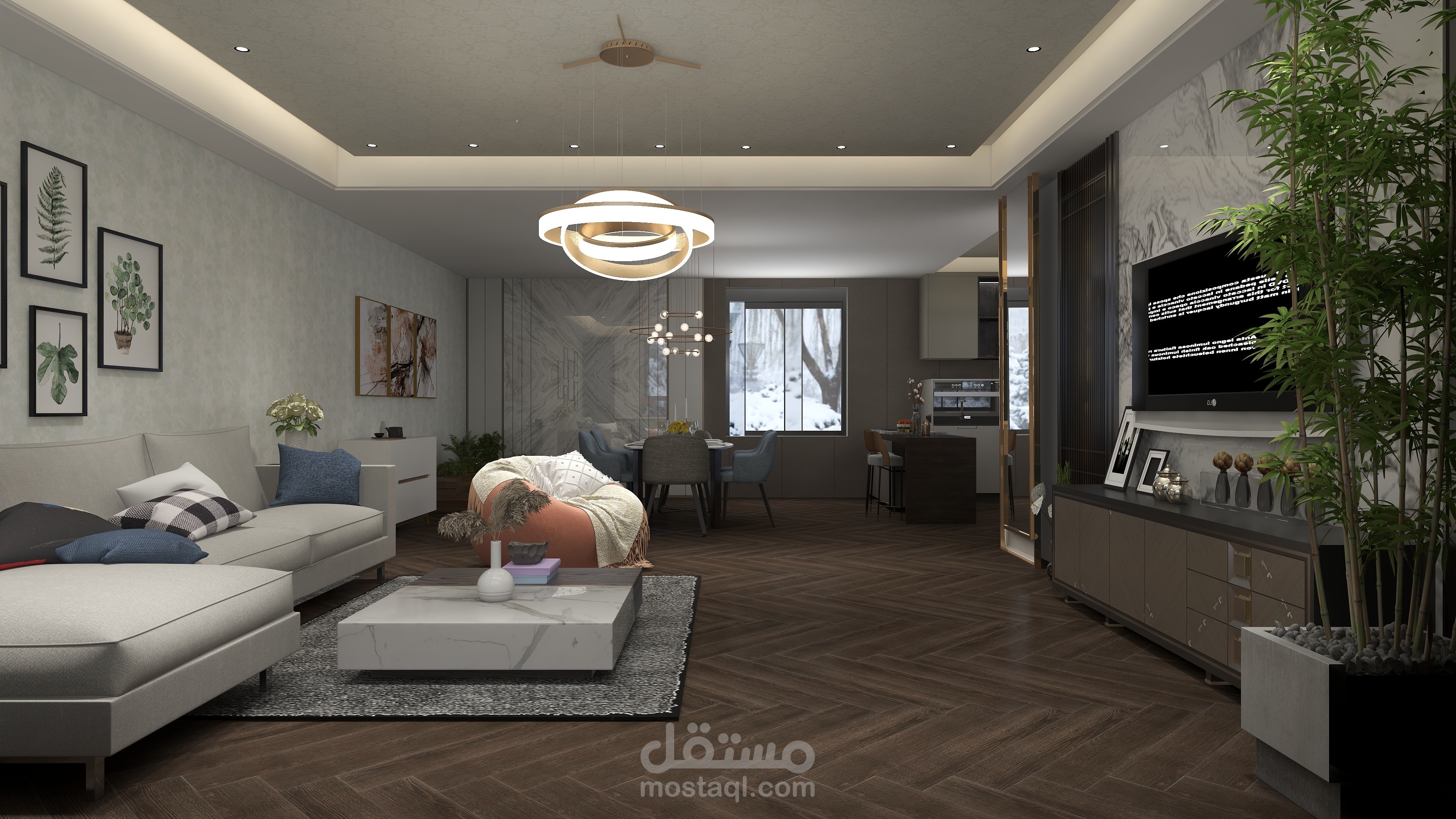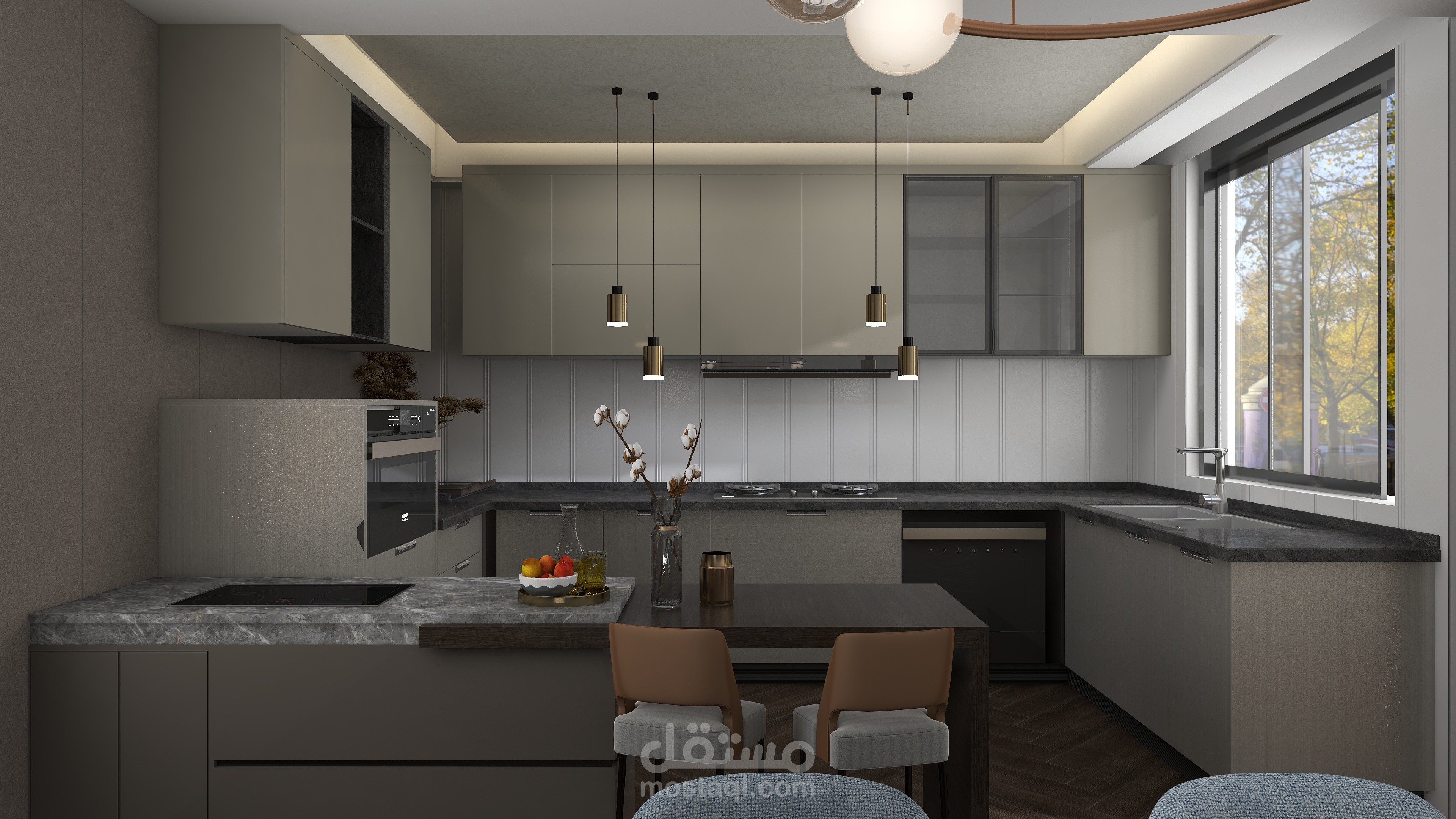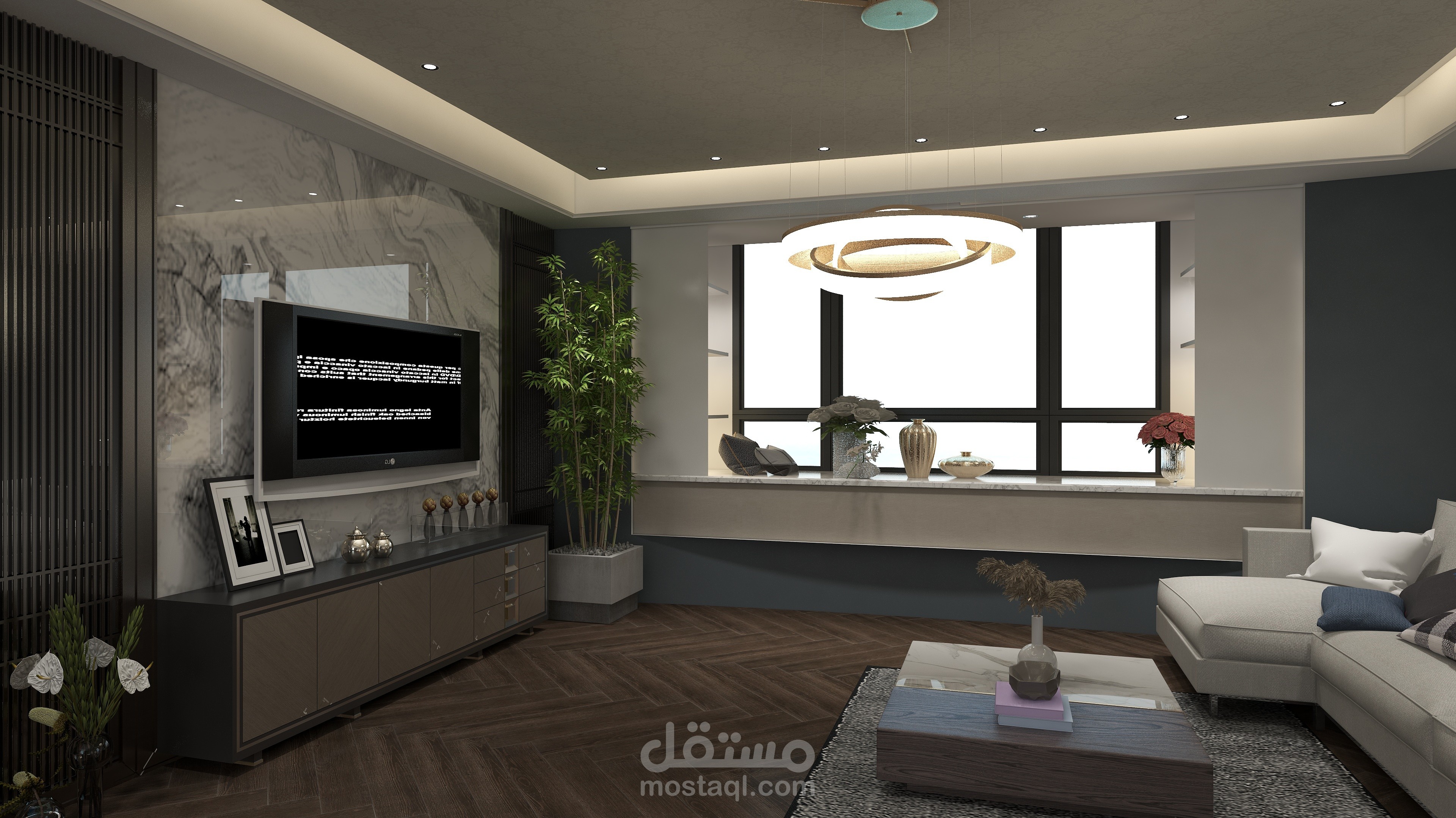 تتكون من غرفة جلوس مفتوحة على صالة طعام مطلة على المطبخ وغرفتي نوم وحمام وجلسة خارجية