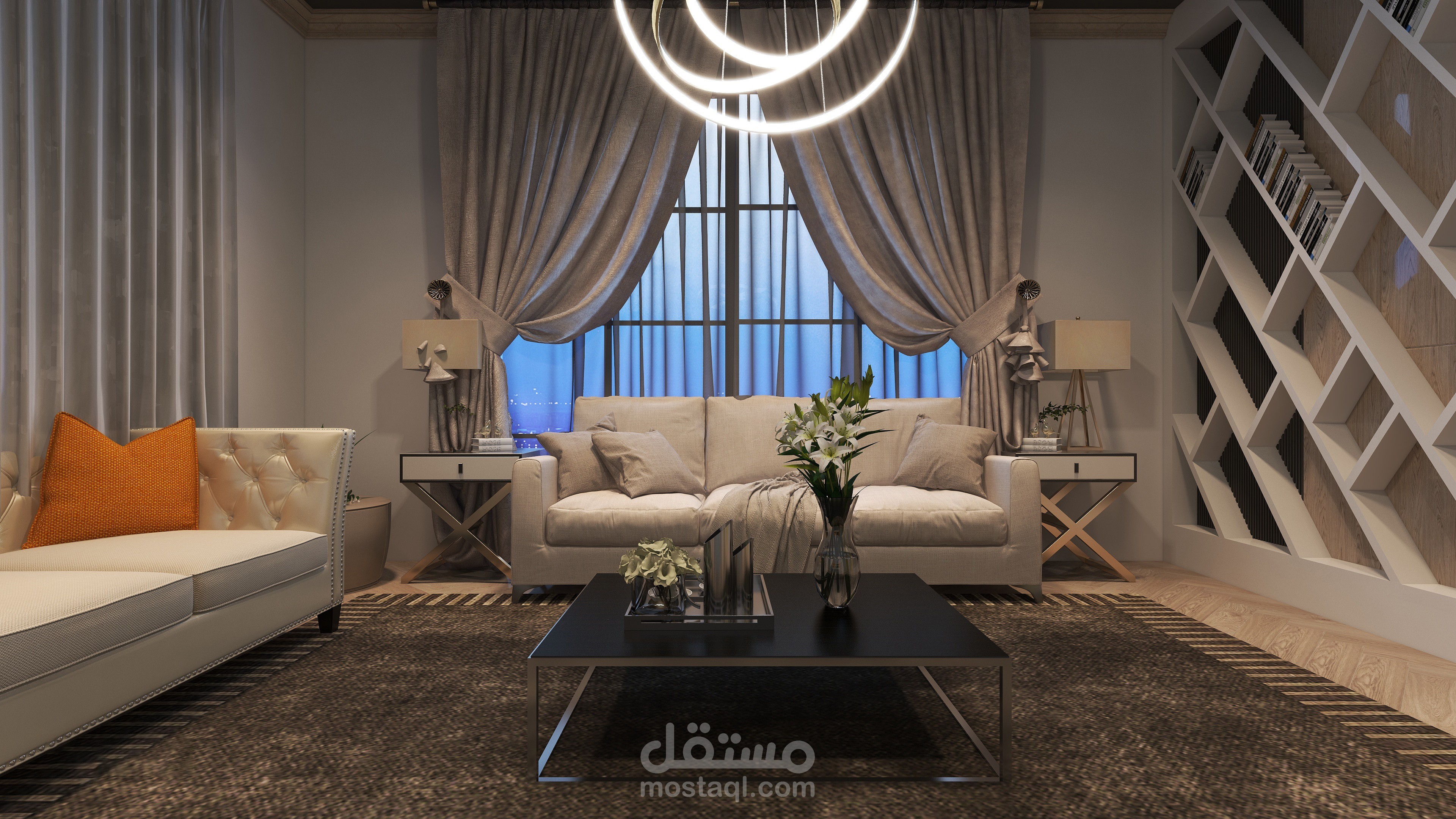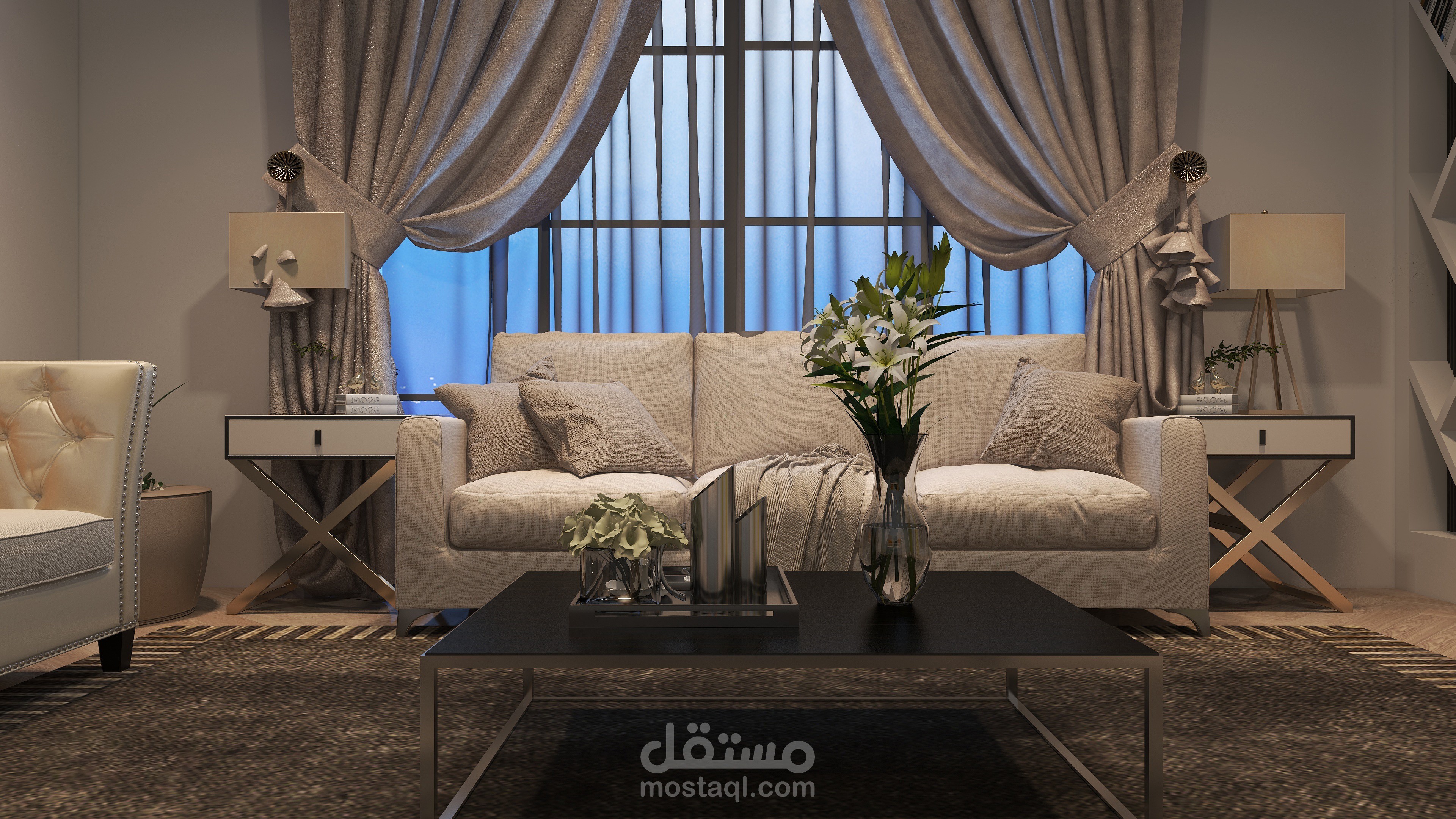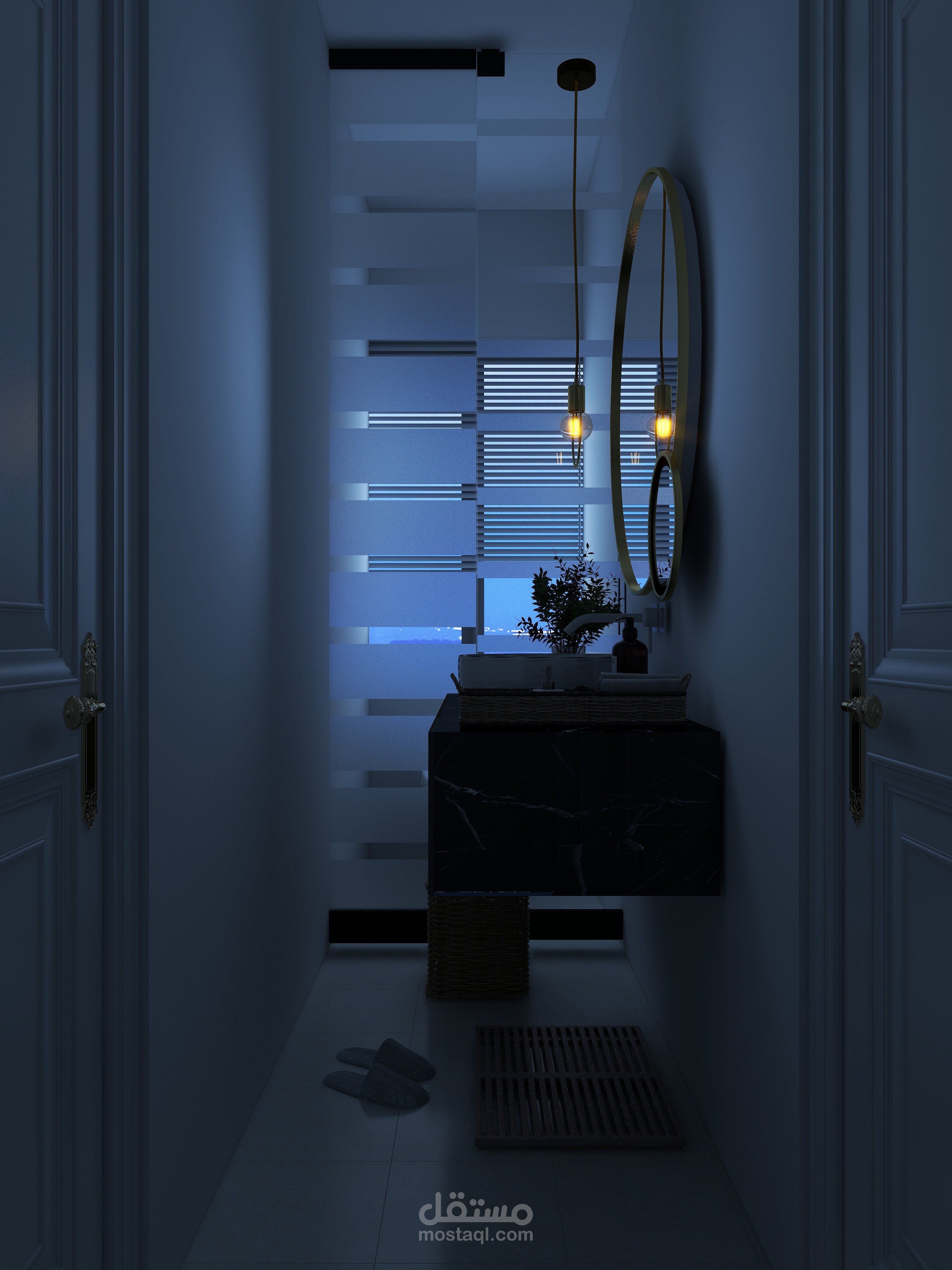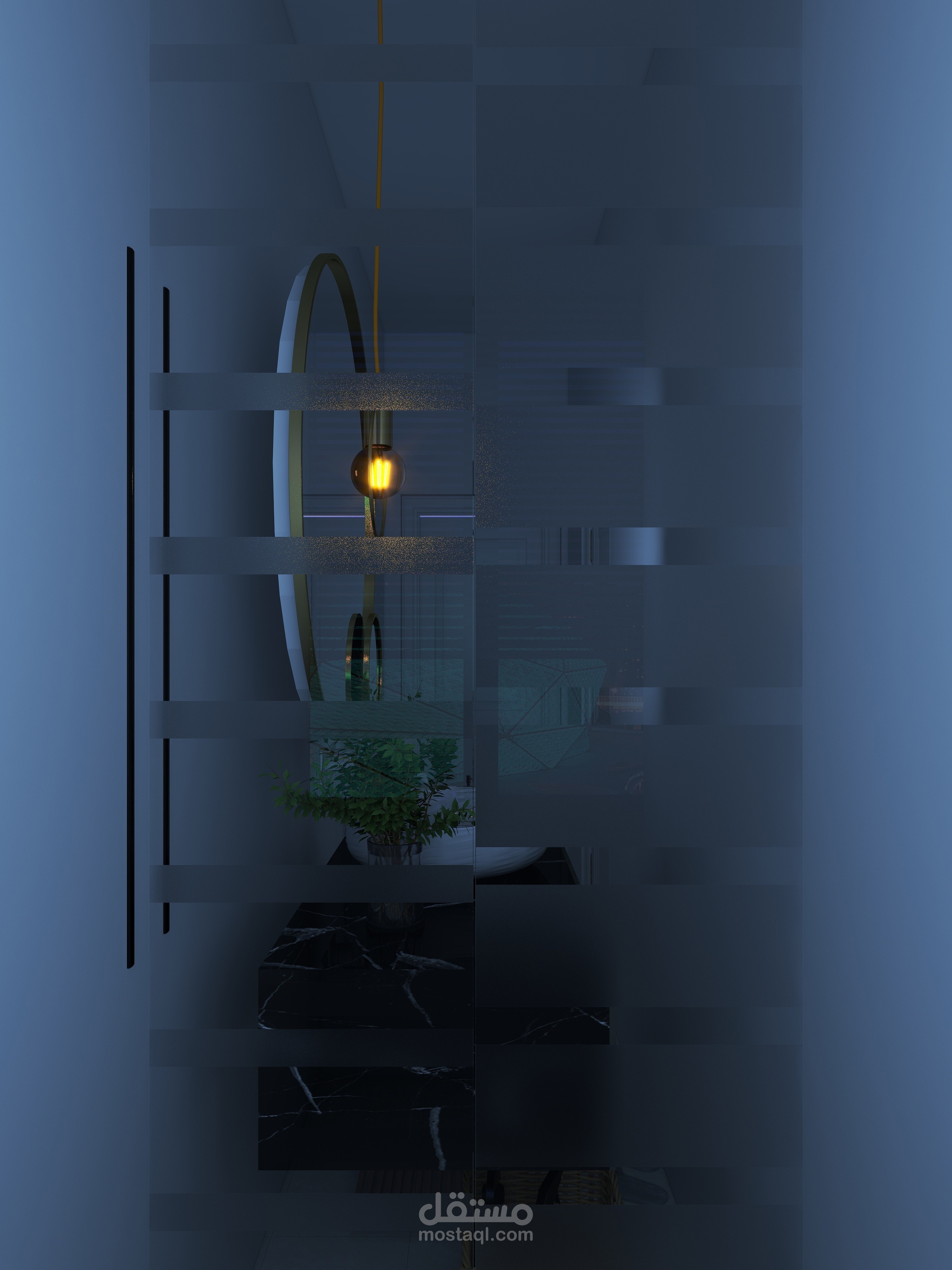 تم استخدام الألوان الباردة في التصميم لتعويض تأثير الطقس الحار في المنطقة