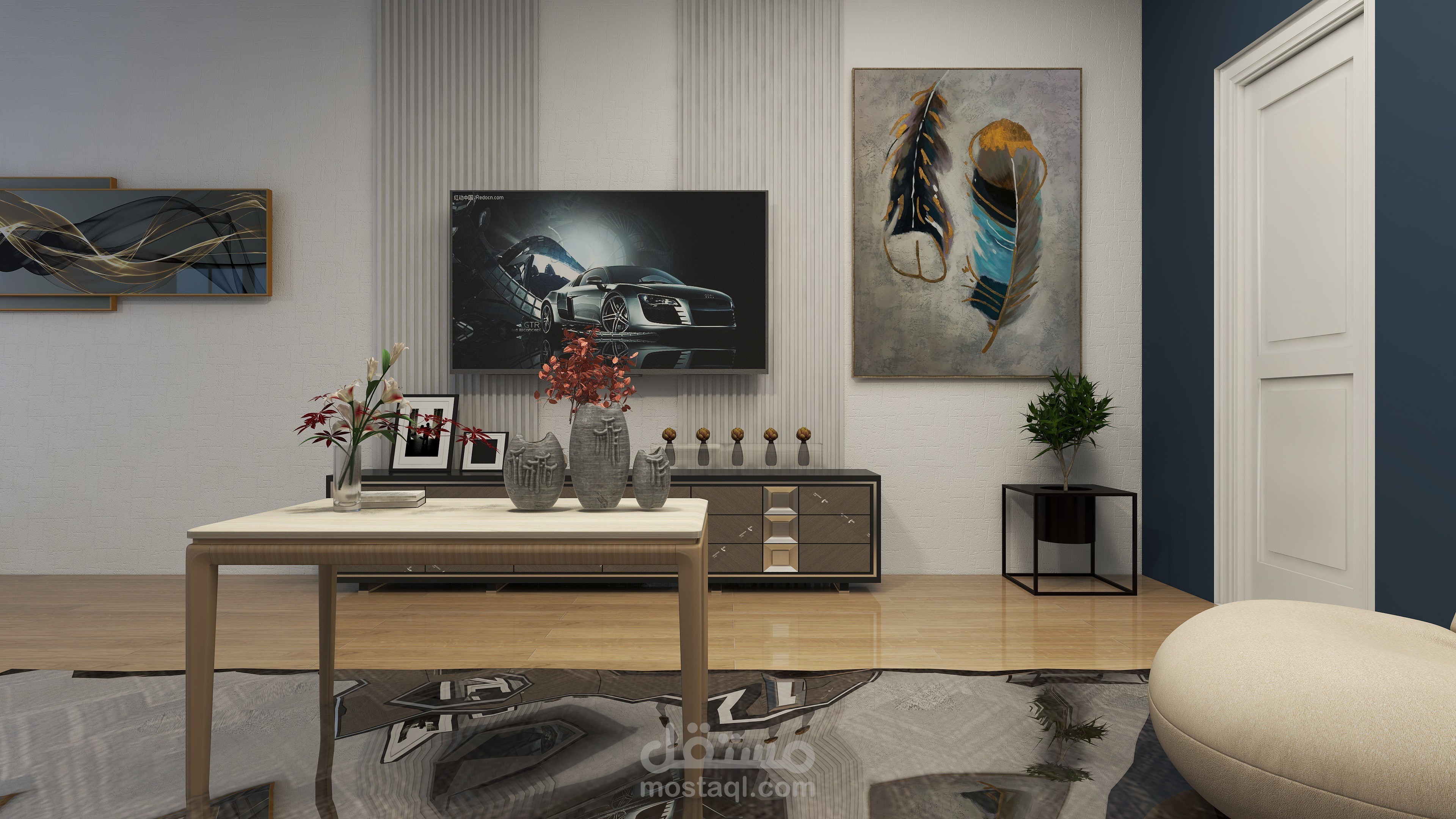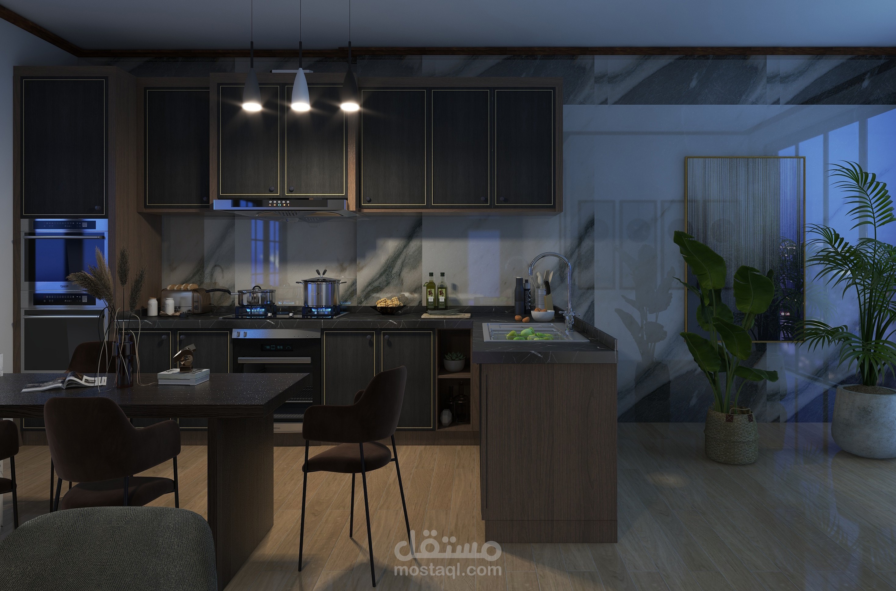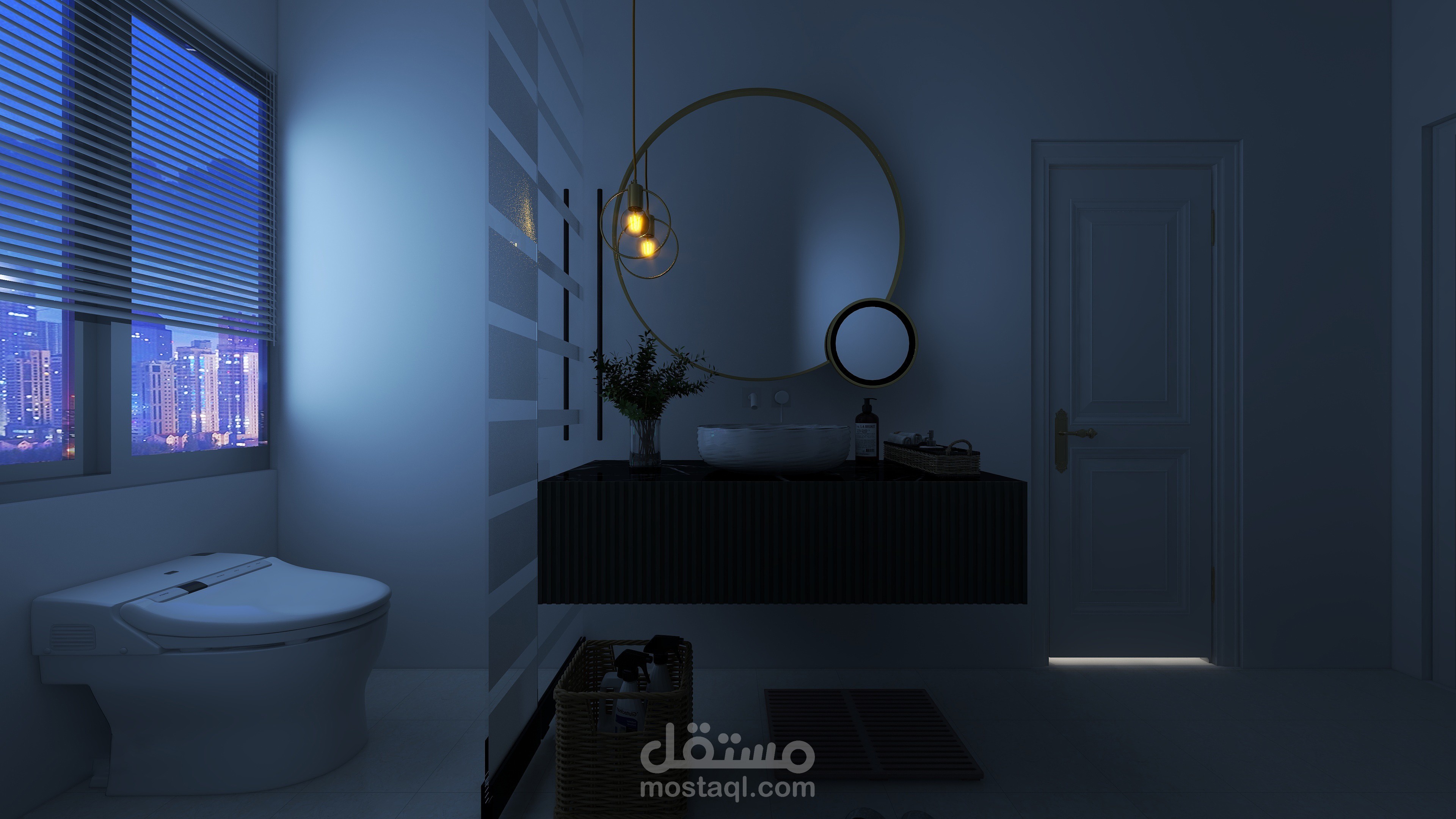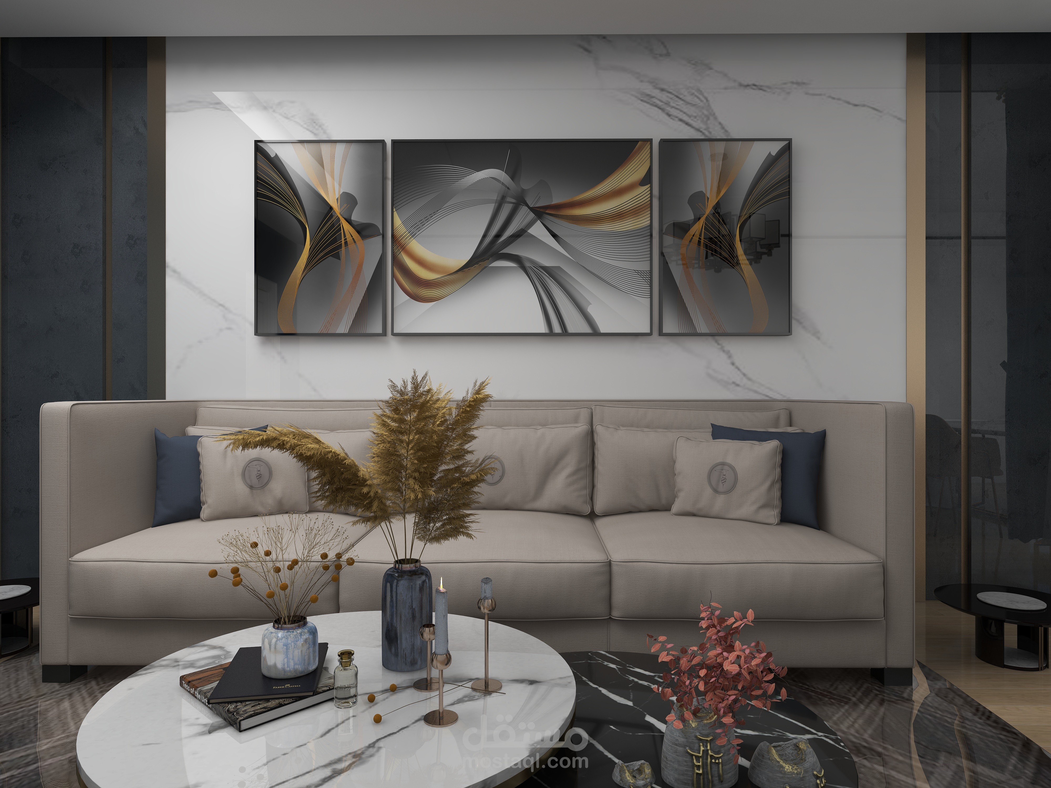 تم استخدام الألوان الباردة في التصميم لتعويض تأثير الطقس الحار في المنطقة