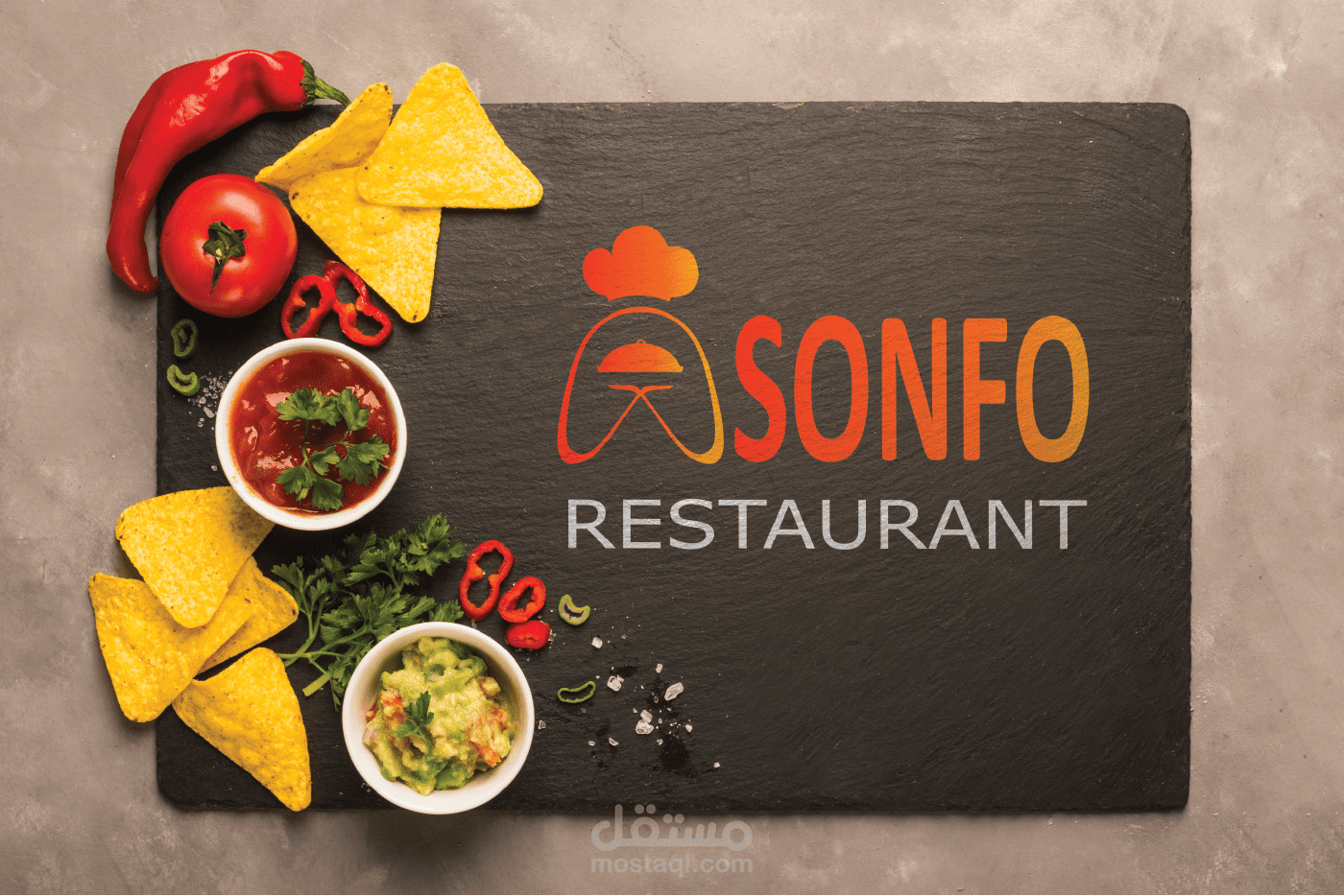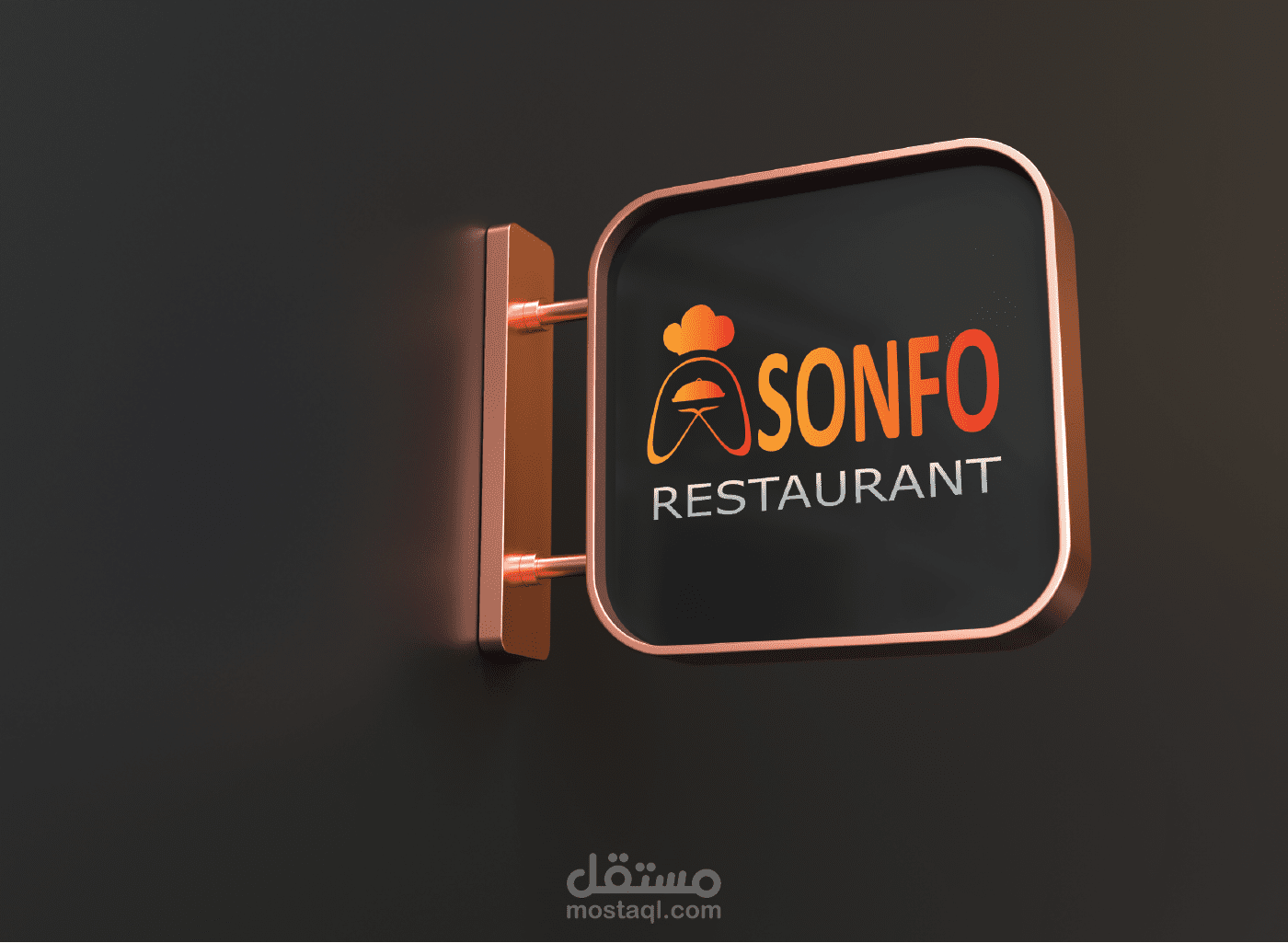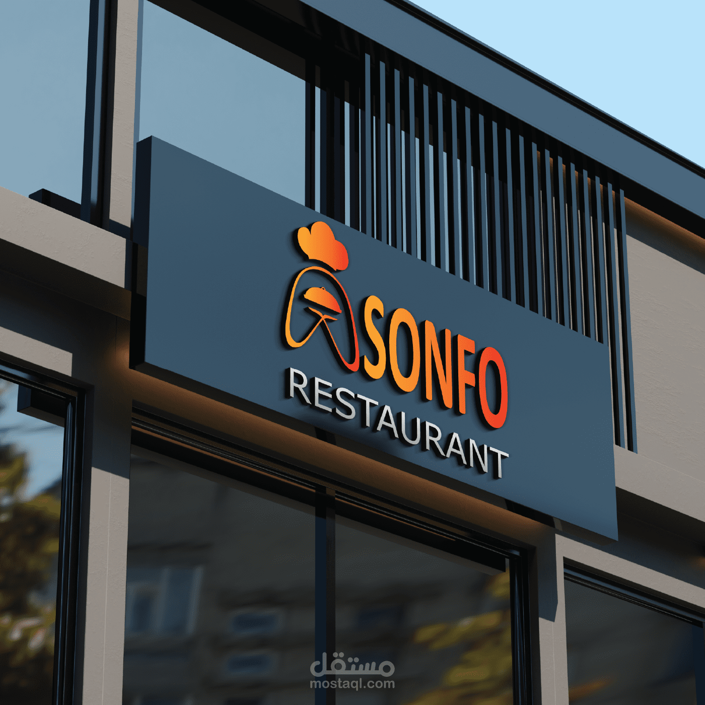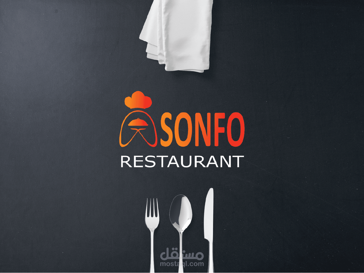 شعار مطعم, ASONFO RESTAURANT مطعم الراحة فكرة الشعار عبارة عن جعل حرف A عبارة عن يدين تقدمان الطبق بكل أناقة وإحترافية كما أن اليدين وقبعة الطبخ لدلالة على الرعاية و العناية بالطعام الذي يقدم.