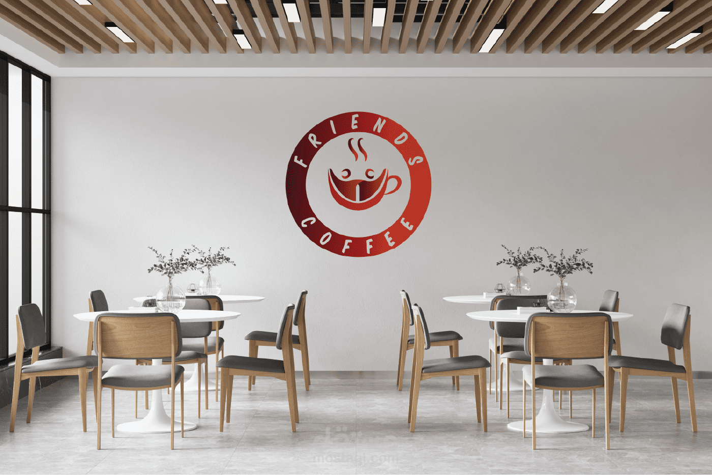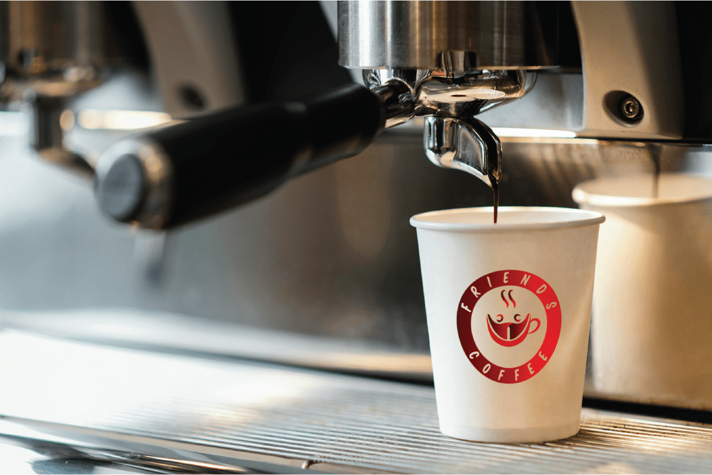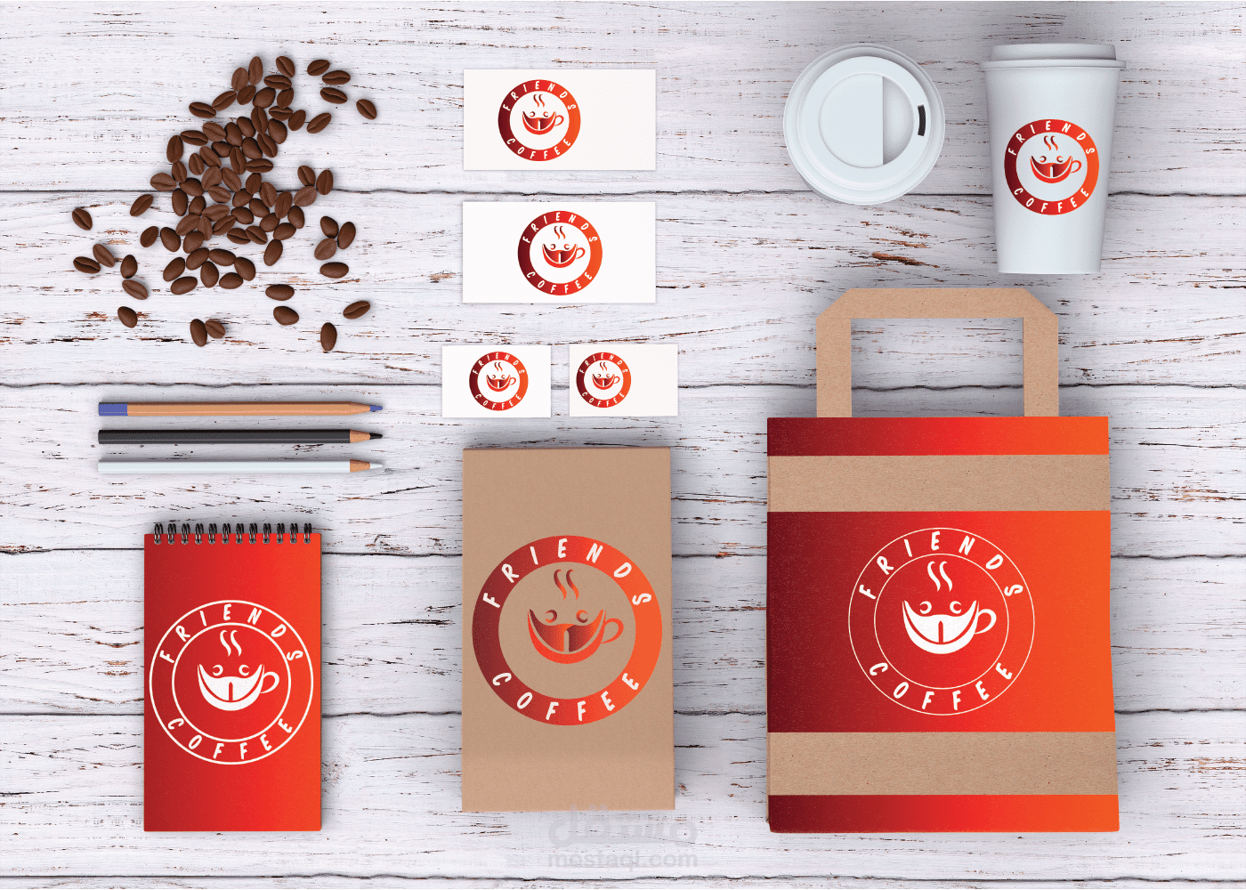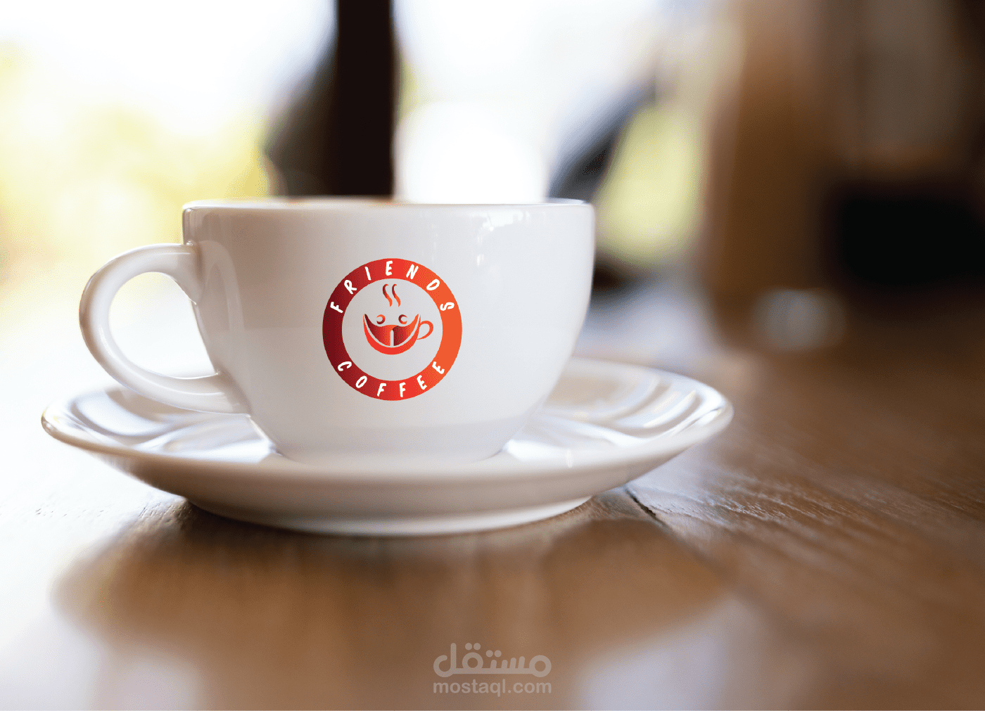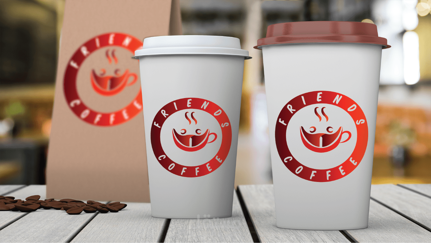 شعار مقهى FRIENDS COFFEE مقهى الأصدقاء, فكرة الشعار عبارة عن دمج كوب القهوة مع أصدقاء يحتفلون بشكل جذاب ومبدع وبسيط وجميل