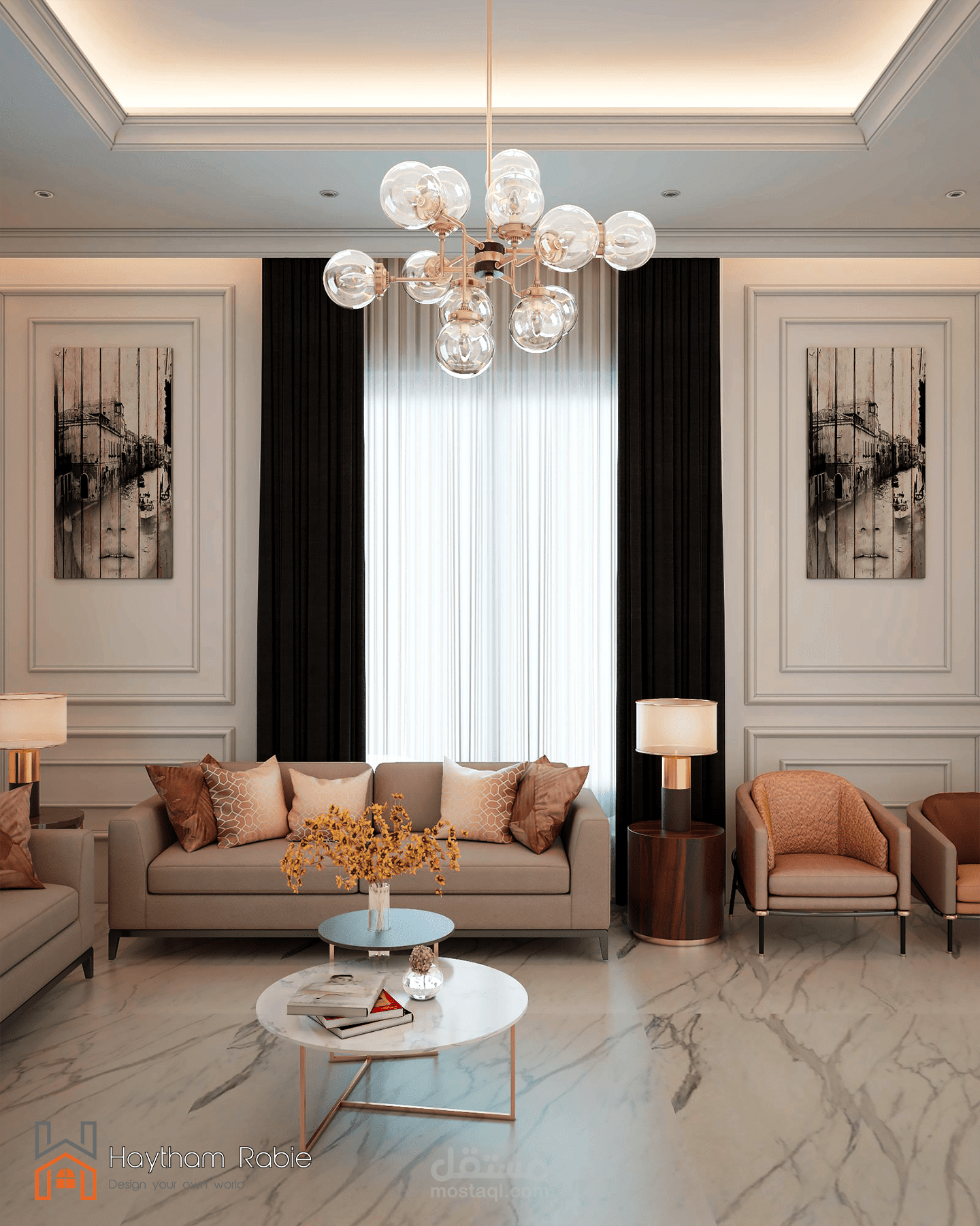 تصميم صالون بطراز نيوكلاسيك