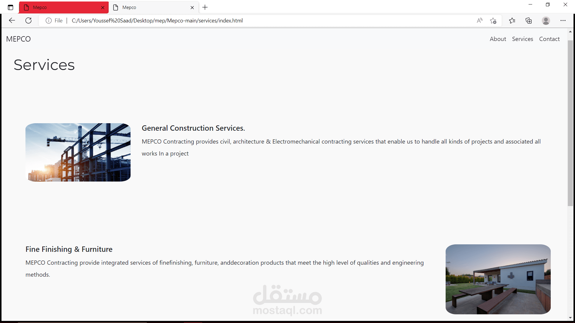 this web site for mepco construction company website using html css and javascript to create simple user interface