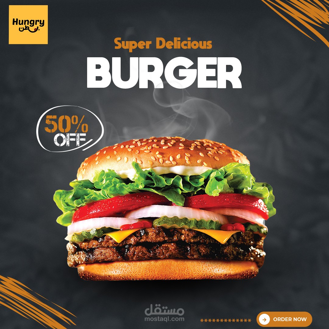 تم تصميم الاعلان لصالح مطعم هنجري بطن وذلك باستخدام برنامج الفوتوشوب.