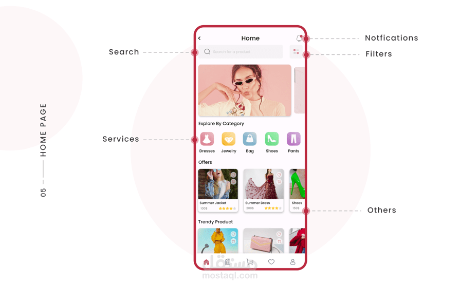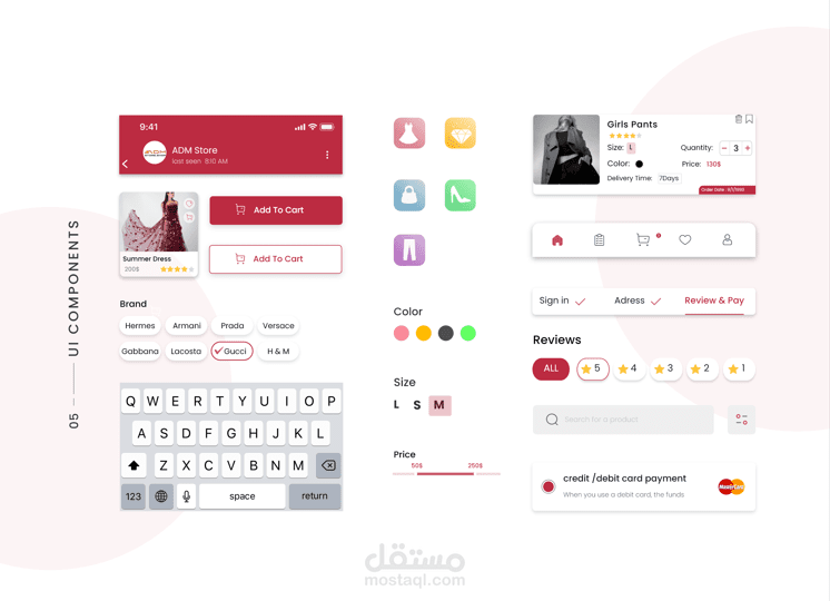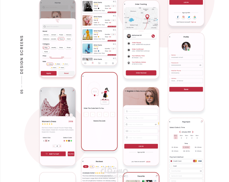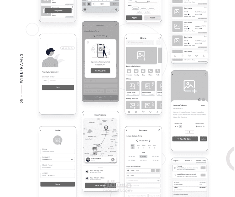دراسة لتصميم تطبيق الكتروني متخصص في بيع الملابس وجميع احتياجات من مختلف الأنواع الاكسسورات والشنط والاحذية ...الخ حيث تظهر الدراسة الخطوات المتبعة لتصميم هذا التطبيق