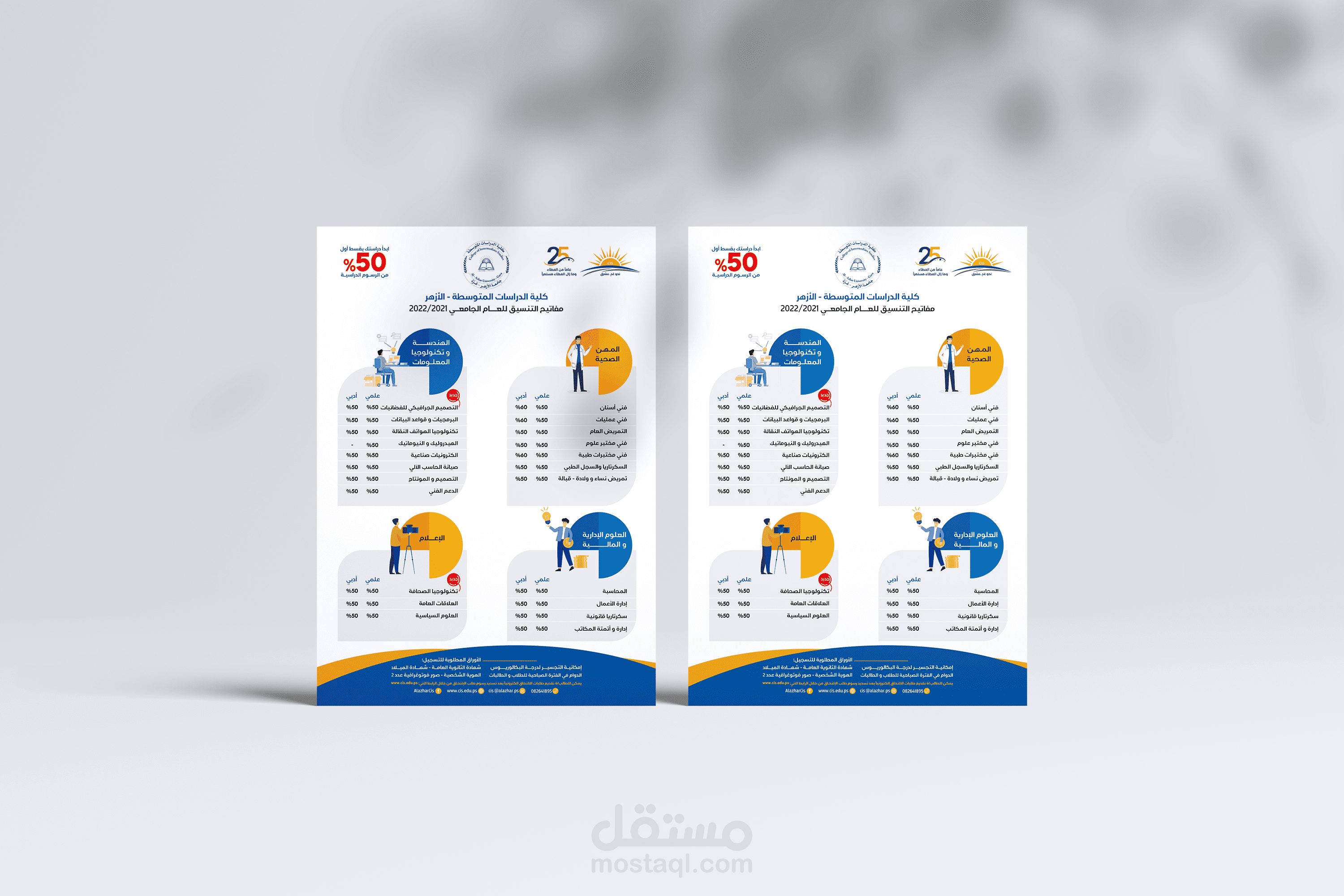 تم إنجاز العمل ل صالح كلية الدراسات المتوسطة الأزهر - غزة ، تصاميم بروشور مفاتيح التنسيق لتخصصات .
