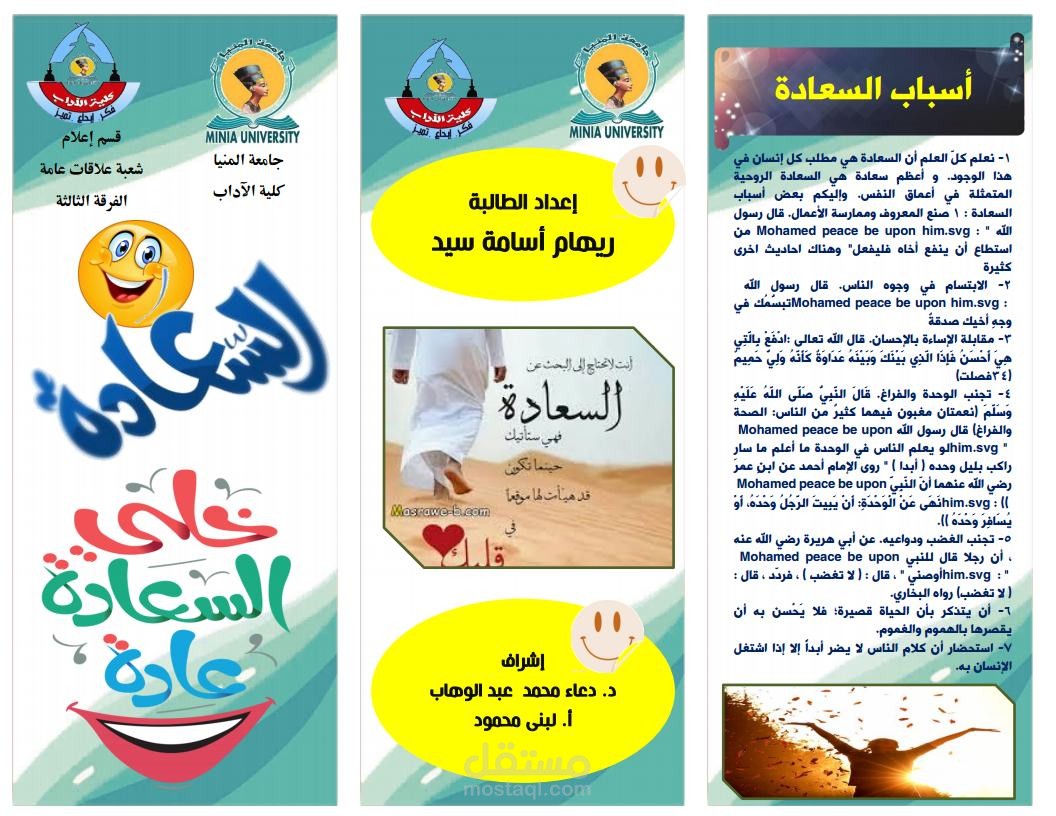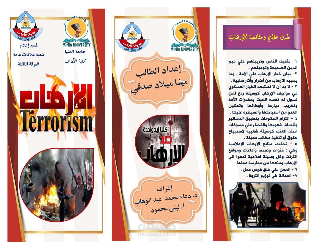 تصميم المطويات بشكل جذاب وانسيابي .. حيث كان المطلوب مني عمل بعض المطويات عن موضوعات مختلفة لبعض الطلبة ضمن مشروع تطبيق عملي لديهم في بعض المواد المتعلقة بالاعلان و طرق تقديم المعلومات المتعلقة بالندوات او الموضوعات المختلفة