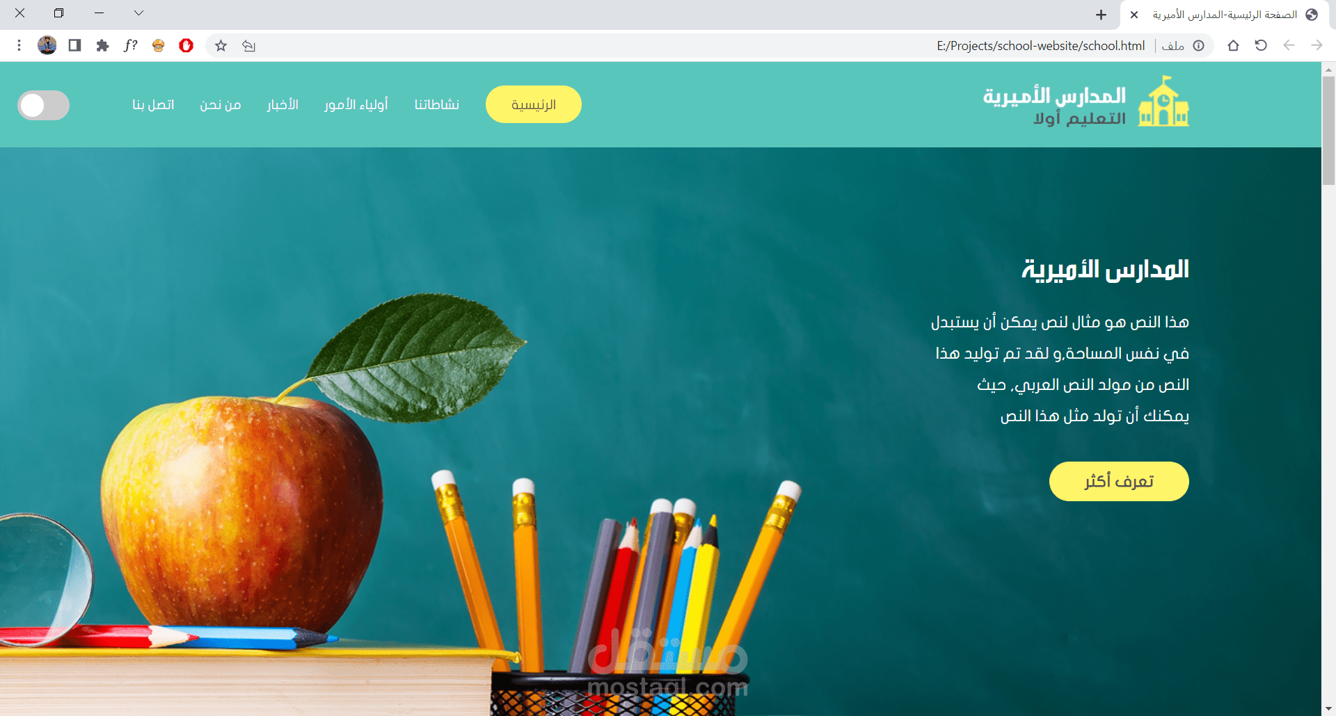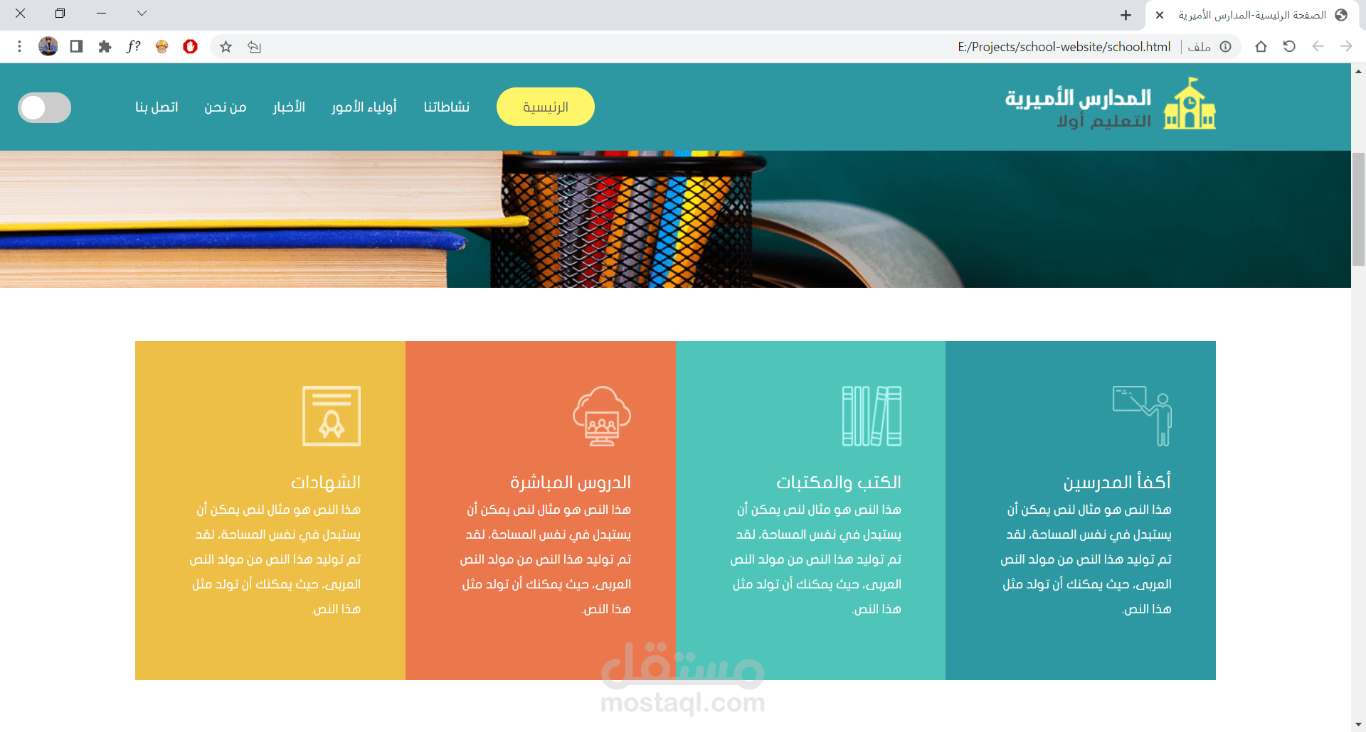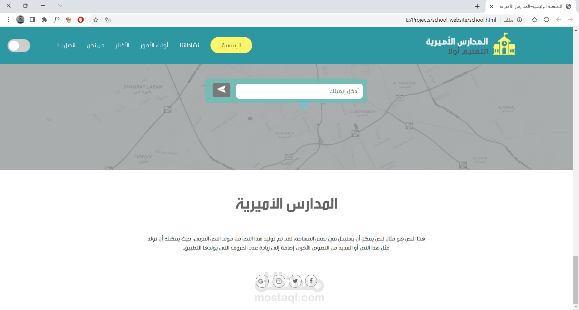 landing page بسيط يحتوي على تفاصيل عن المدارس الأميرية و ما تقدمه المدرسة من خدمات