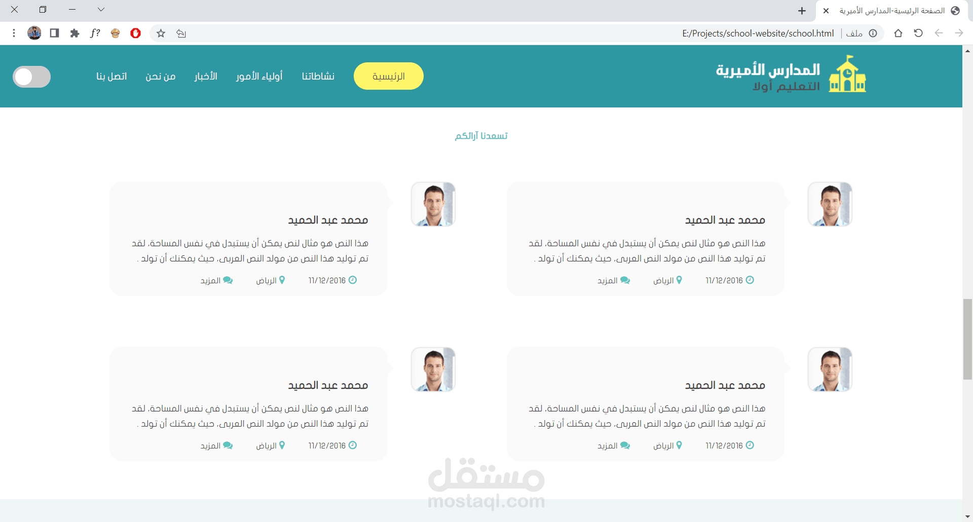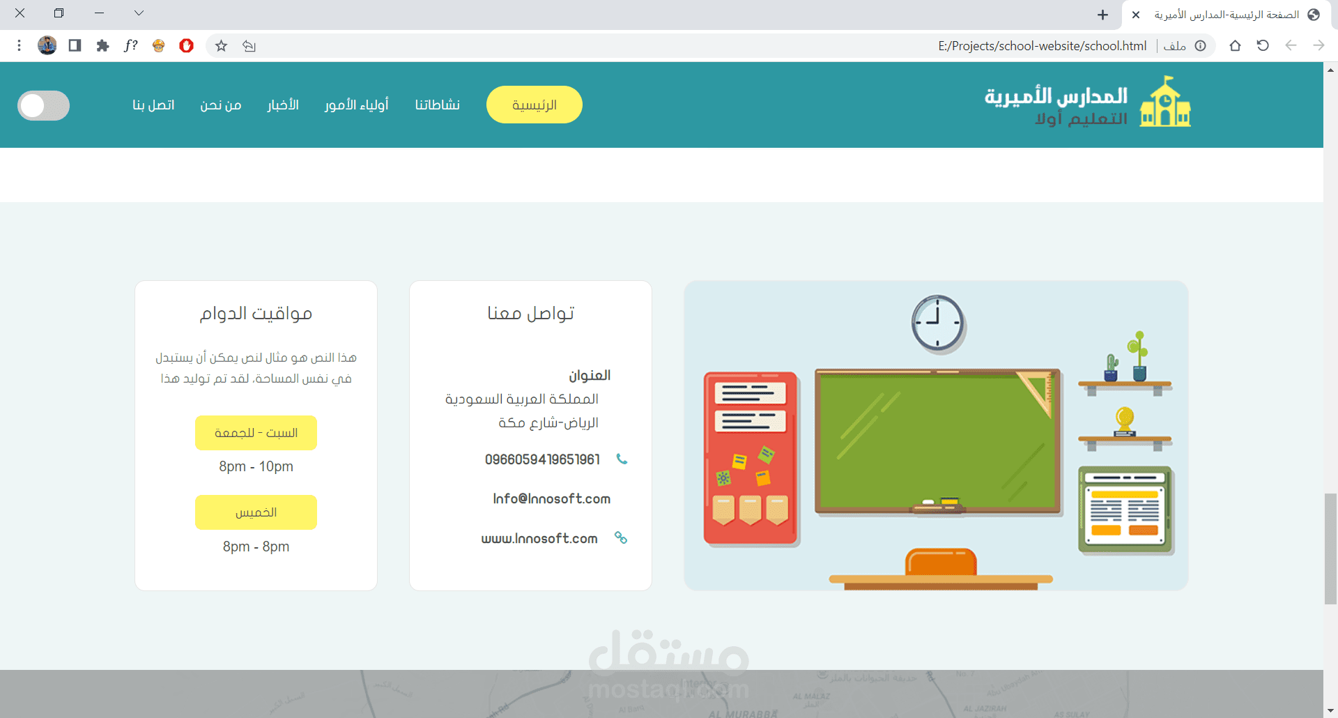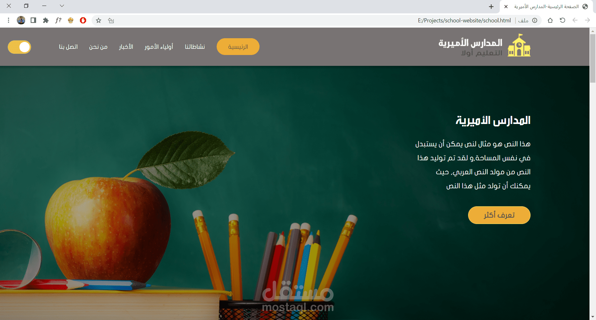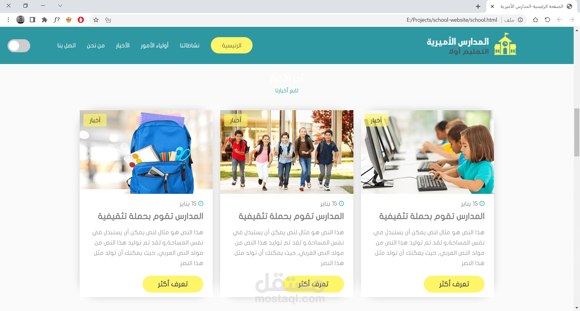landing page بسيط يحتوي على تفاصيل عن المدارس الأميرية و ما تقدمه المدرسة من خدمات