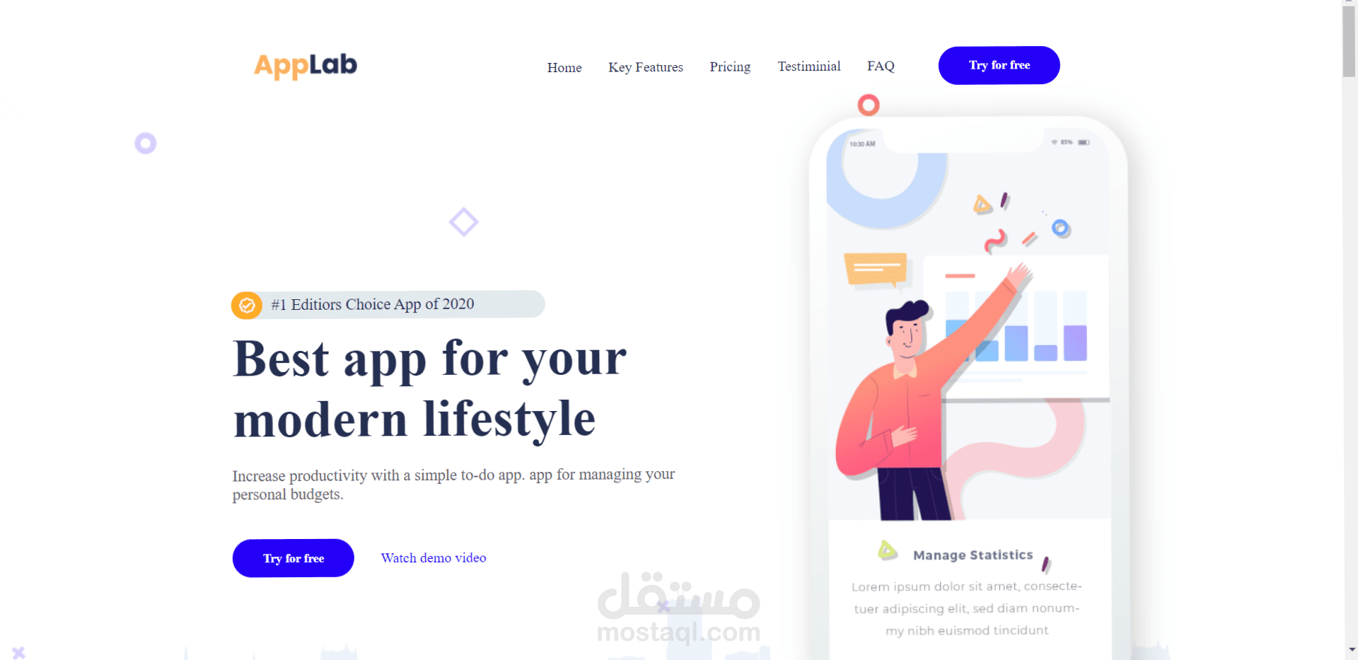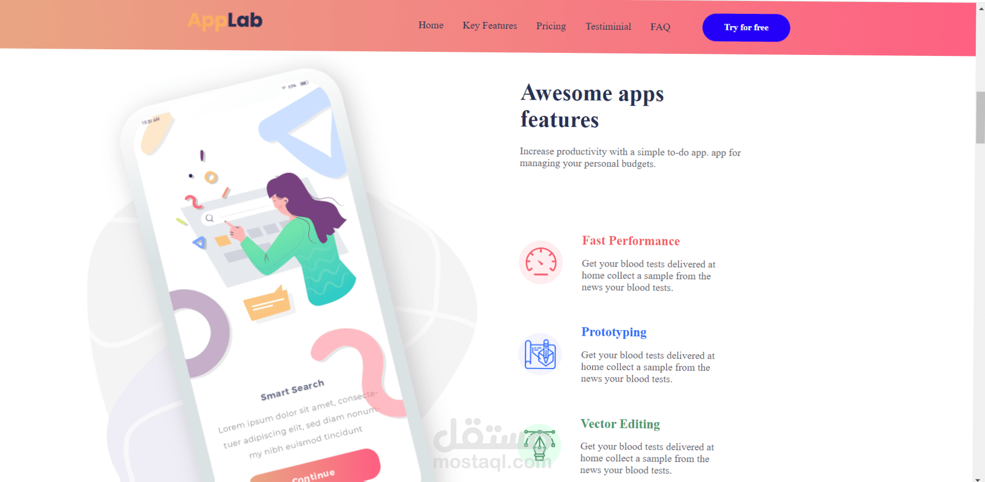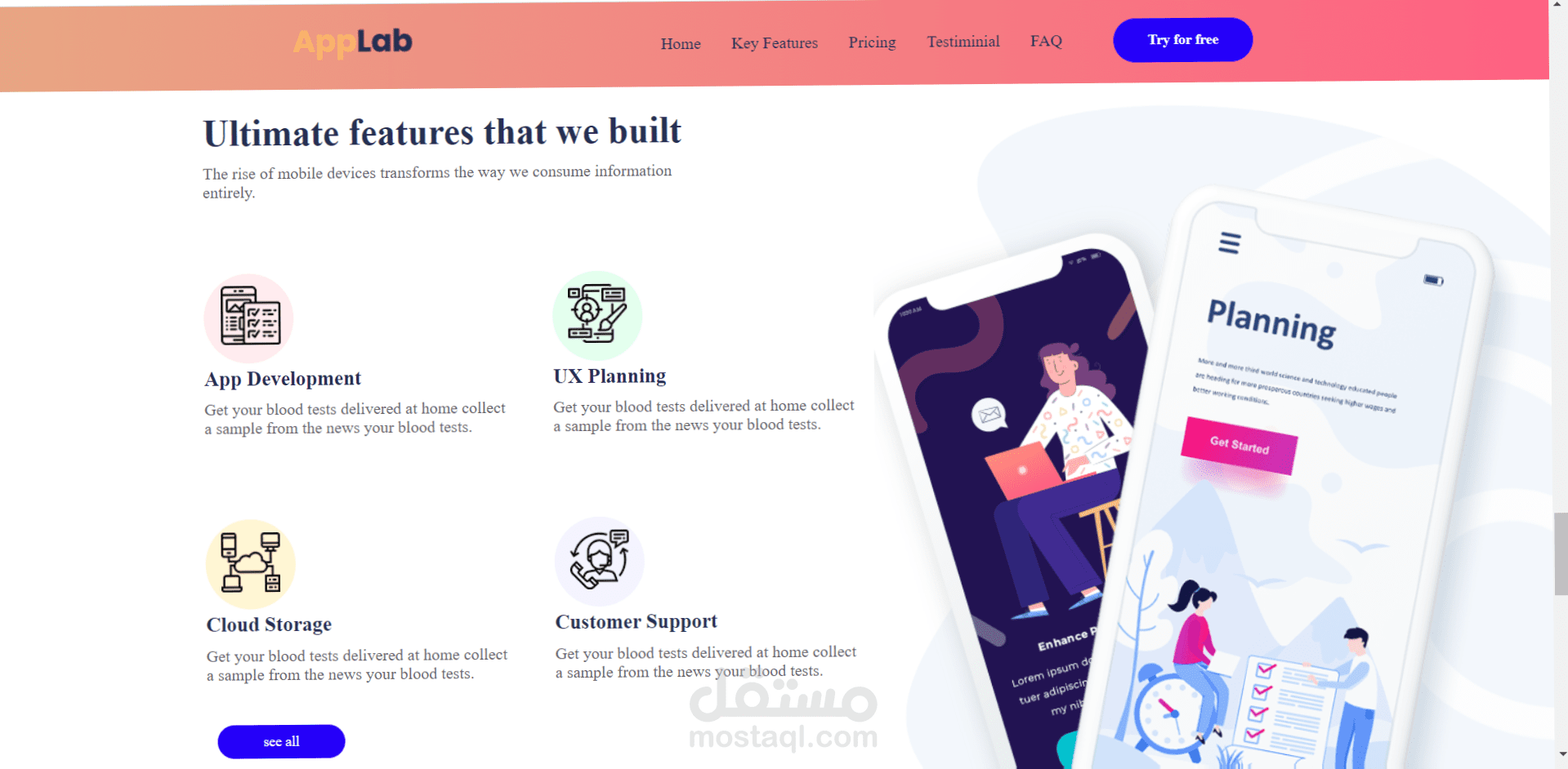 موقع Landing Page يتمحور حول تفاصيل تطبيق AppLap و ما هي الخصائص لهذا التطبيق و الخدمات والتسهيلات التي يقدمها