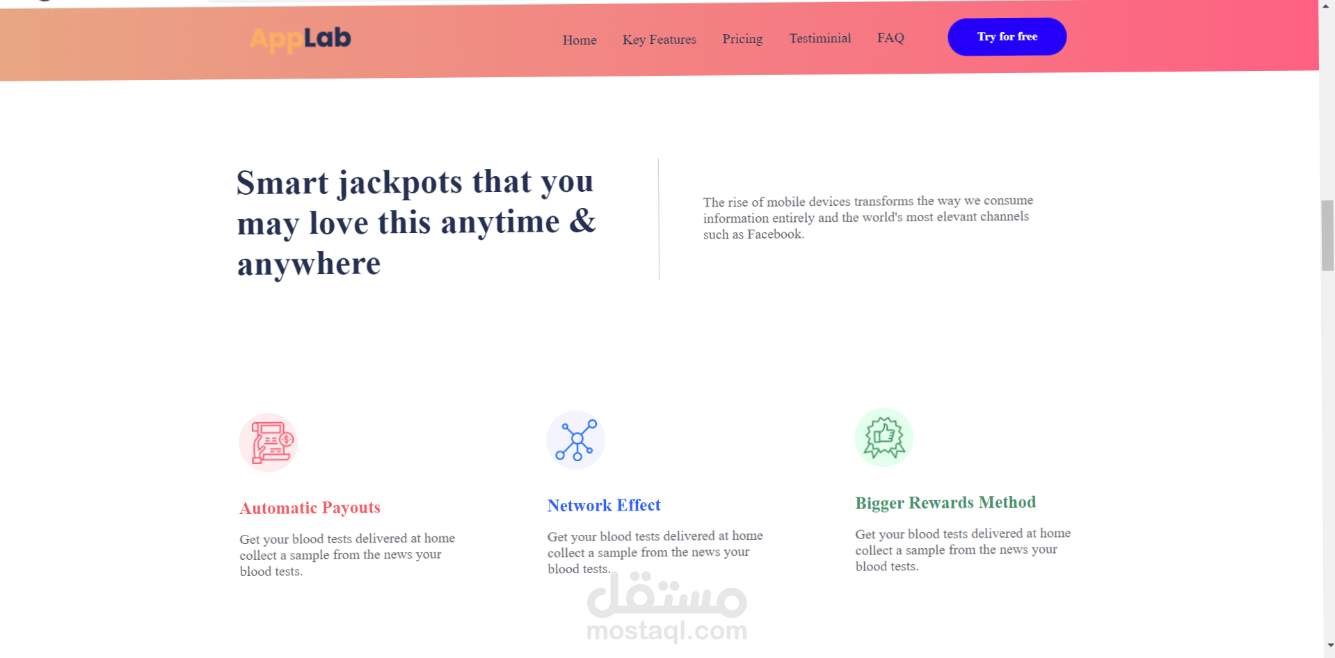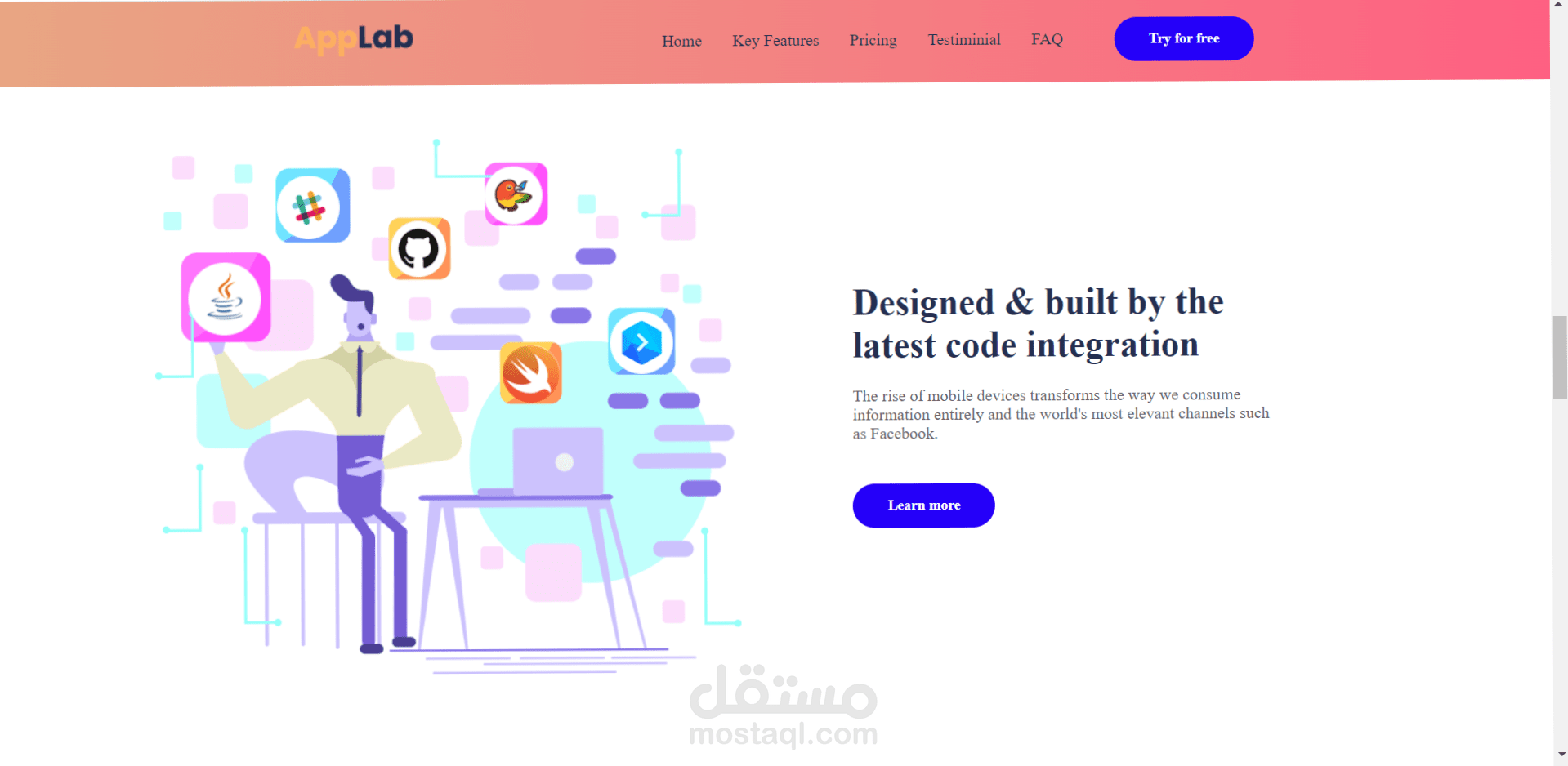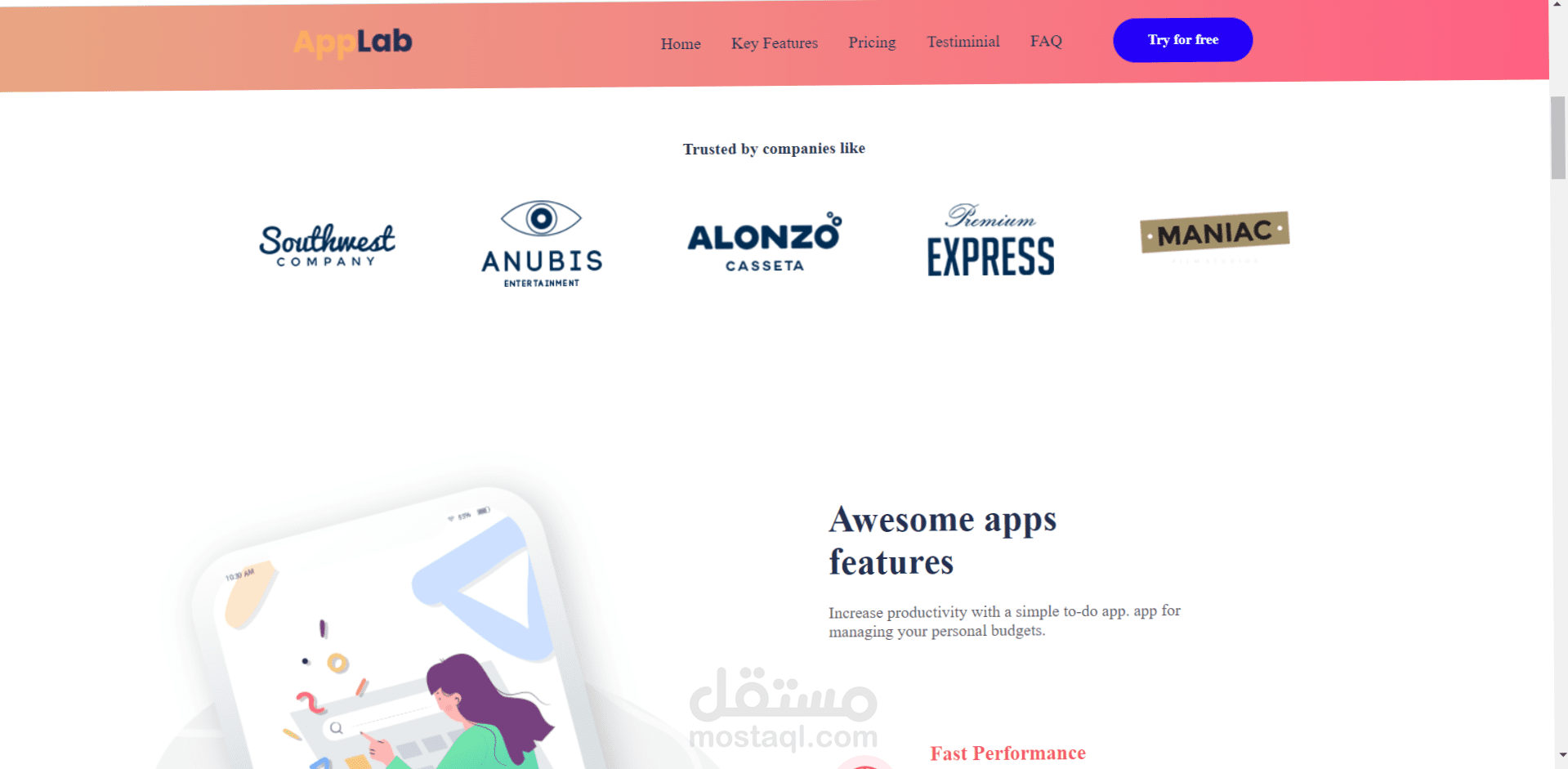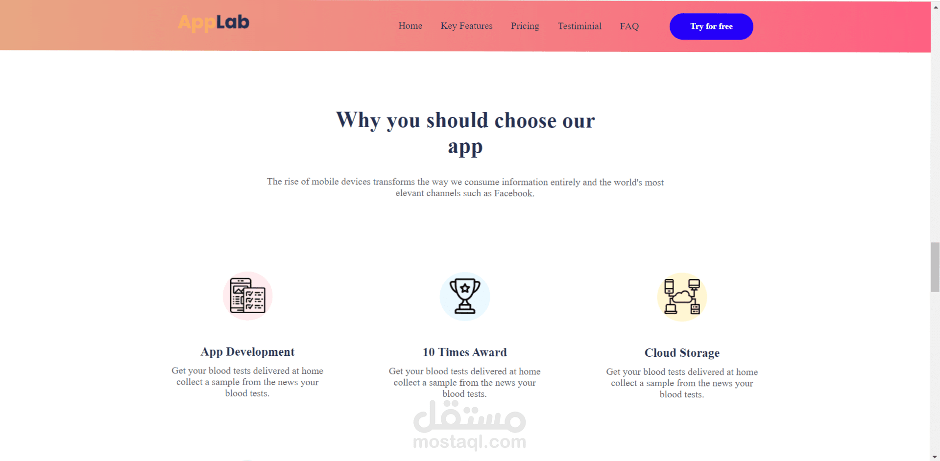 موقع Landing Page يتمحور حول تفاصيل تطبيق AppLap و ما هي الخصائص لهذا التطبيق و الخدمات والتسهيلات التي يقدمها