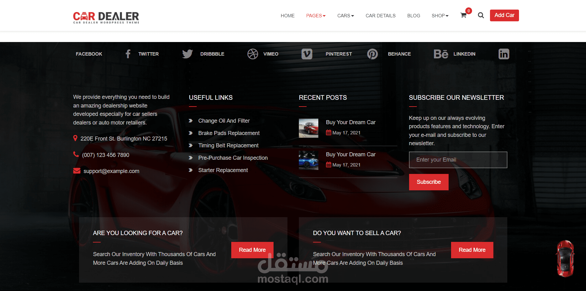 Car Dealer Website عبارة عن موقع متعدد الصفحات يحوي على العديد من التفاصيل حول انواع السيارات المتوفرة , و تفاصيل عن السيارات نفسها و أسعارها و حالتها و توفرها من عدمه