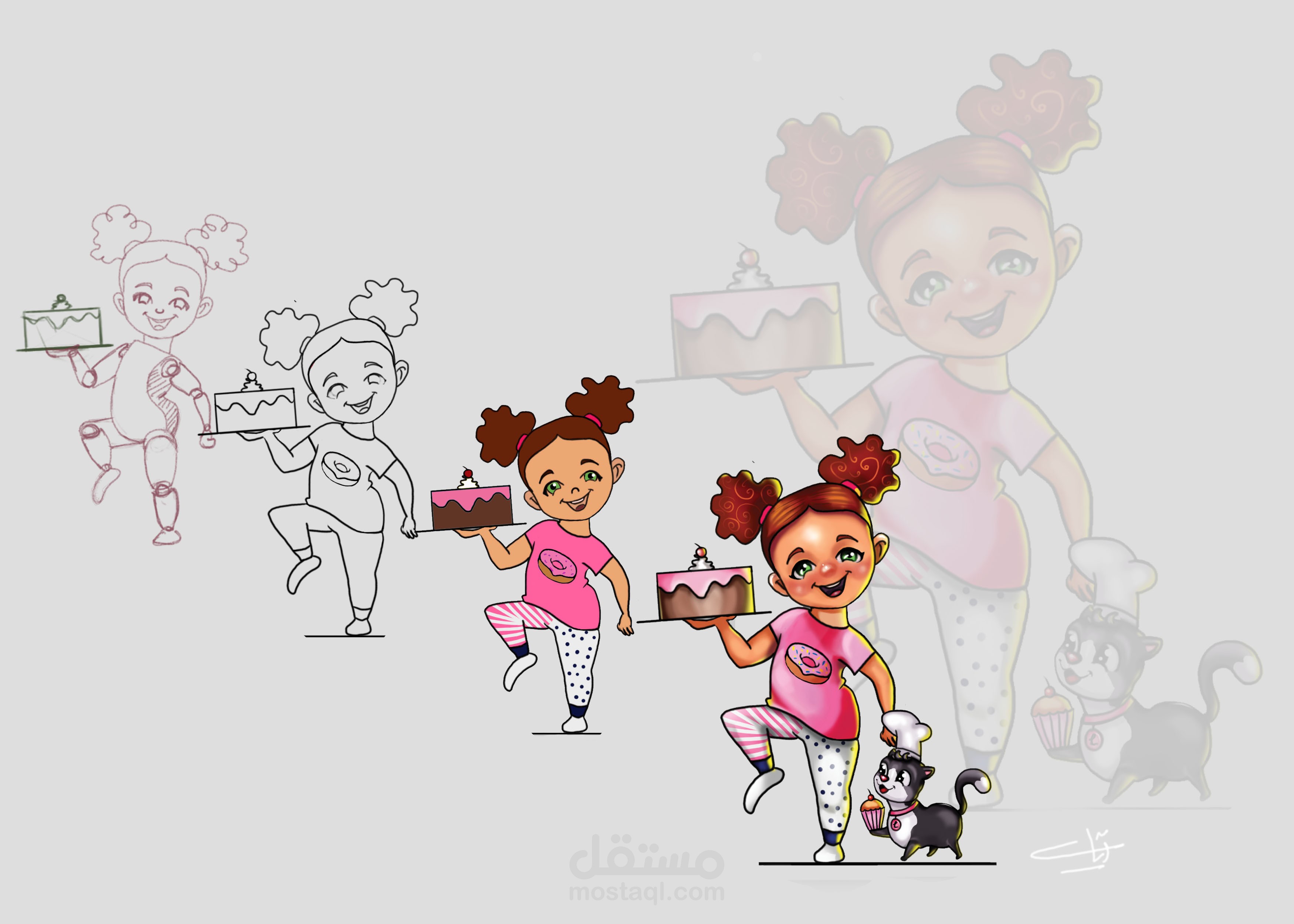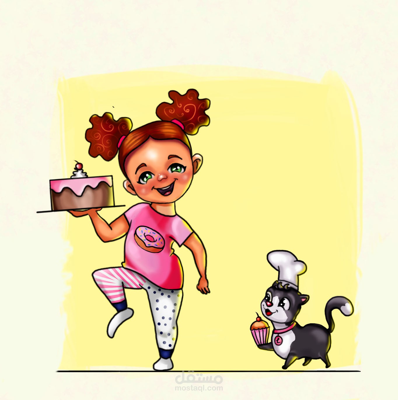 قمت بتصميم ورسم هذة الشخصية وهي بنت صغيرة تحب تجارب الطبخ ولديها قطة تحبها وتهتم بها