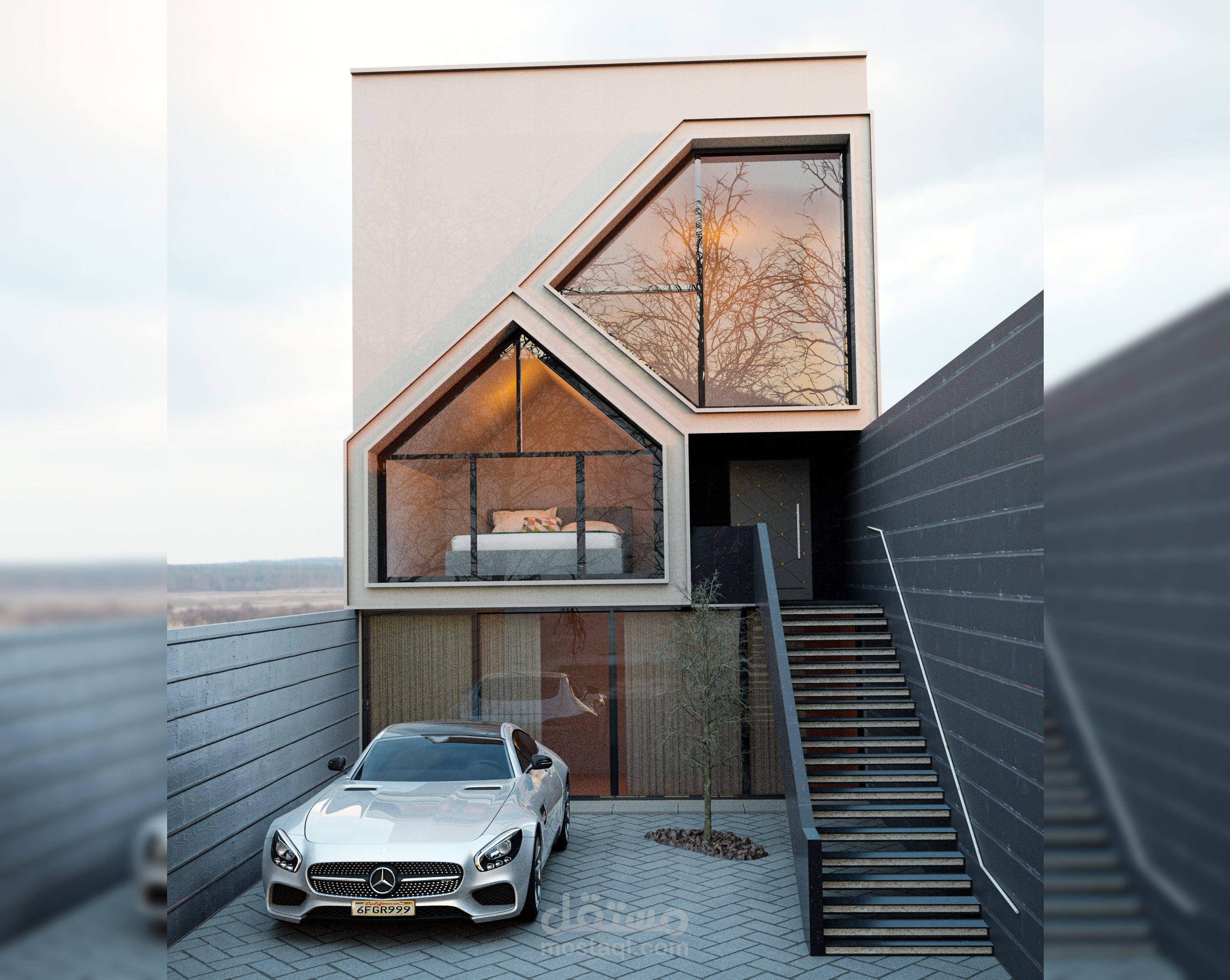تصميم 3d جذاب لمنزل قمت بتصميمه على sketchup , حيث اننى ركزت بشكل كبير على الابداع والواقعية فى هذا التصميم من حيث الشكل.
