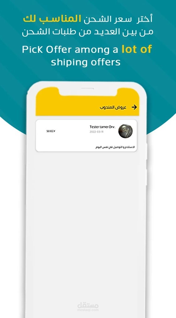 باستخدام التطبيق علي هاتفك المحمول يمكنك الاتصل بأكثر من مندوب محترف . مع امكانيه التفاوض وذلك بنقرة واحدة فقط ، اختر أفضل عرض أسعار يناسب شحنتك.