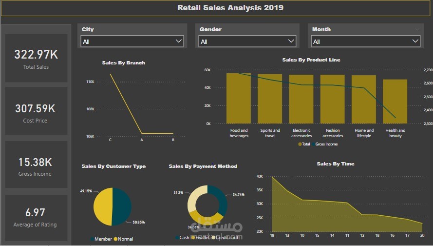 Analysis sales dataset for a supermarket which has 3 branches to find out which of these branches is the best revenue& if there is any problem how we could set a solution through our analysis. I analyzed this dataset using Python& created interactive dashboard using Power BI