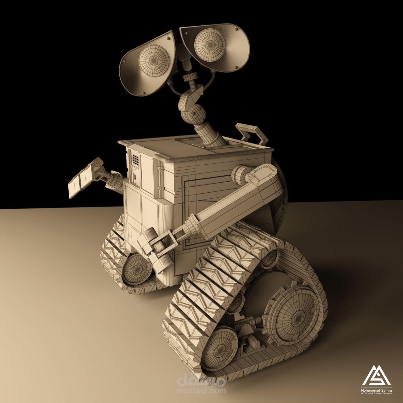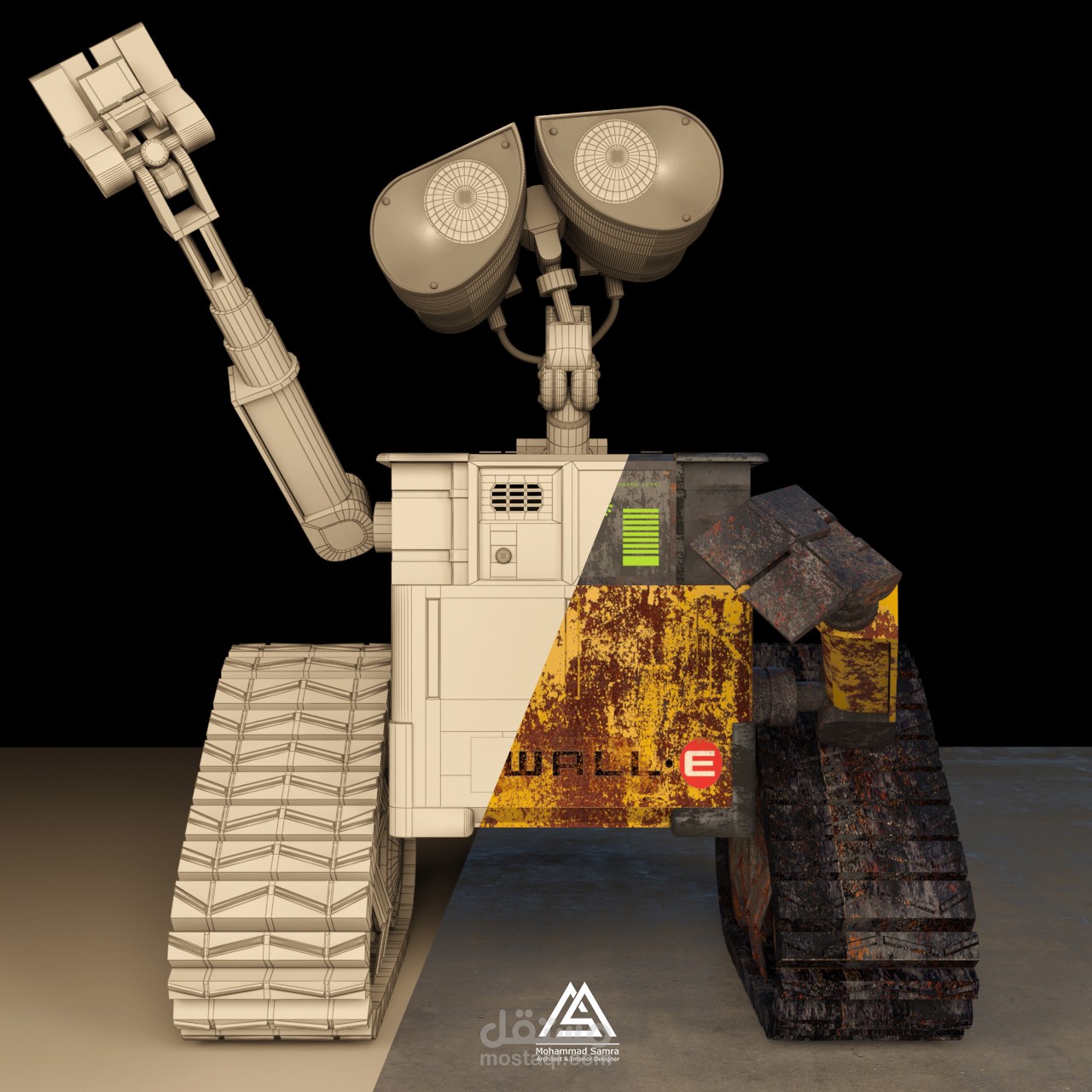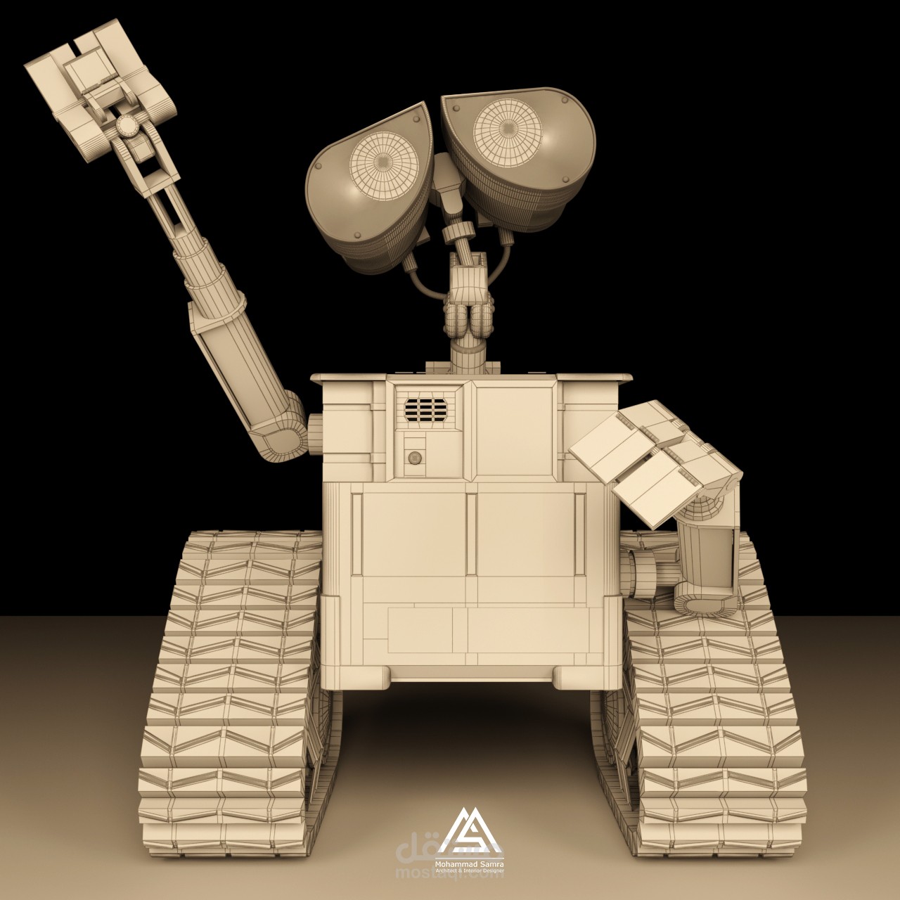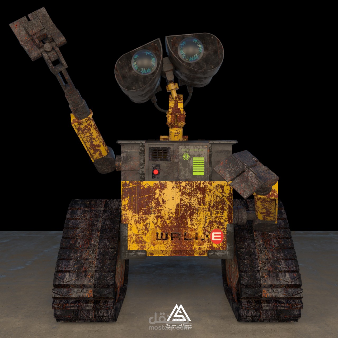 نمذجة لشخصية الروبوت wall-e من فيلم الأنيميشن الشهير بالإضافة للريندر وبناء الخامات من الصفر باستخدام برامج 3dmax & vray
