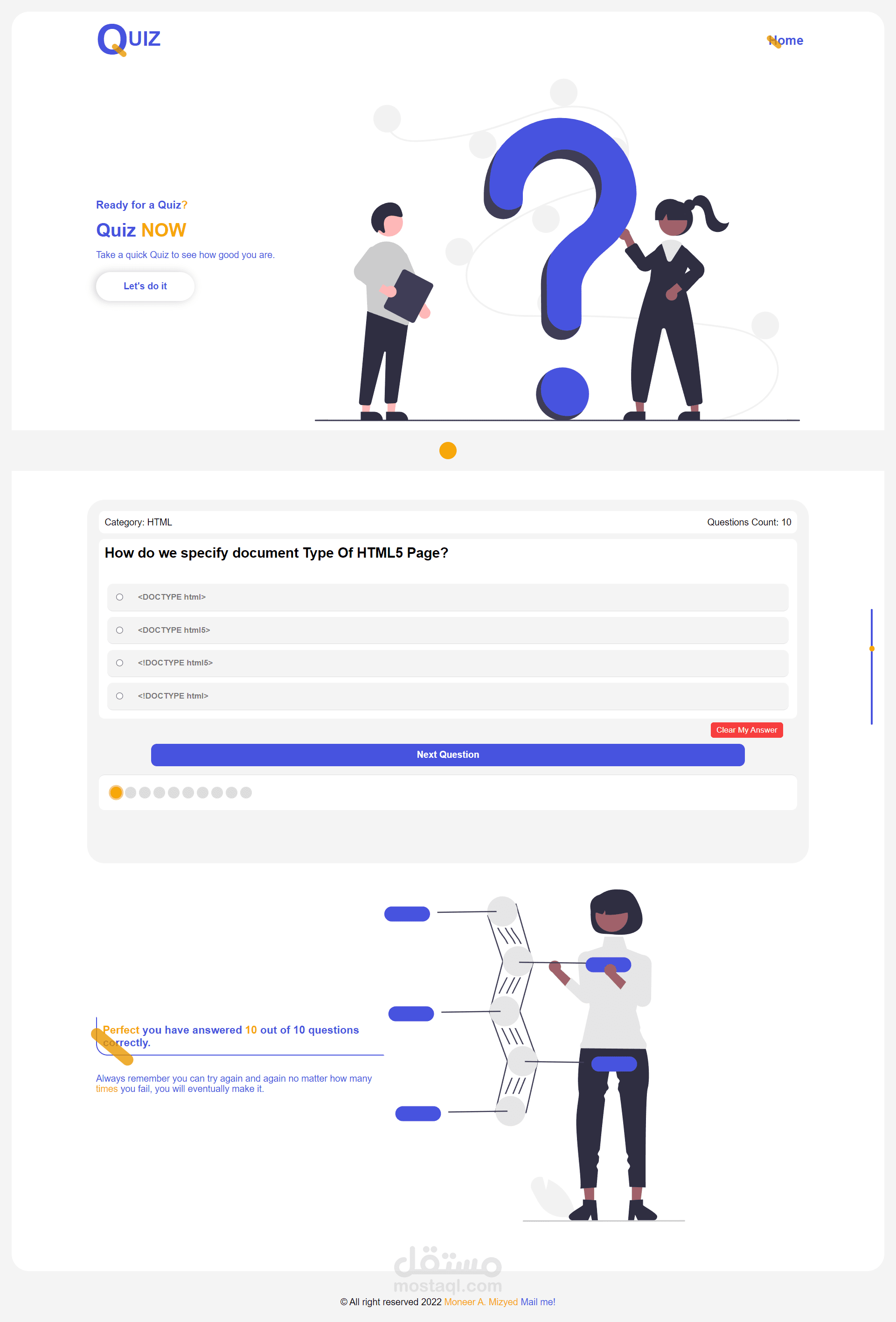 موقع بسيط يقوم باستقبال اسئلة اختر من متعدد من قاعدة بيانات او API ويقوم بعرضها بشكل عشوائي.(تختلف في الترتيب في كل محاولة)